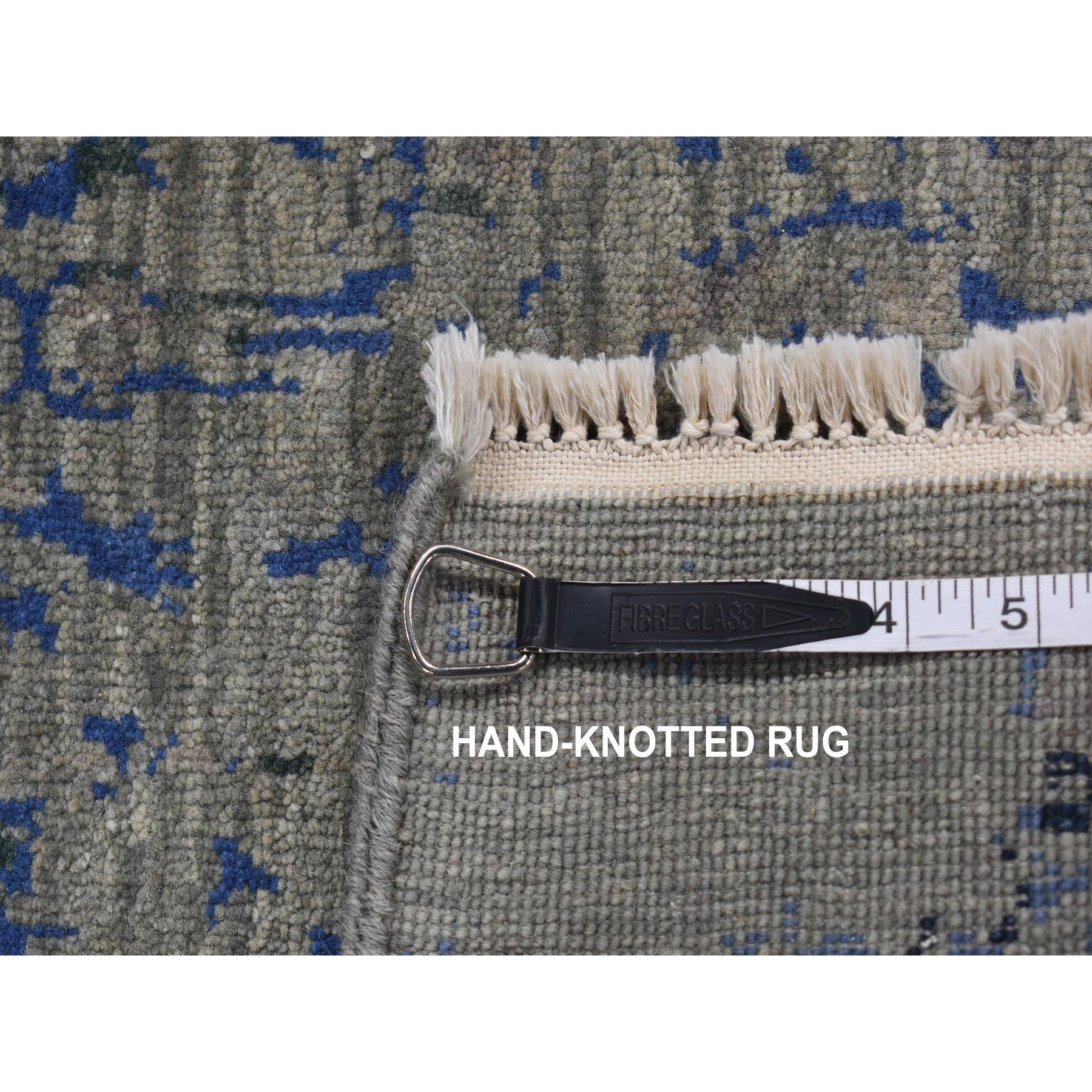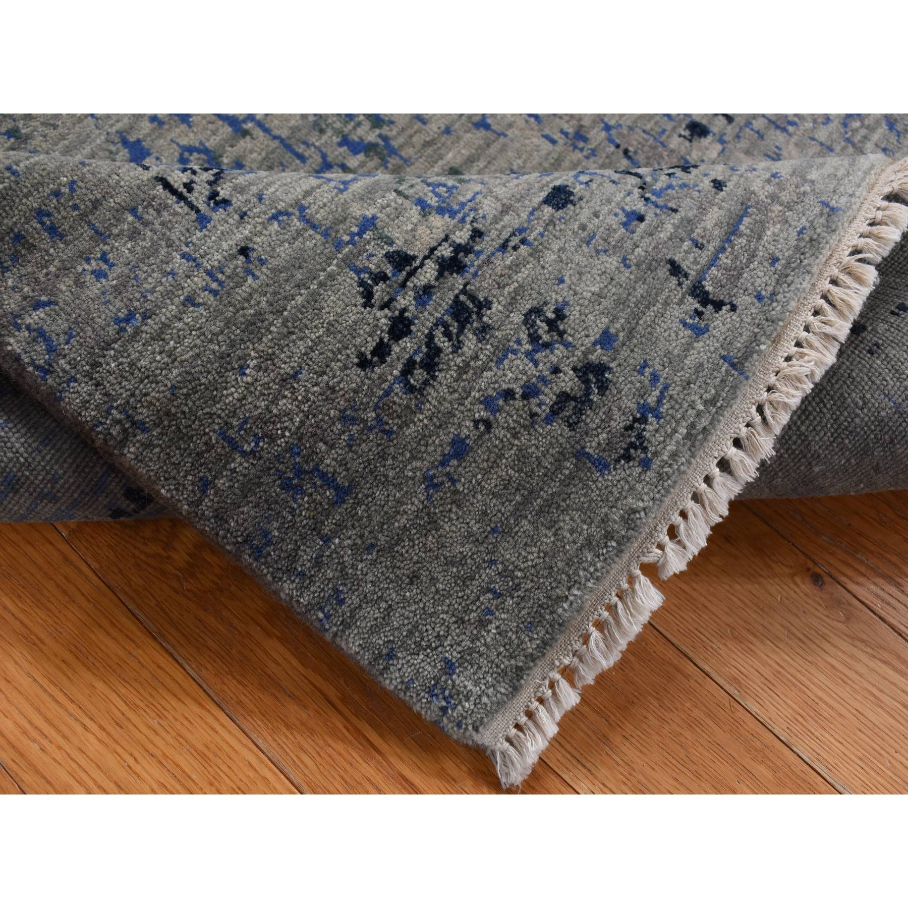 3'1"x5' Fossil Gray, Wool And Silk, Broken Design, Tone On Tone, Hand Knotted, Oriental Rug FWR526092