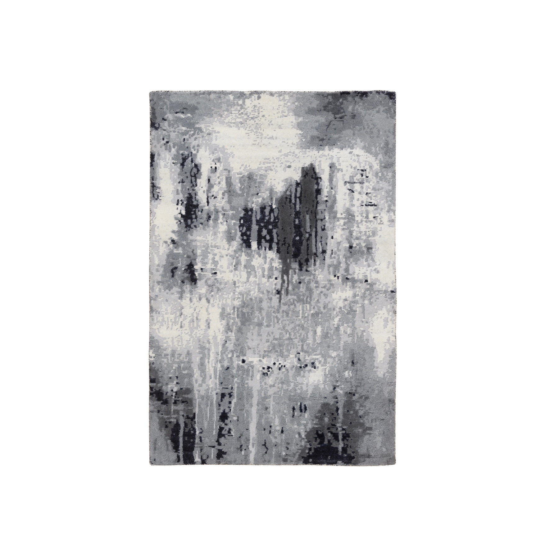 3'1"x5' Ivory Abstract Design Wool And Silk Hand Knotted Oriental Rug FWR379134