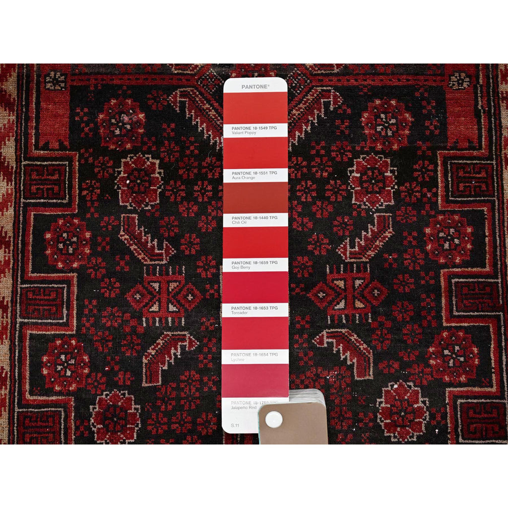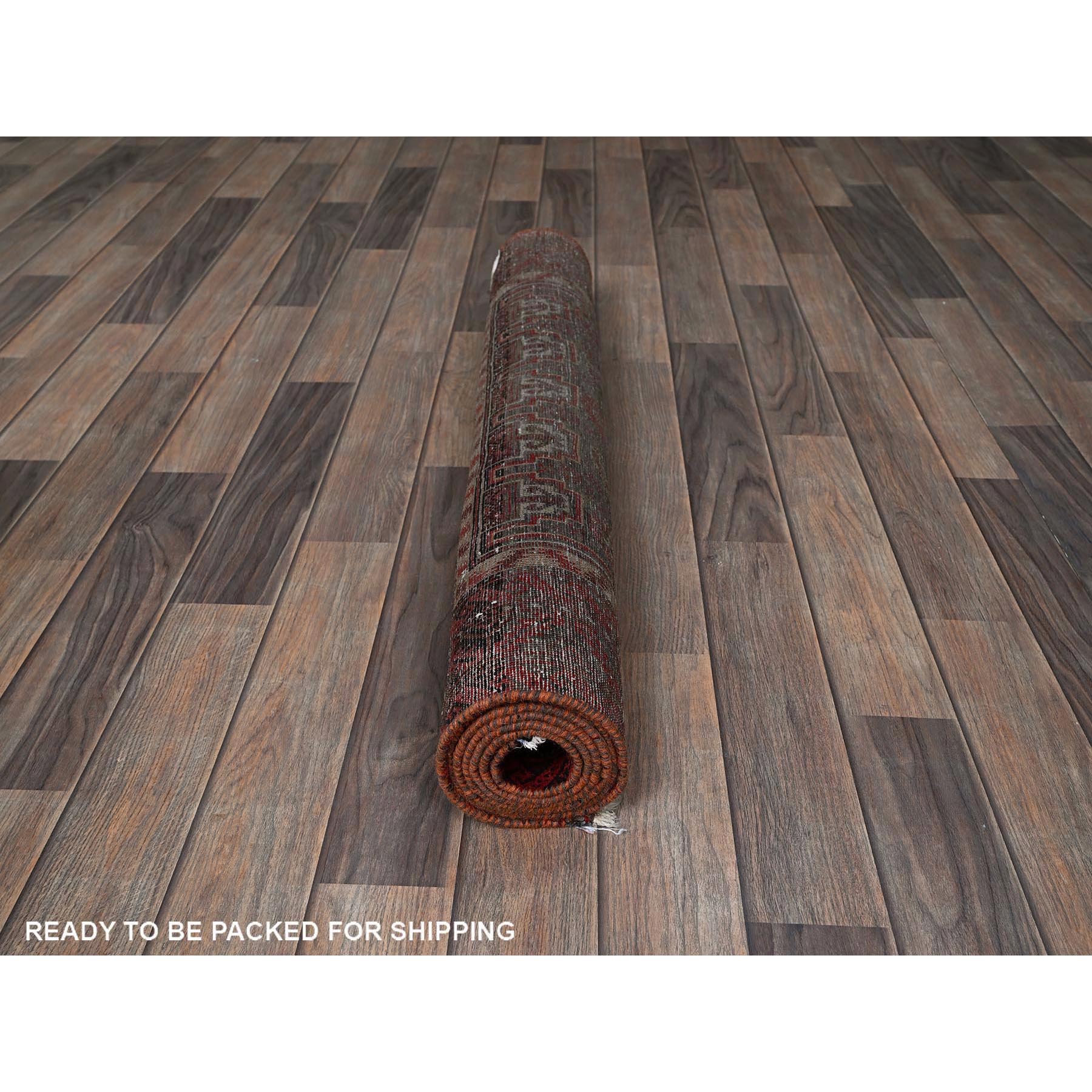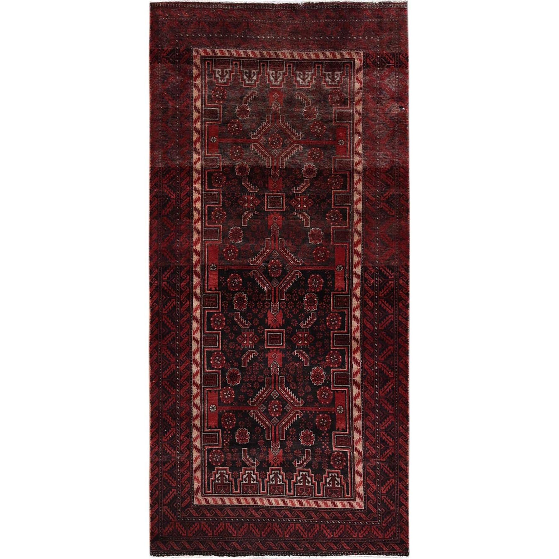 3'1"x6'5" Vermilion Red, Vintage Persian Baluch With Geometric Pattern, Sheared Low, Zero Pile, Evenly Worn, Sides And Ends Professionally Secured, Clean, Hand Knotted, 100% Wool, Wide Runner, Oriental Rug FWR5178