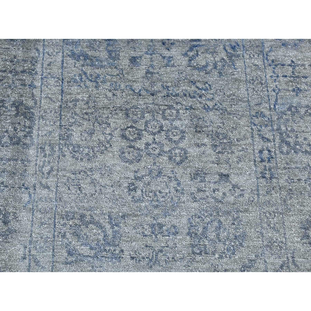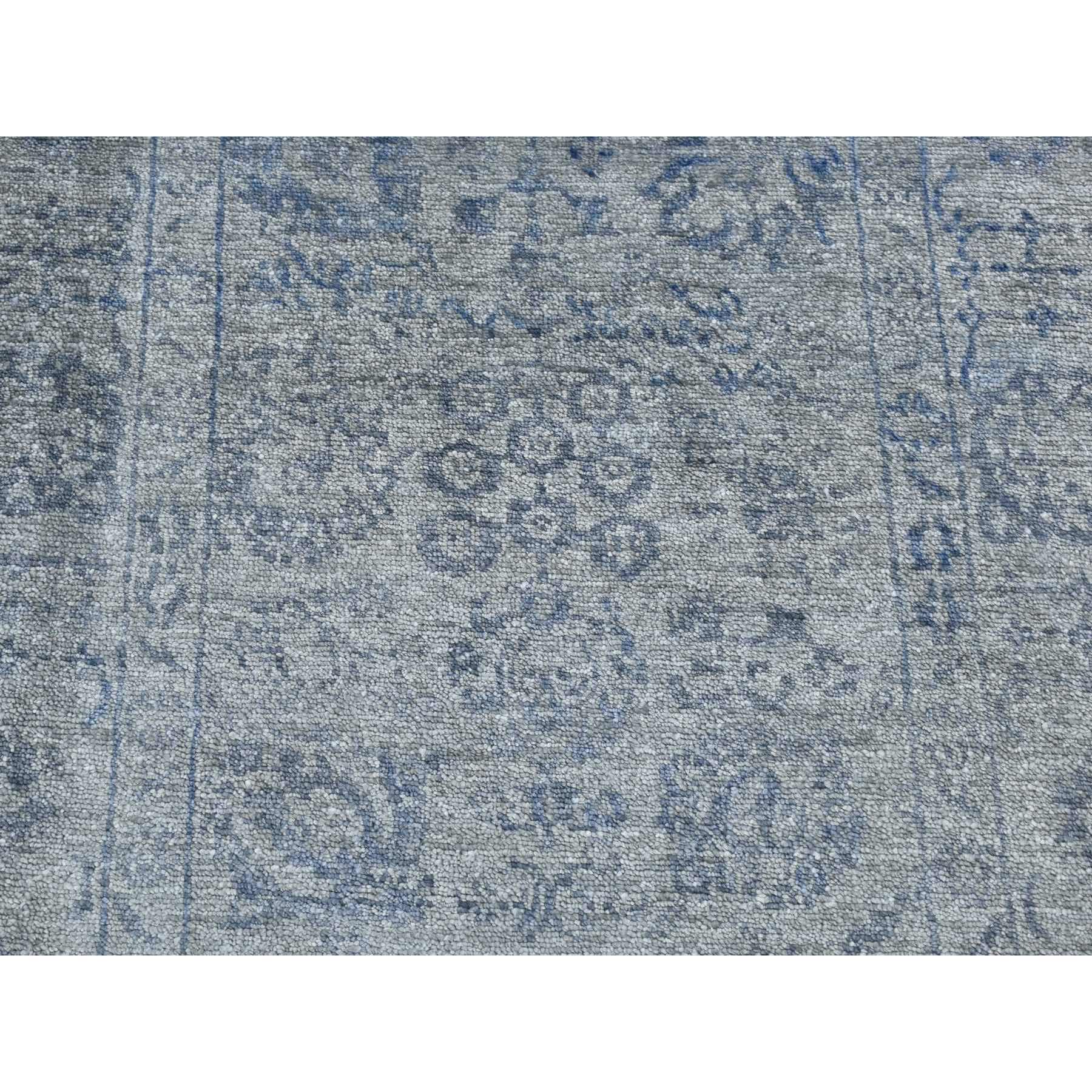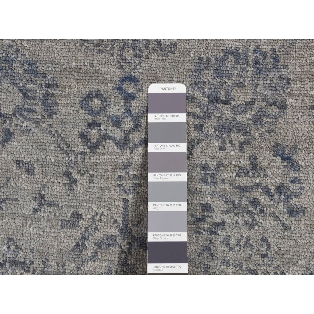 3'1"x8'3" Carbon Gray, Tone On Tone, Modern Tabriz Design, Wool And Silk, Hand Knotted, Runner Oriental Rug FWR523206