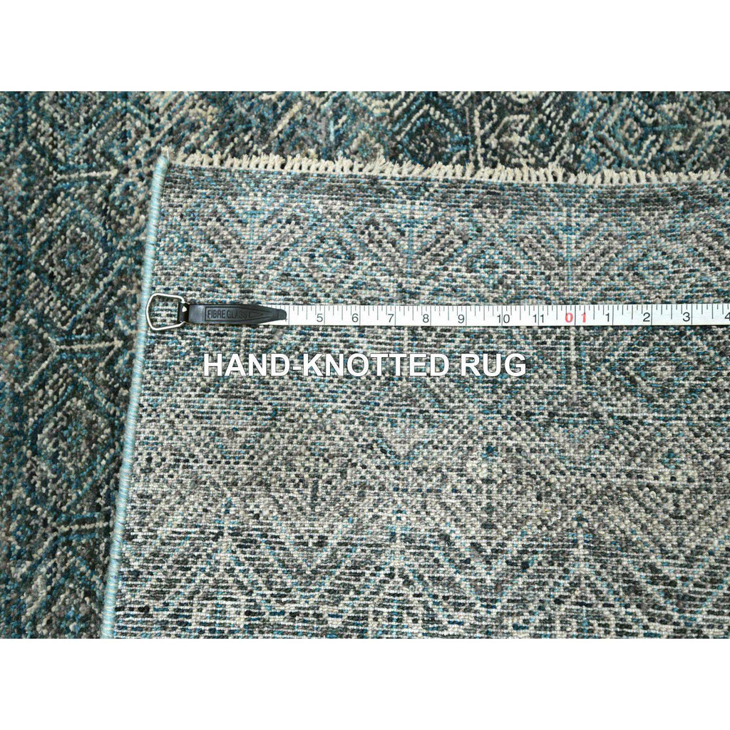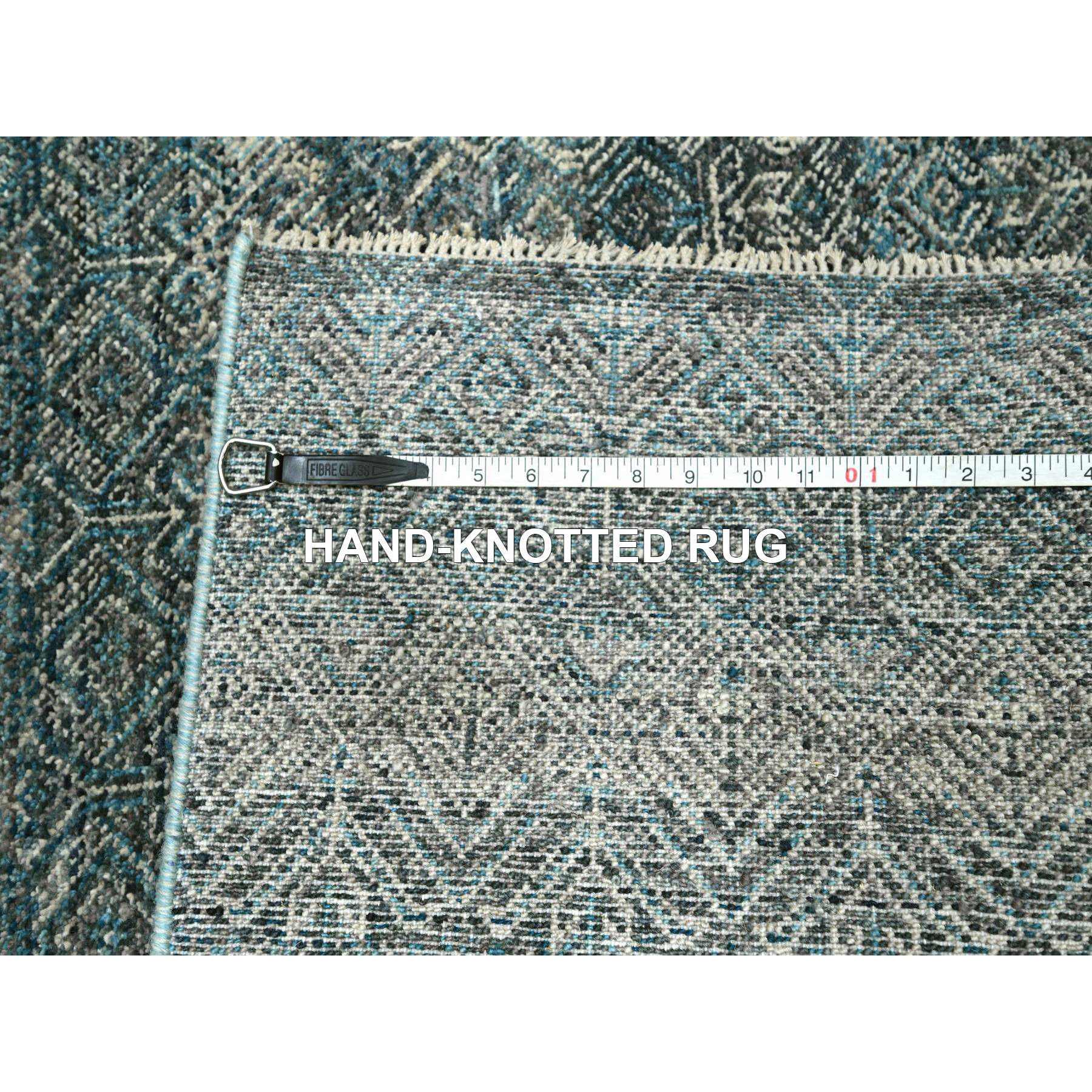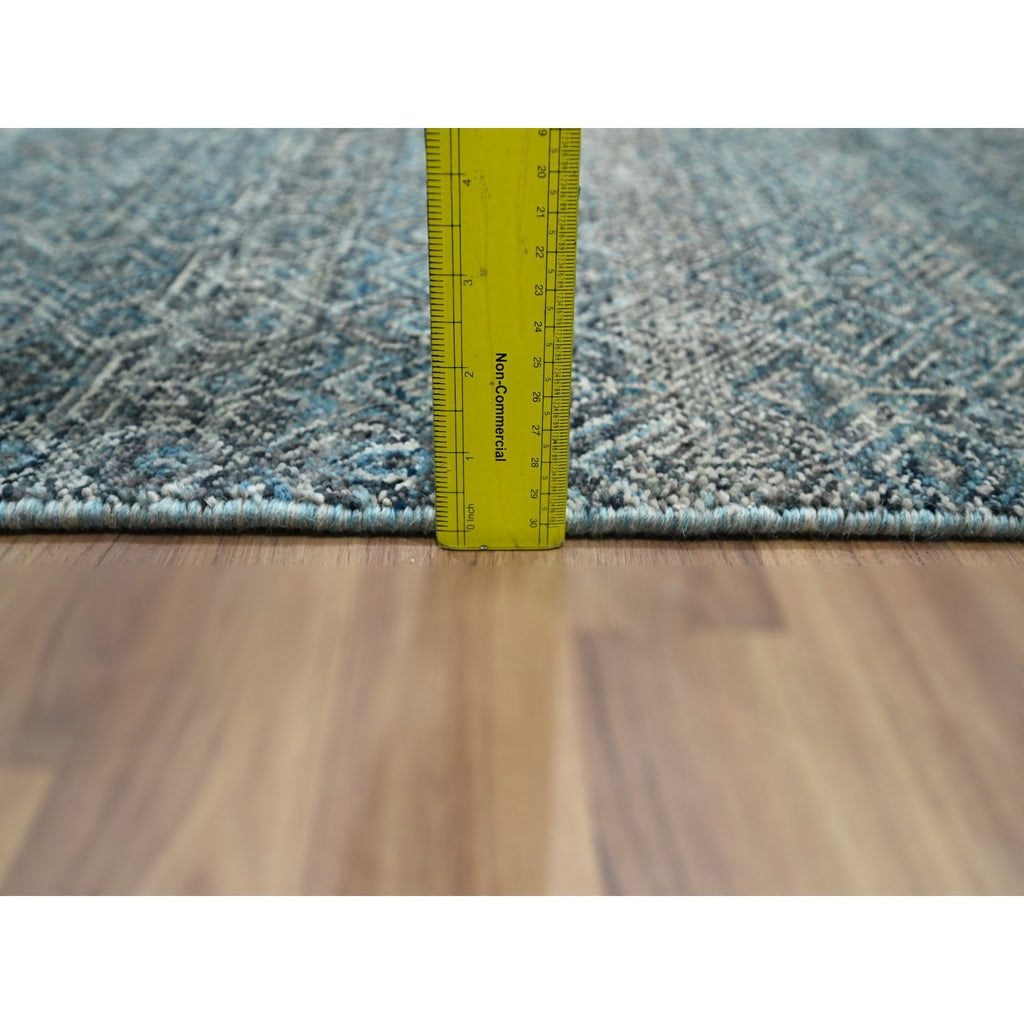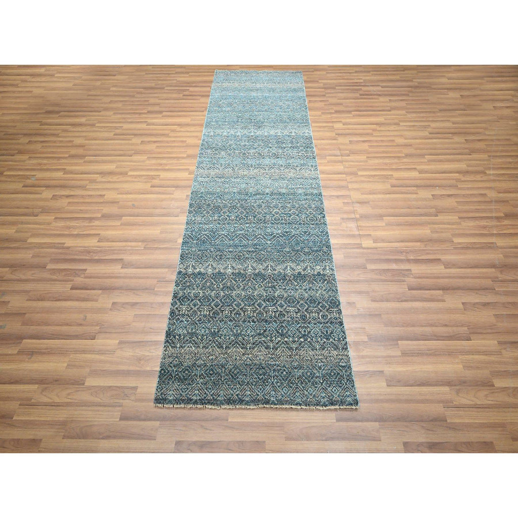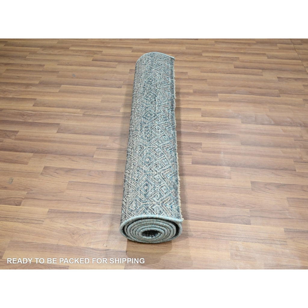 3'1"x9'9" Storm Blue, Kohinoor Herat Pattern, Small Geometric Repetitive Diamond Design, Soft Wool, Tone On Tone, Hand Knotted, Runner, Oriental Rug FWR458508