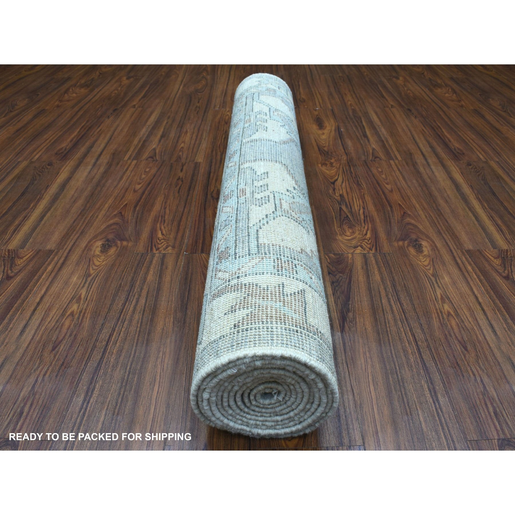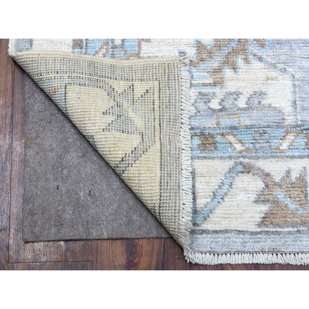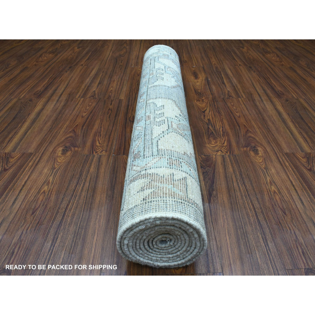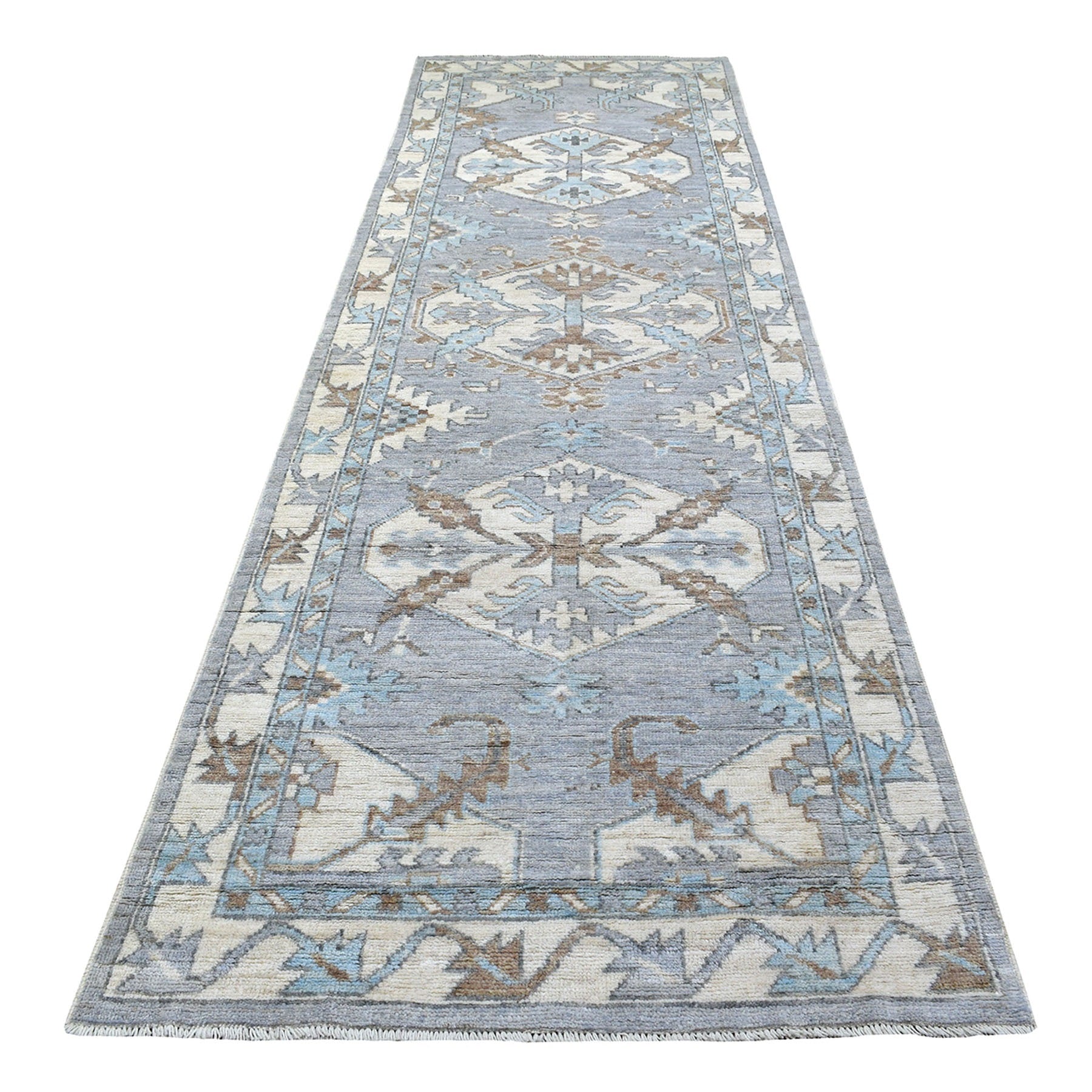 3'10"x12'1" Gray Geometric Anatolian Village Inspired Angora Oushak Hand Knotted Natural Wool Oriental Runner Rug FWR407496
