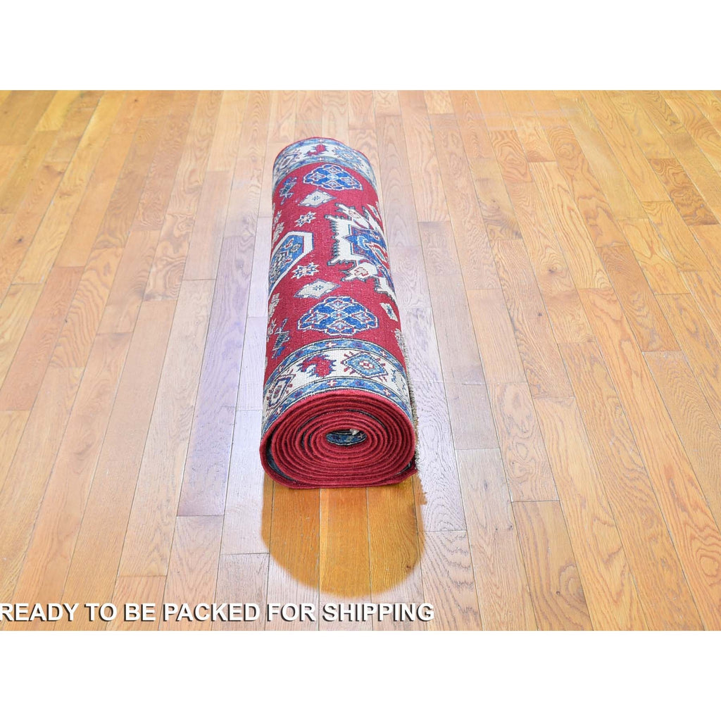 3'10"x17'3" Extra Long Wide Kazak Runner Hand Knotted Natural Wool Oriental Rug FWR358194