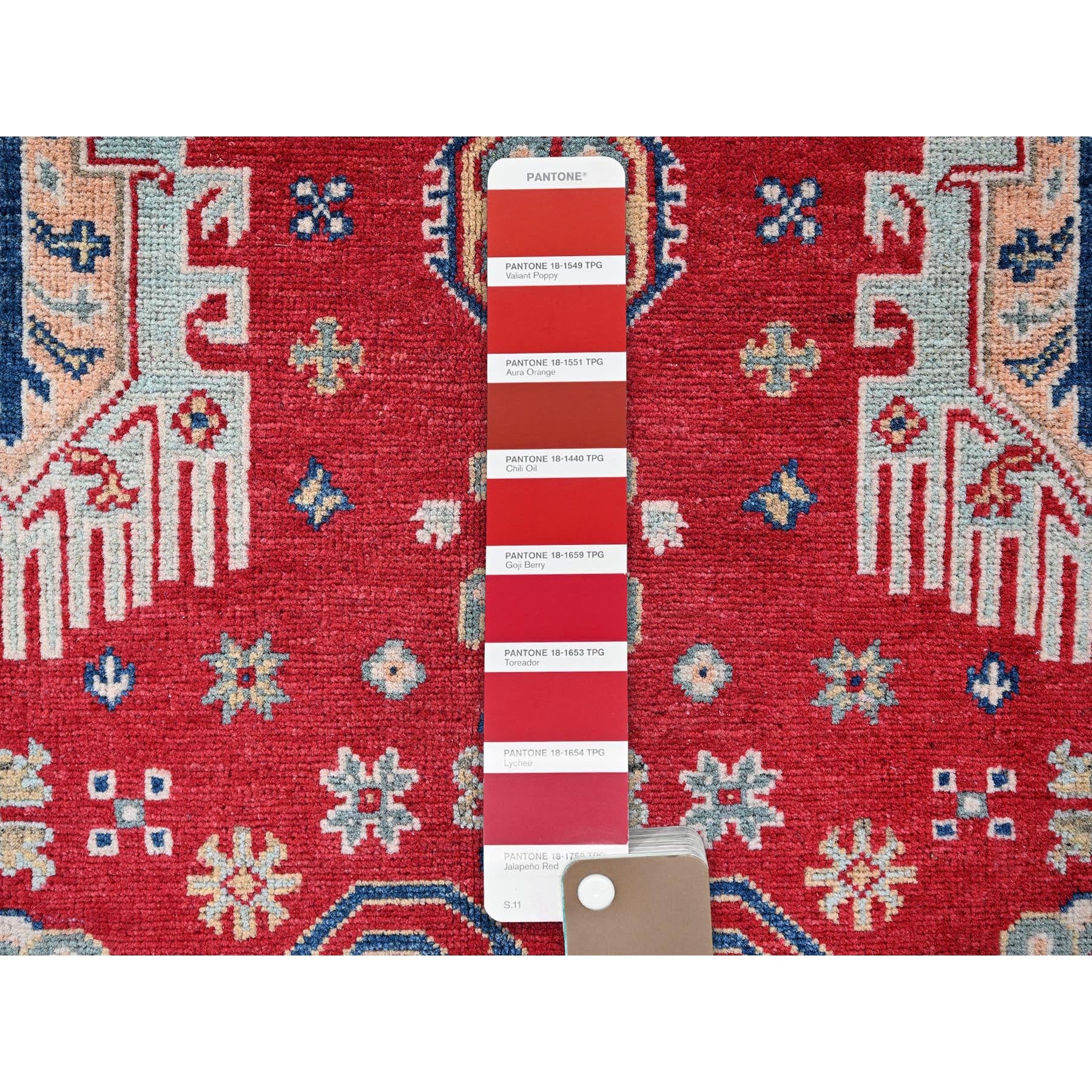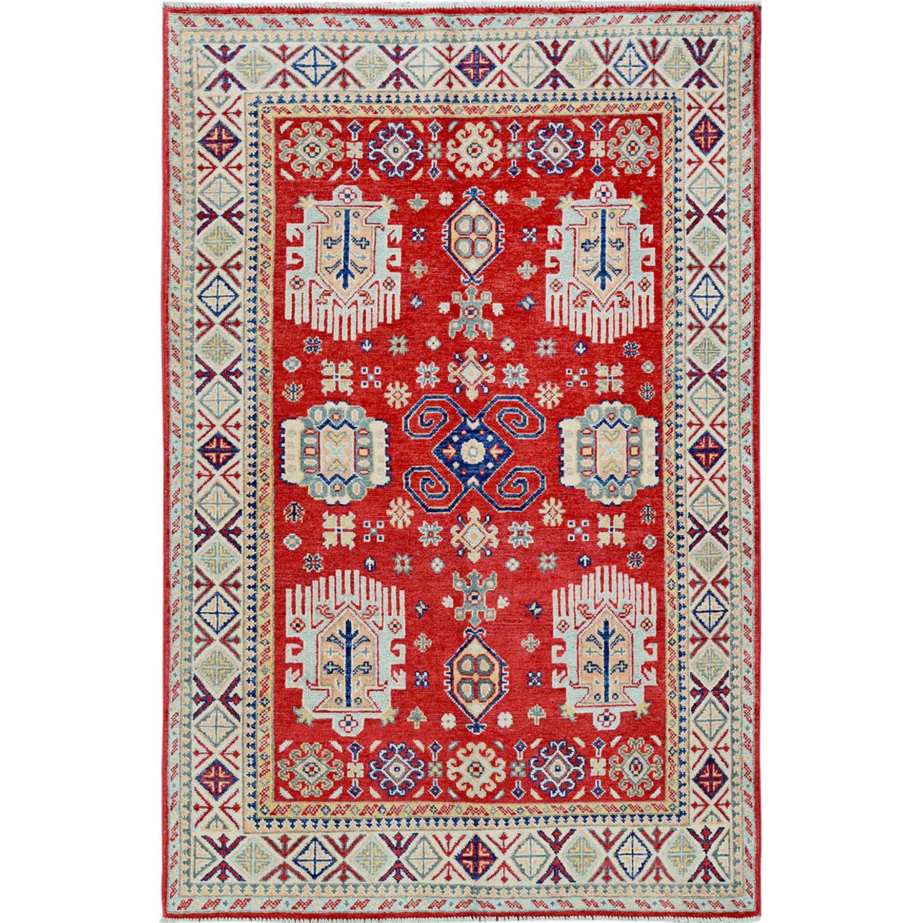 3'10"x5'10" Arsenal Red, Kazak With All Over Tribal Motifs, Hand Knotted, Vegetable Dyes, Denser Weave, Pure Wool, Oriental Rug FWR2142
