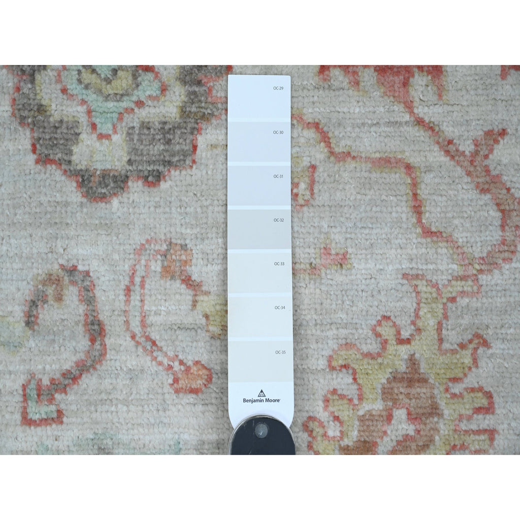 3'10"x5'10" Pearl White, Afghan Angora Oushak With Colorful Leaf Design, Hand Knotted, Veggie Dyes, 100% Wool, Oriental Rug FWR123408
