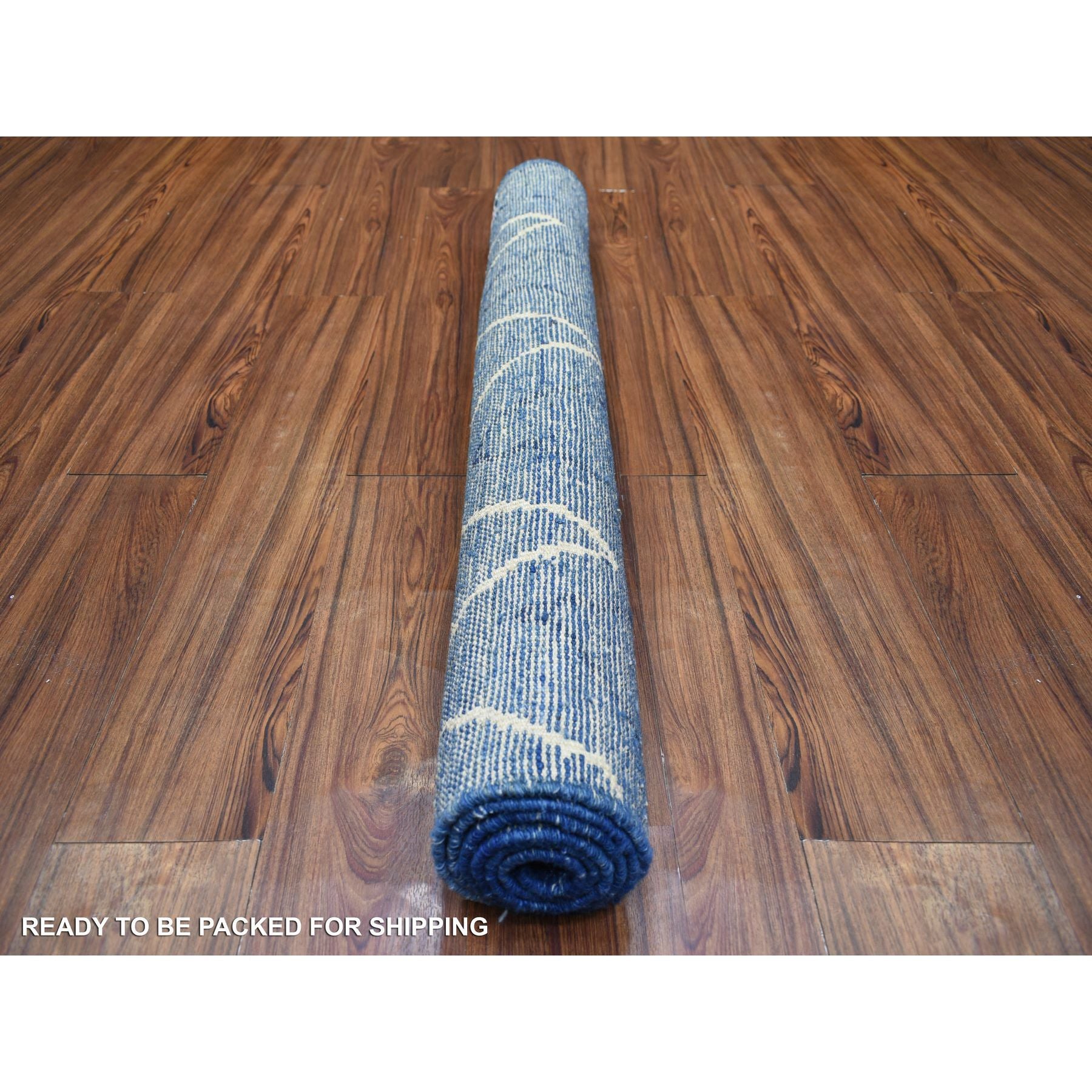 3'10"x5'9" Navy Blue, Soft And Shiny Wool Hand Knotted, Moroccan Berber With Serrated Design, Natural Dyes, Oriental Rug FWR431460