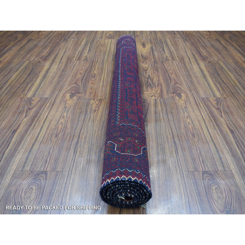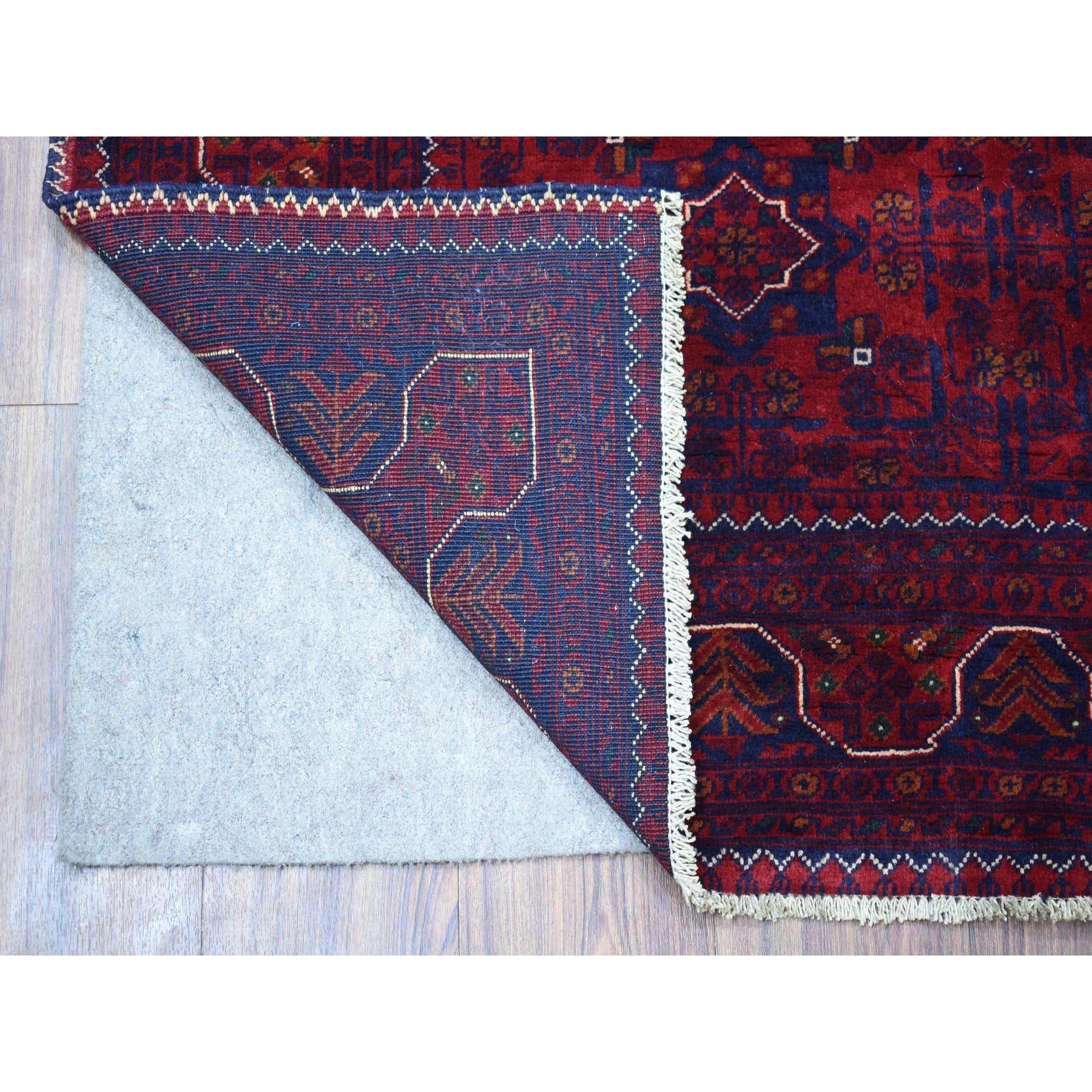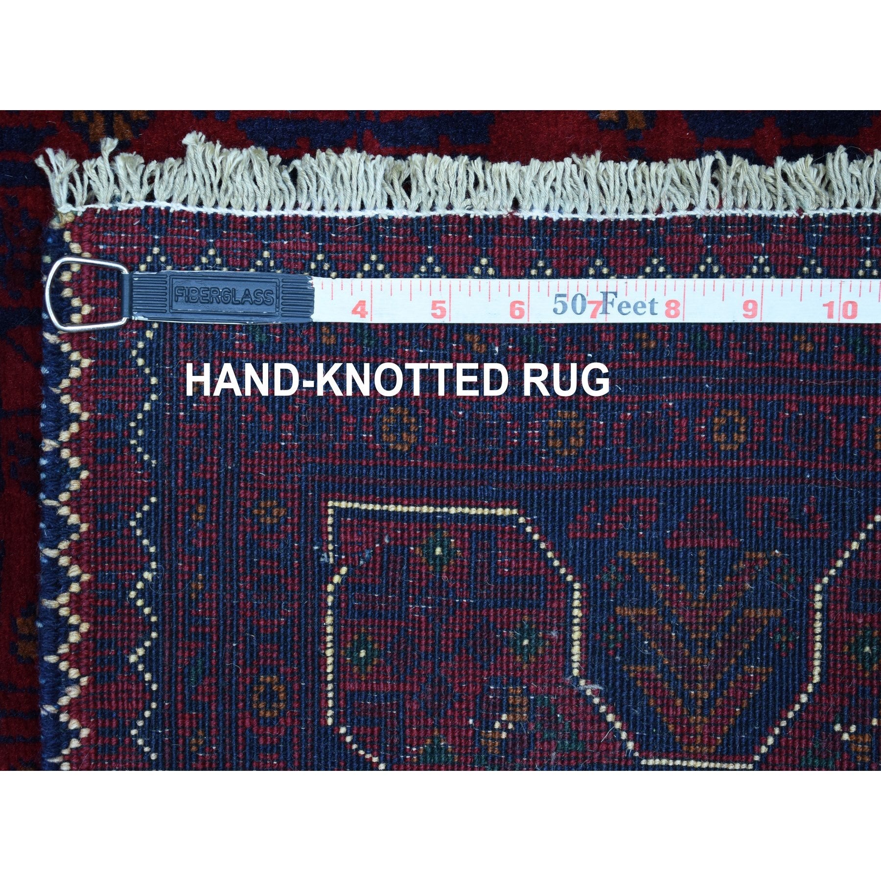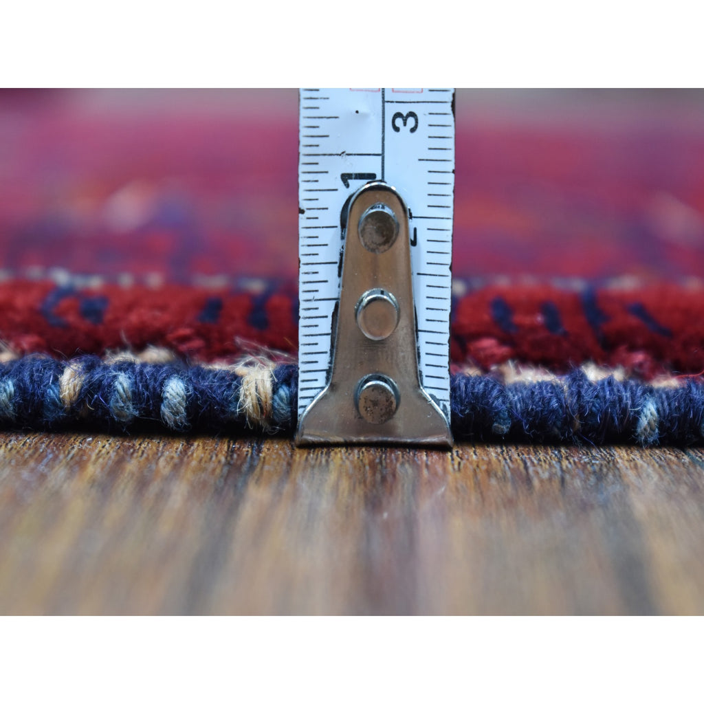 3'10"x5'9" Saturated Red With Pop Of Navy Blue Afghan Khamyab Hand Knotted Denser Weave With Shiny Wool Oriental Rug FWR408420