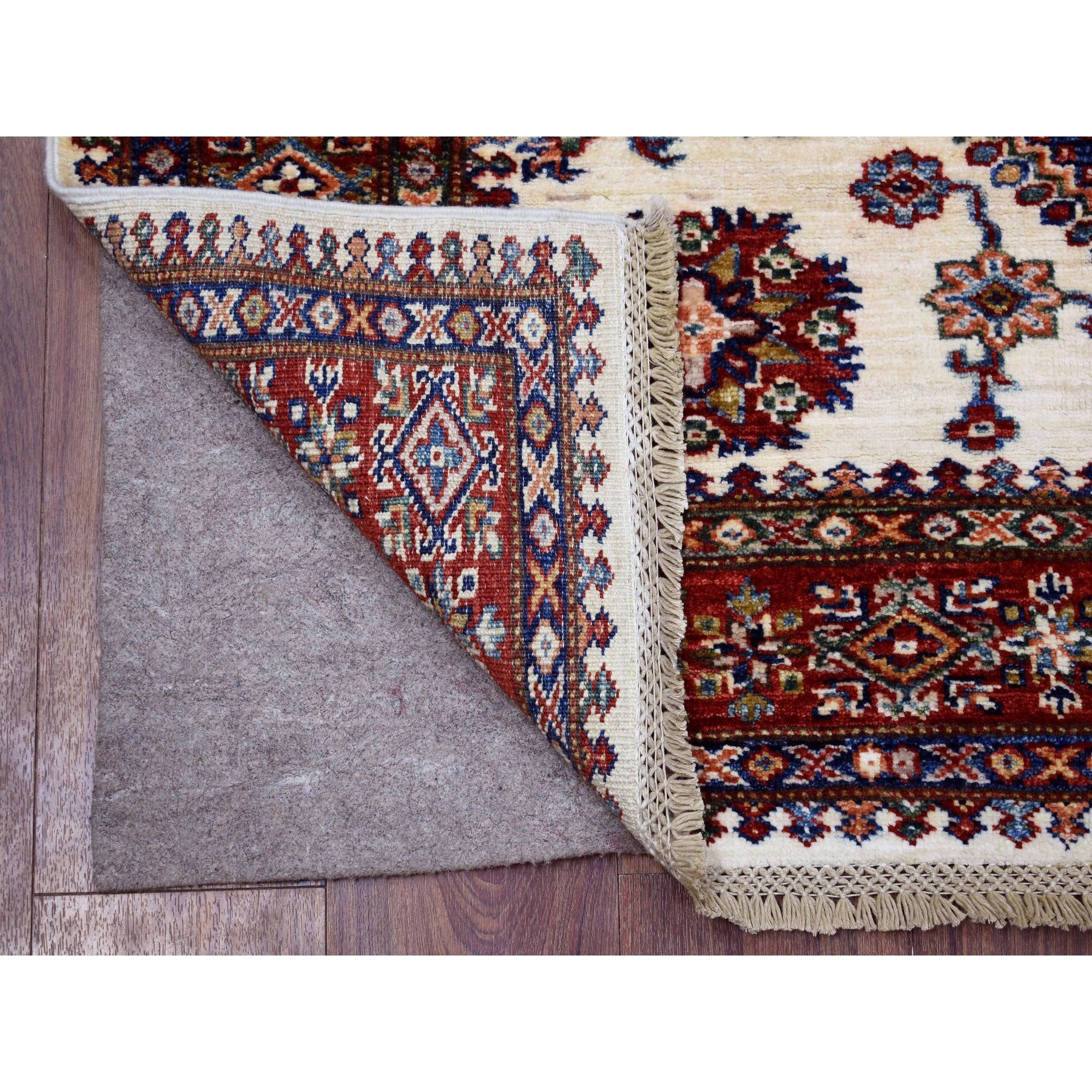 3'10"x5' Ivory With Mix Of Red Super Kazak Tribal Design Hand Knotted Afghan Wool Oriental Rug FWR406338