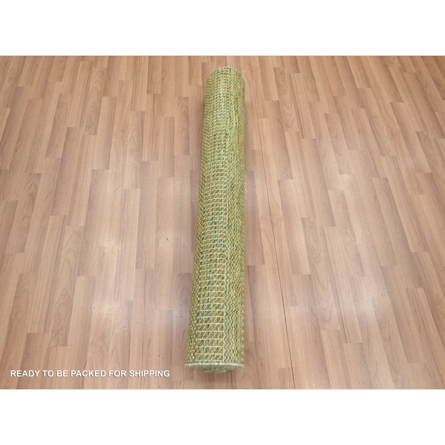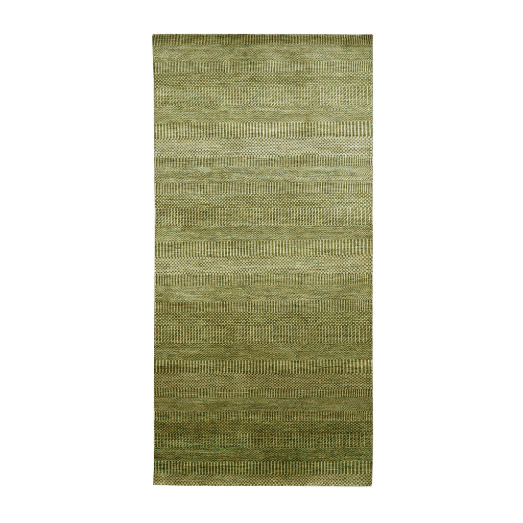 3'10"x8' Honey Brown, Hand Knotted, Modern Grass Design, Denser Weave, Wool And Silk, Soft To The Touch, Runner, Oriental Rug FWR499314