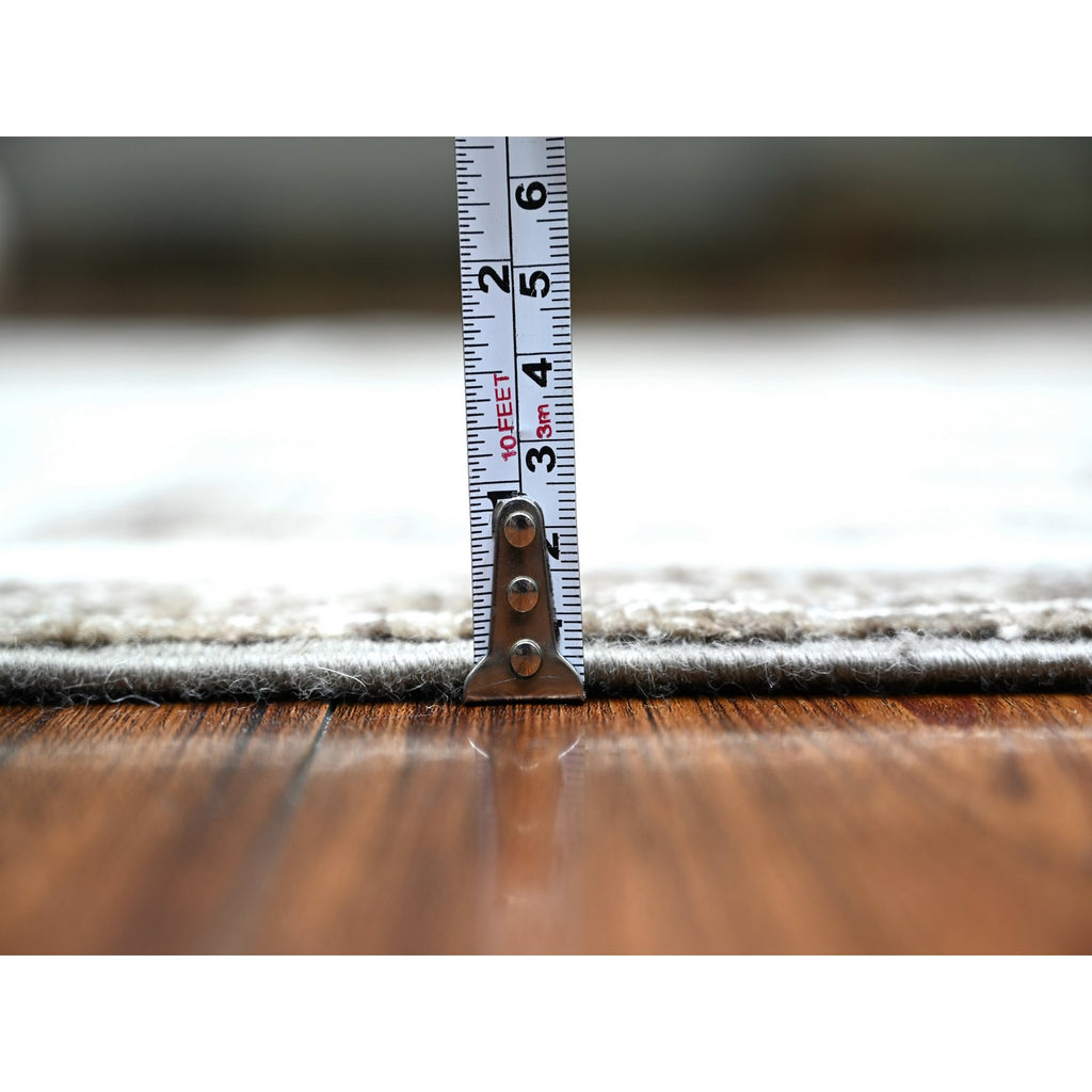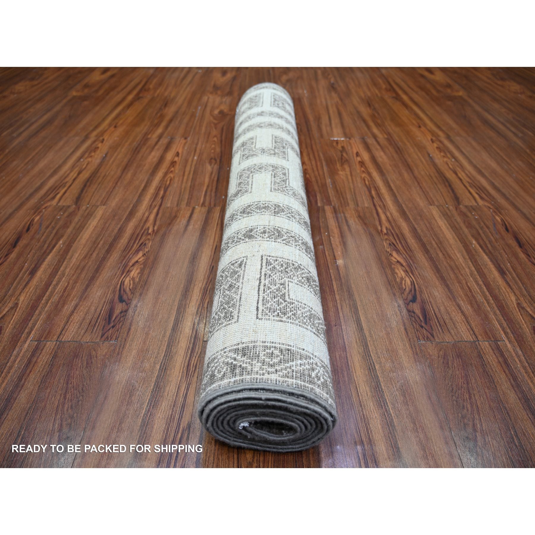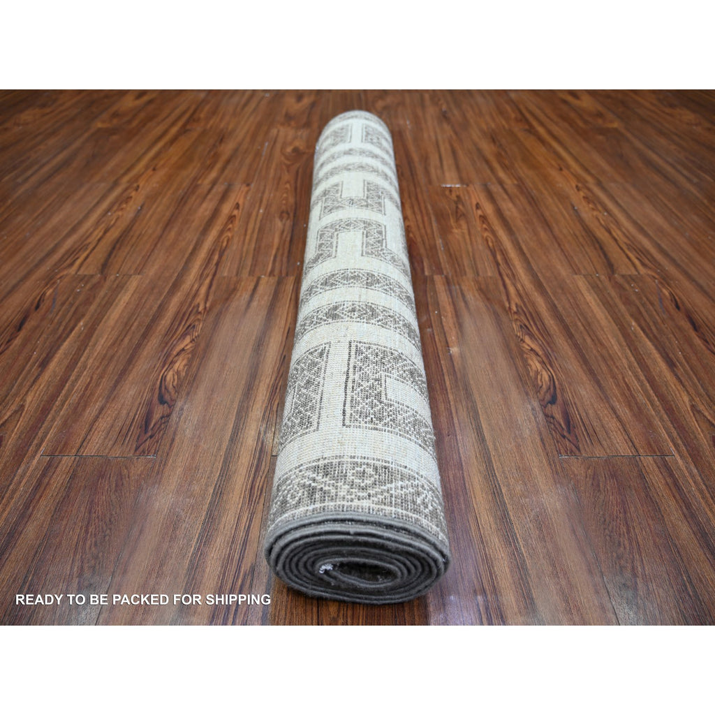 3'10"x9'7" Taupe Brown, Hand Knotted Extra Soft Wool, Natural Dyes Fine Peshawar With Intricate Geometric Motifs Maze Design, Wide Runner Oriental Rug FWR445578