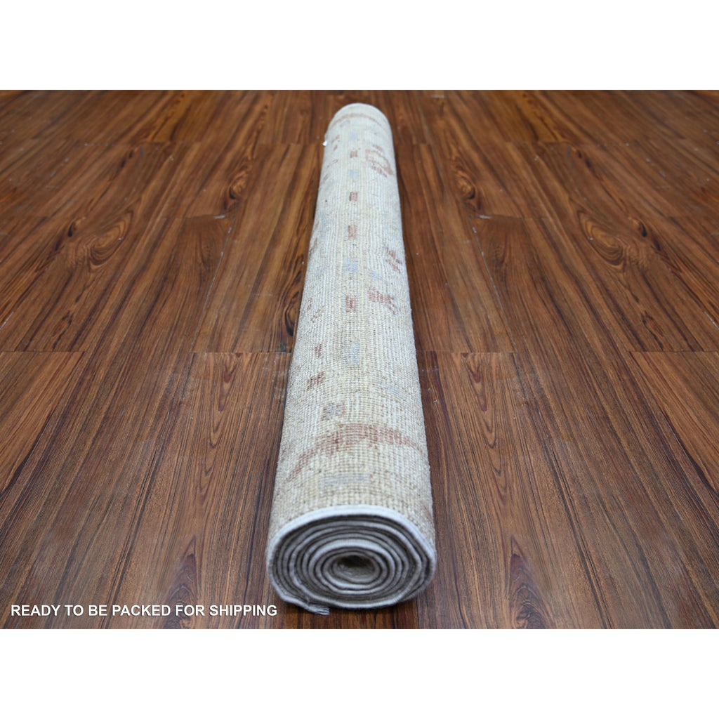 3'10"x9'8" Pastel Colors, Pure Wool Hand Knotted, Afghan Angora Oushak With Large Motifs Natural Dyes, Wide Runner Oriental Rug FWR441510