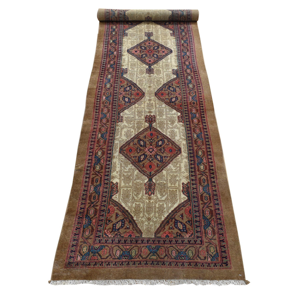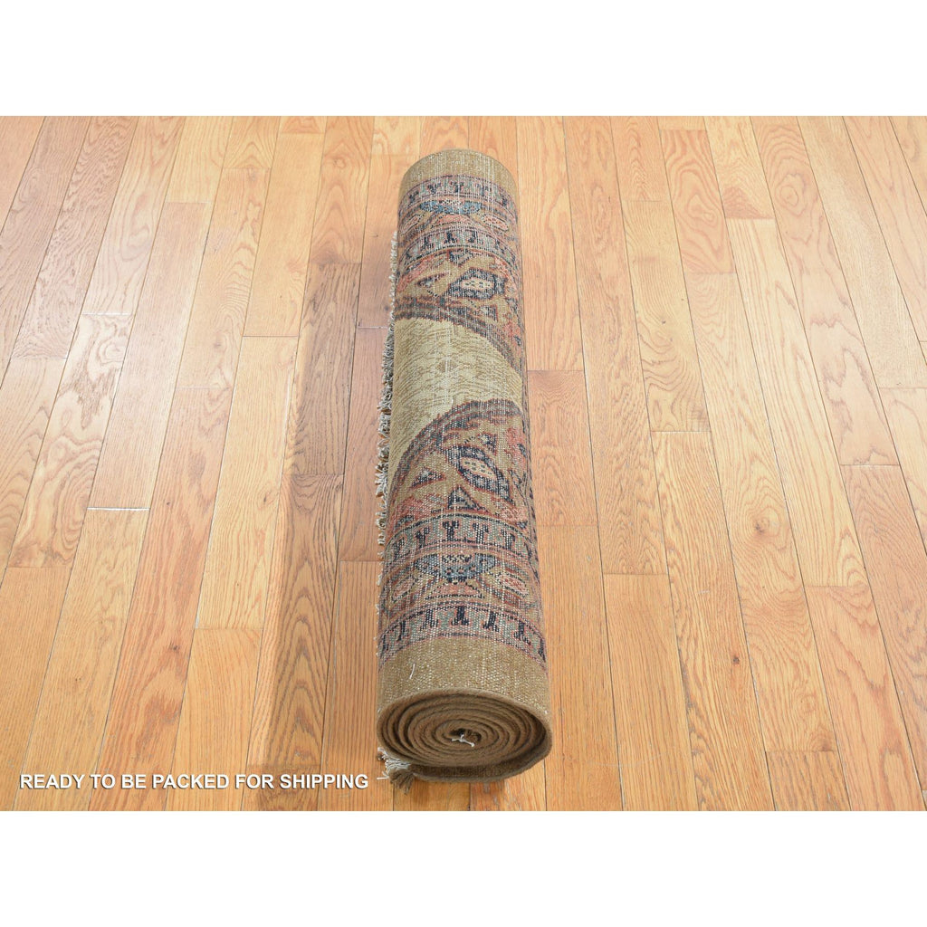 3'2"x14'10" Taupe Brown, Antique Persian Camel Hair Serab, Pure Wool, Hand Knotted, Clean, Sides And Ends Professionally Secured, Wide And Extra Long Runner, Oriental Rug FWR484374