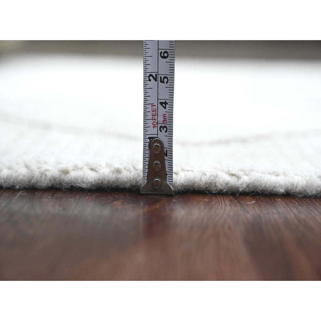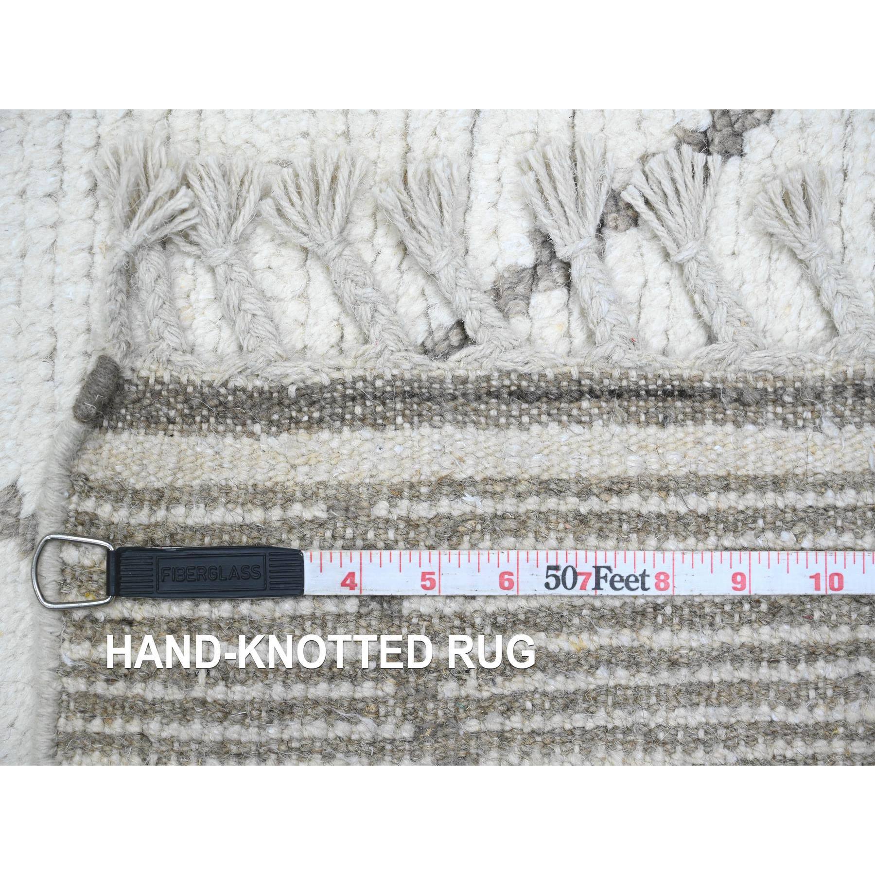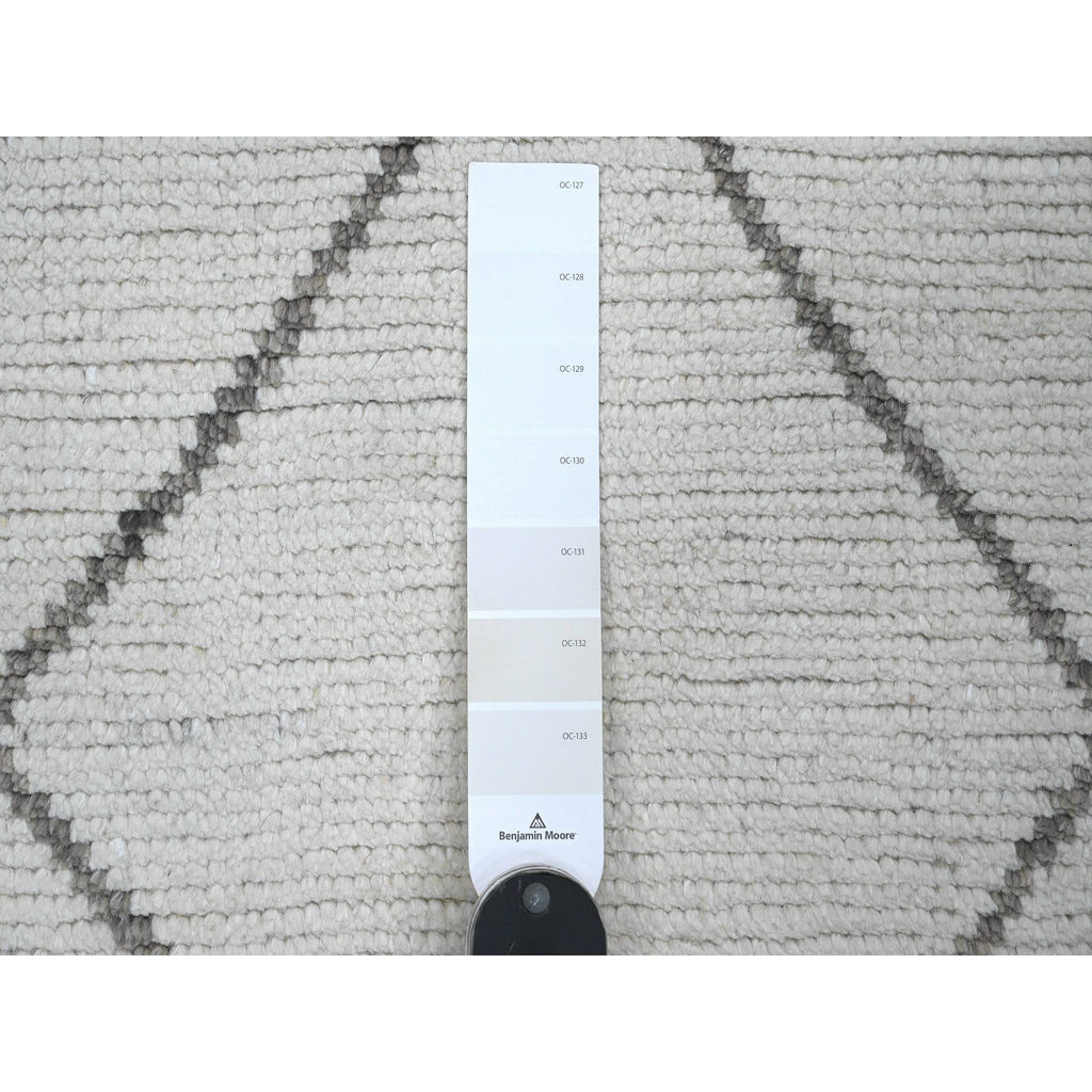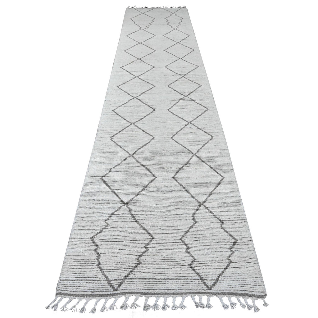 3'2"x15'4" Pearl White, Moroccan Weave With Serrated Pattern, Tone On Tone, Hand Knotted, Soft Wool, Textured Pile, Xl Runner, Oriental Rug FWR123306