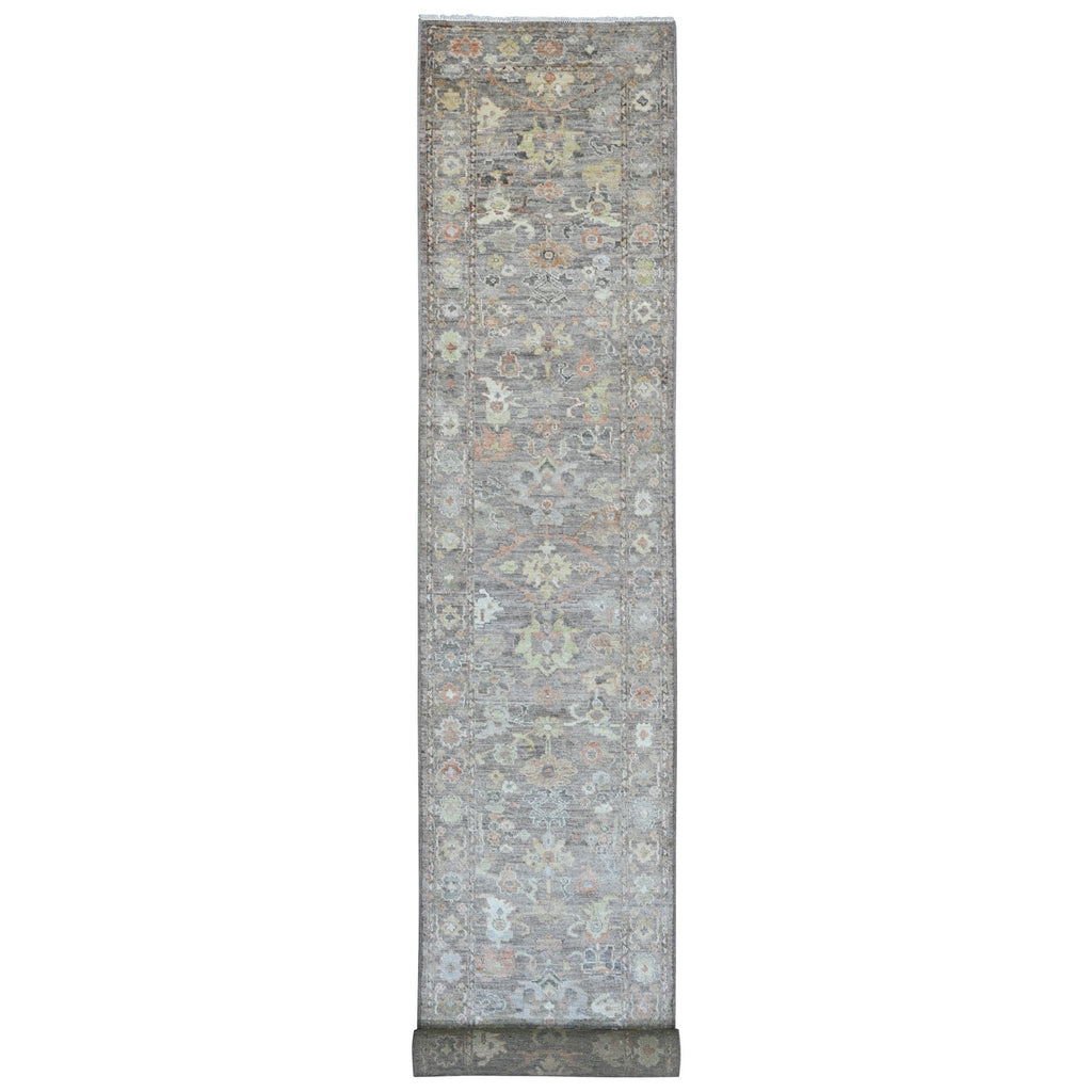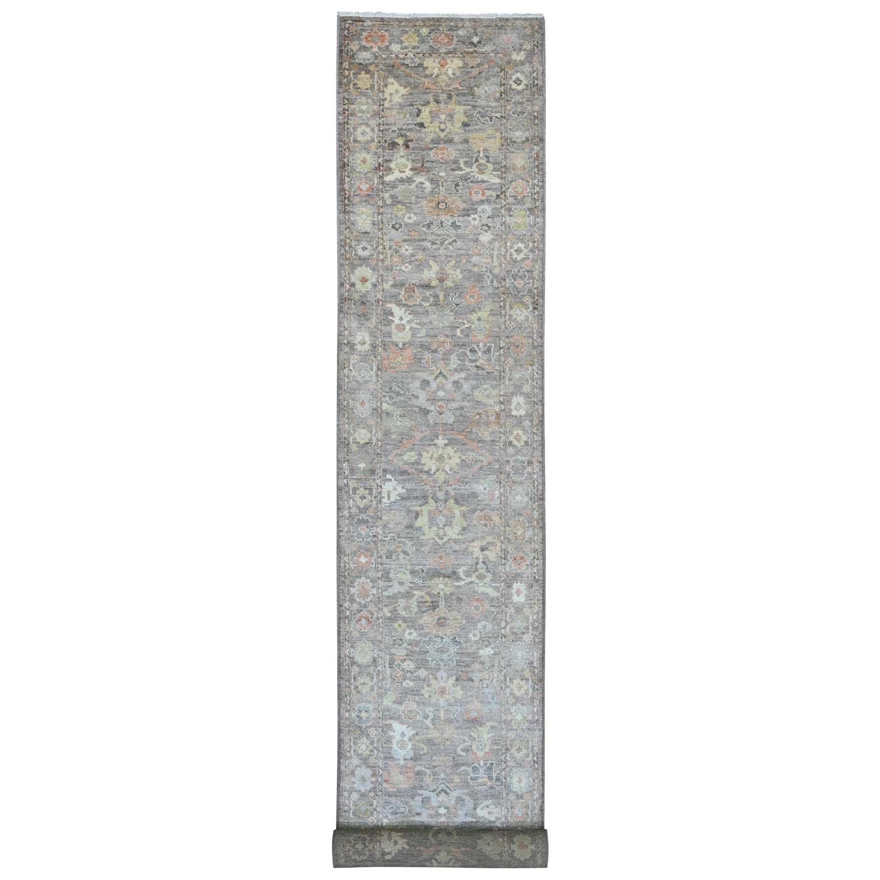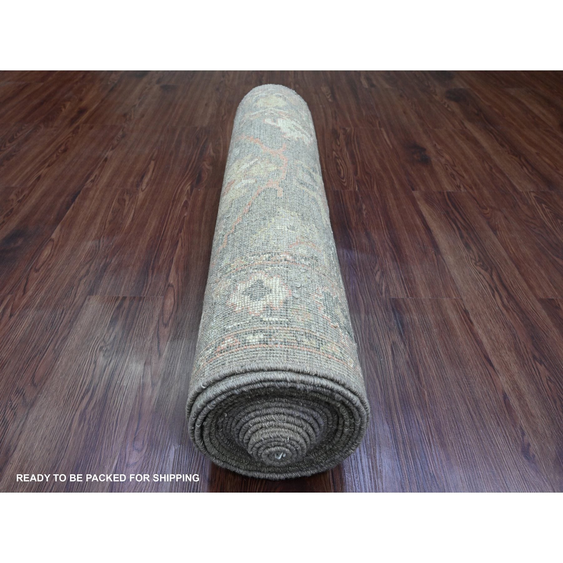 3'2"x23'7" Cedar Brown, Hand Knotted, Afghan Angora Oushak With All Over Leaf Design, Vegetable Dyes, 100% Wool, Xl Runner, Oriental Rug FWR539700