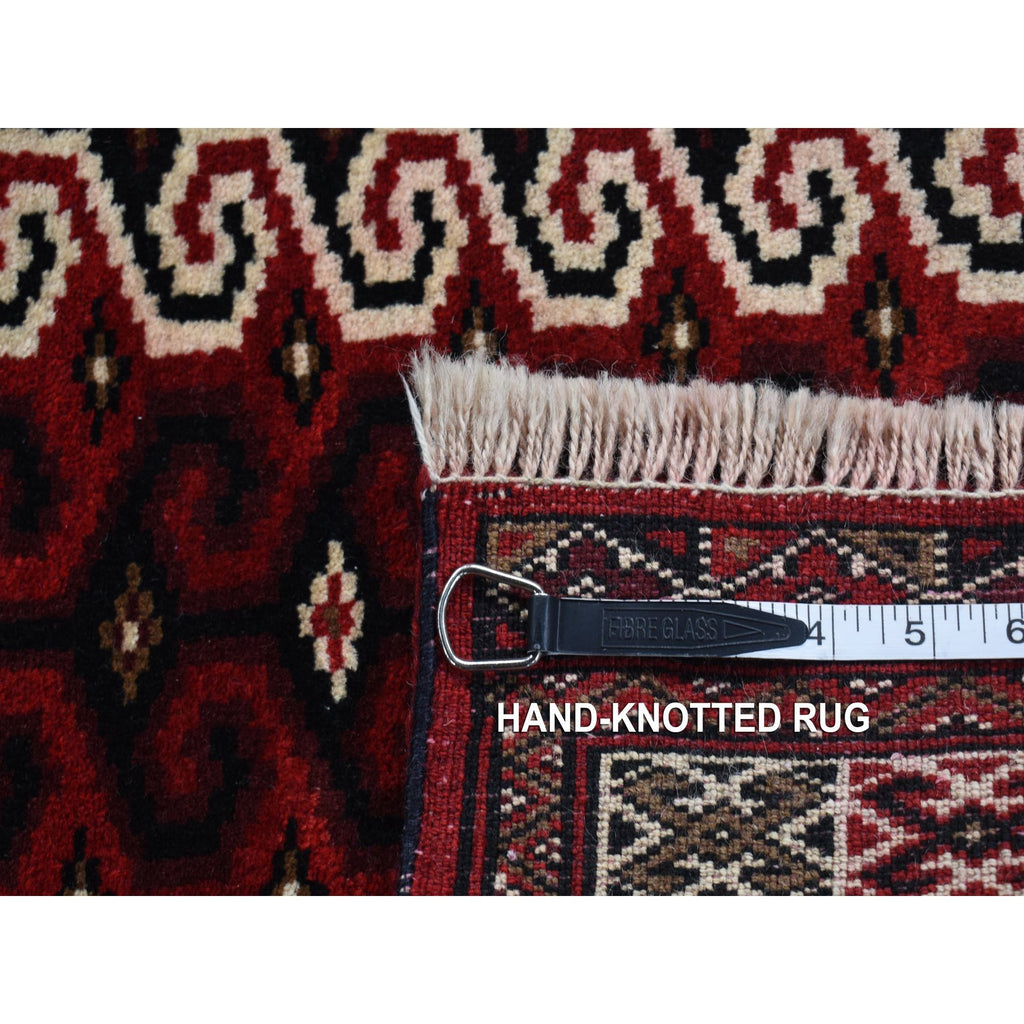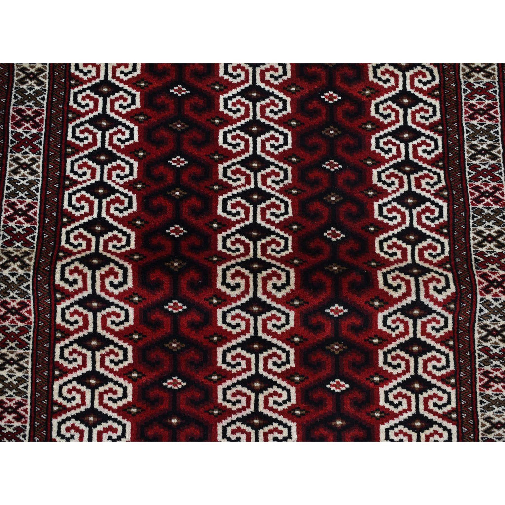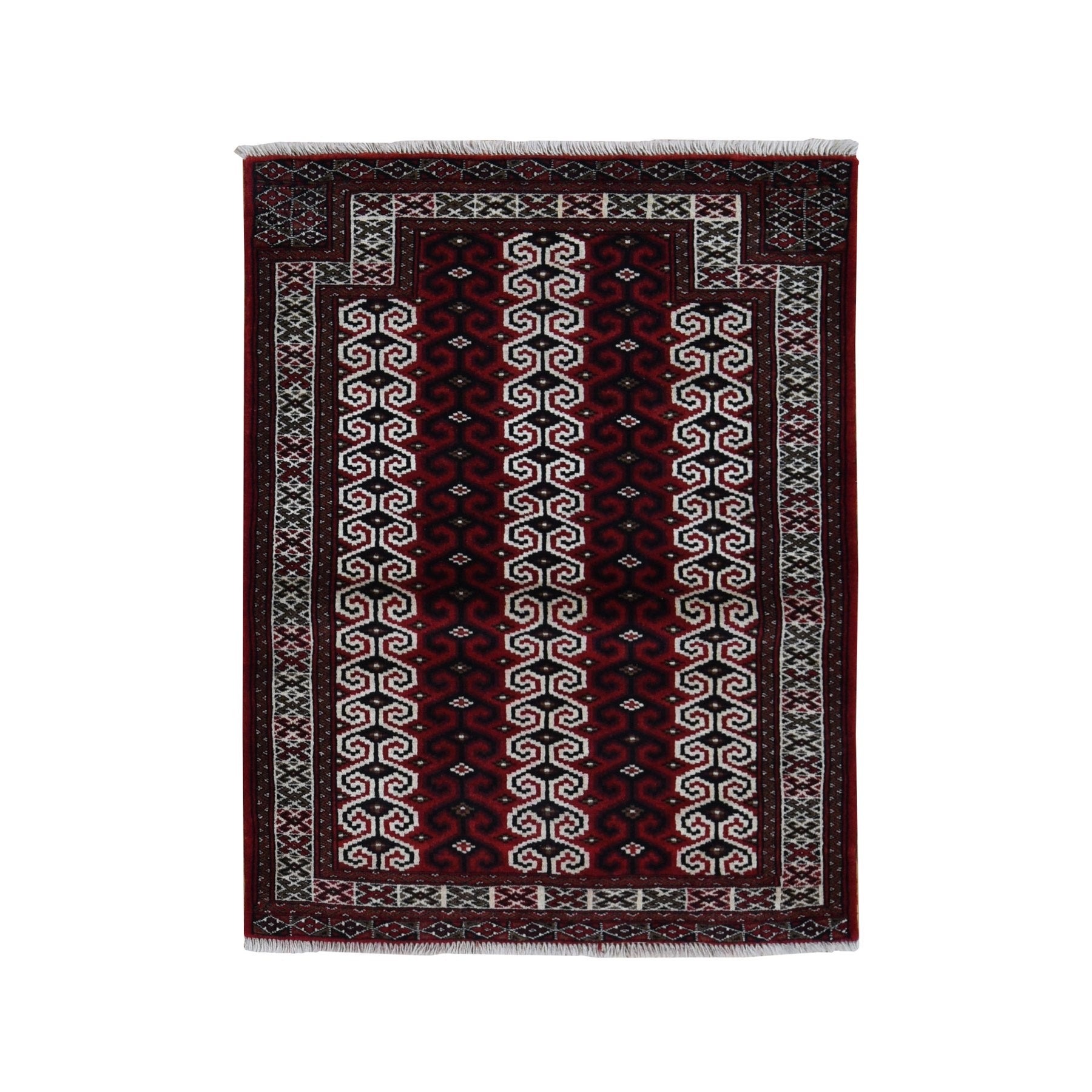 3'2"x4'1" Maroon Red, Turkoman Repetitive Geometrical Prayer Design, Pure Wool, Hand Knotted, Oriental Rug FWR524760