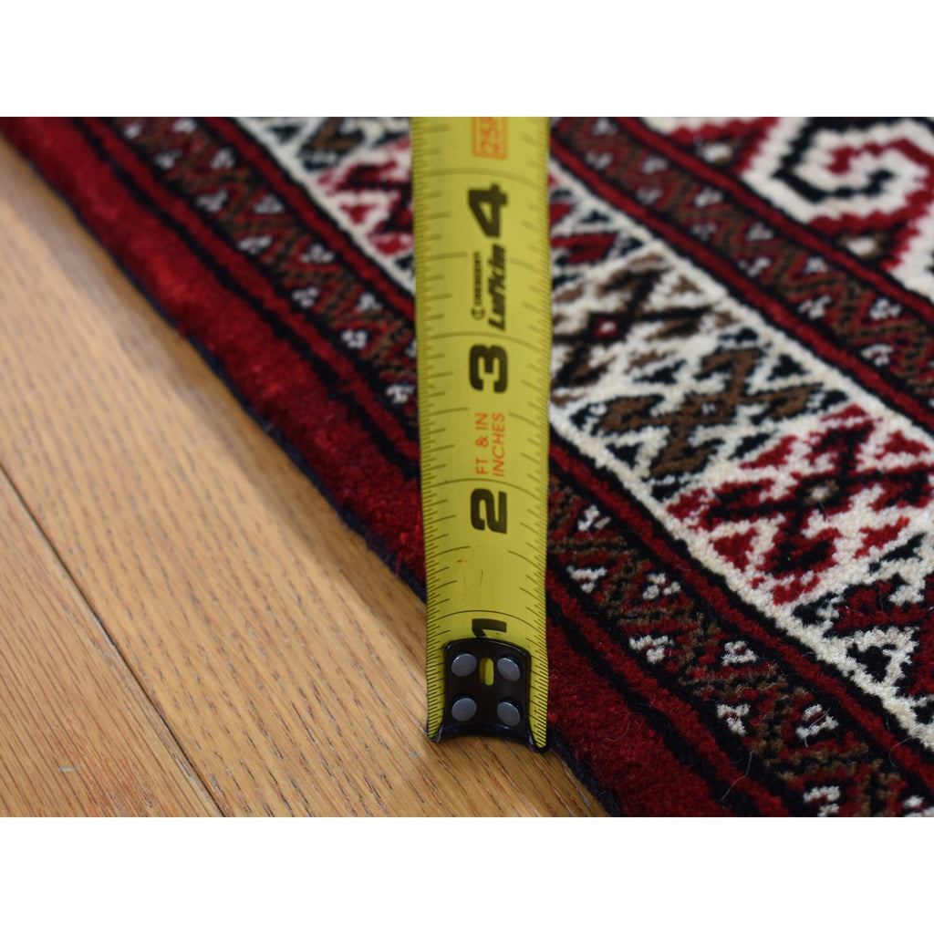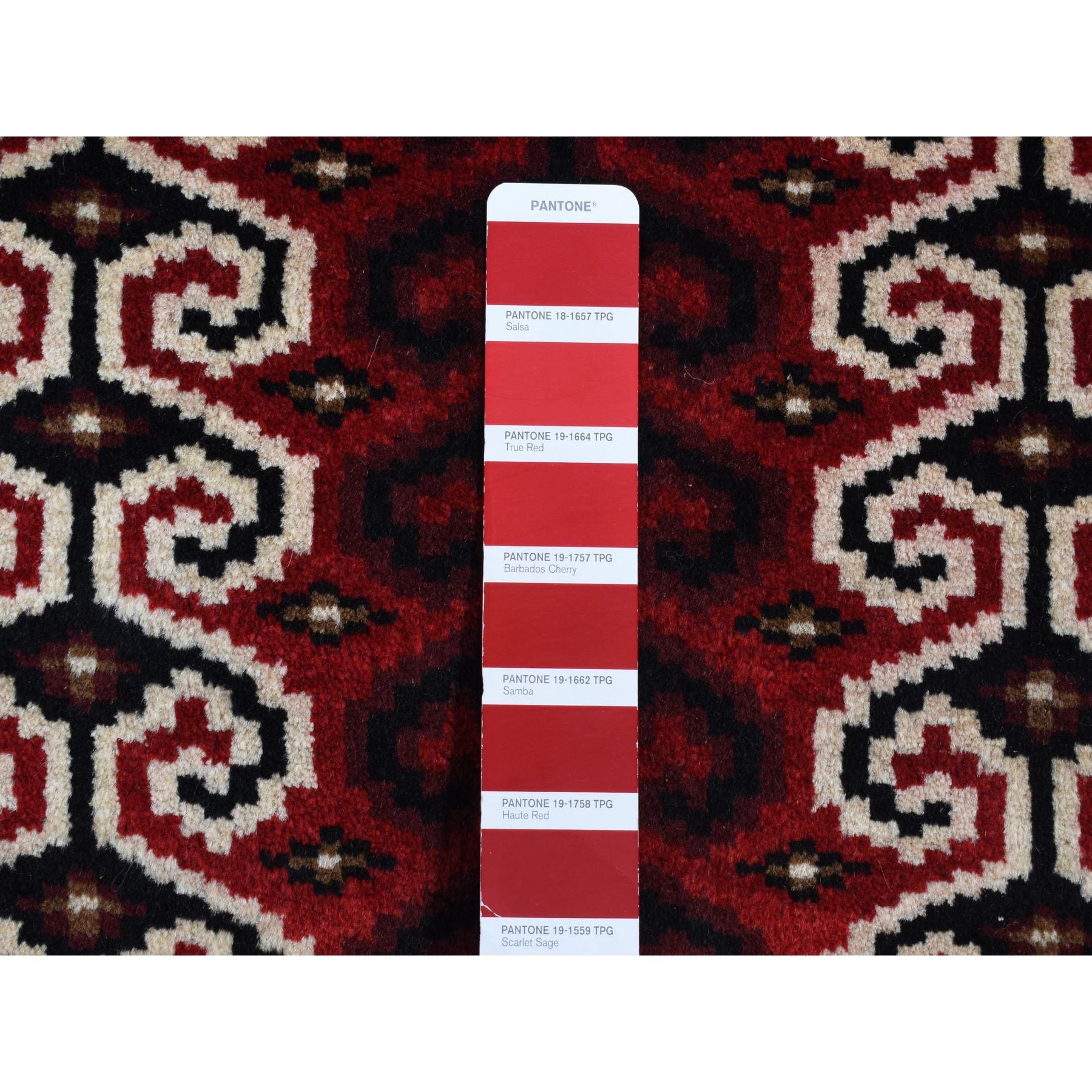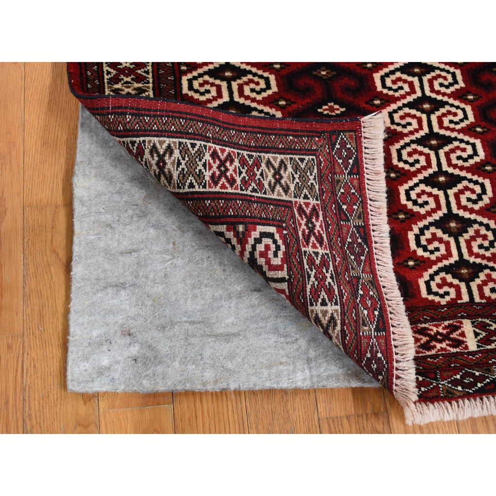 3'2"x4'1" Maroon Red, Turkoman Repetitive Geometrical Prayer Design, Pure Wool, Hand Knotted, Oriental Rug FWR524760