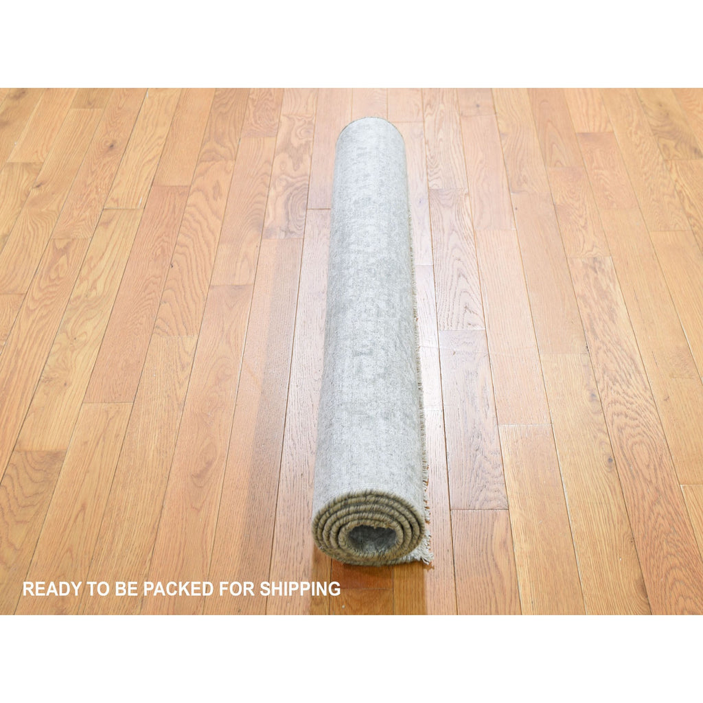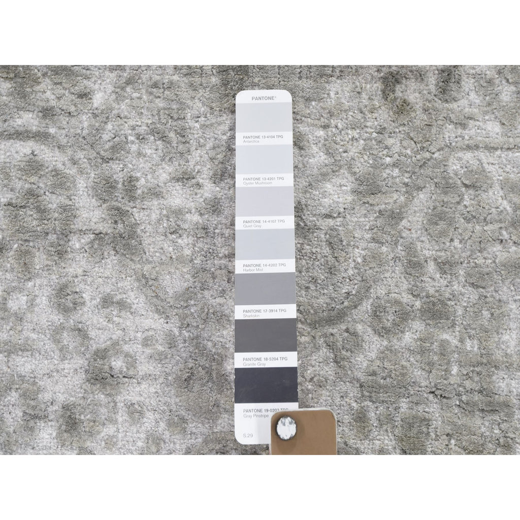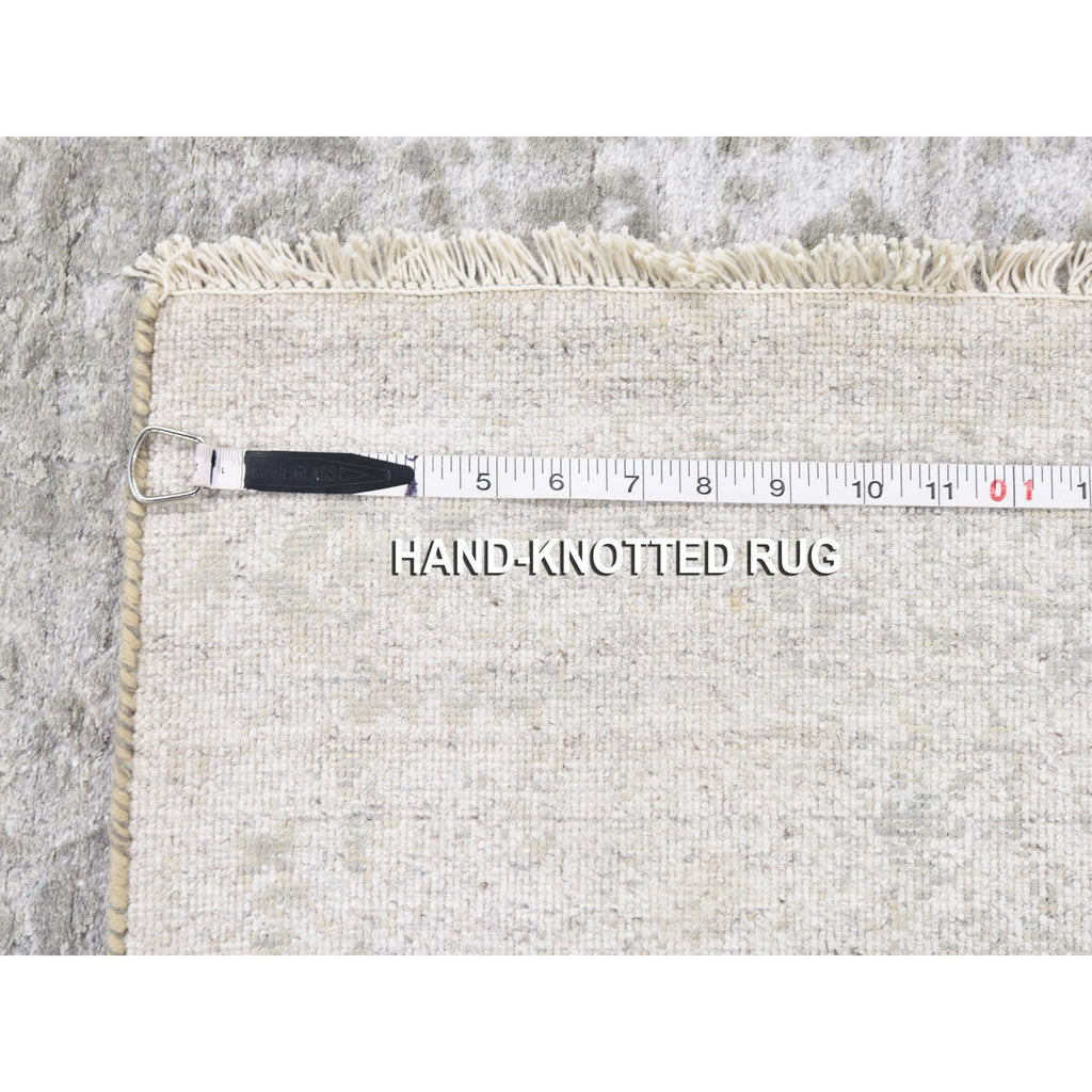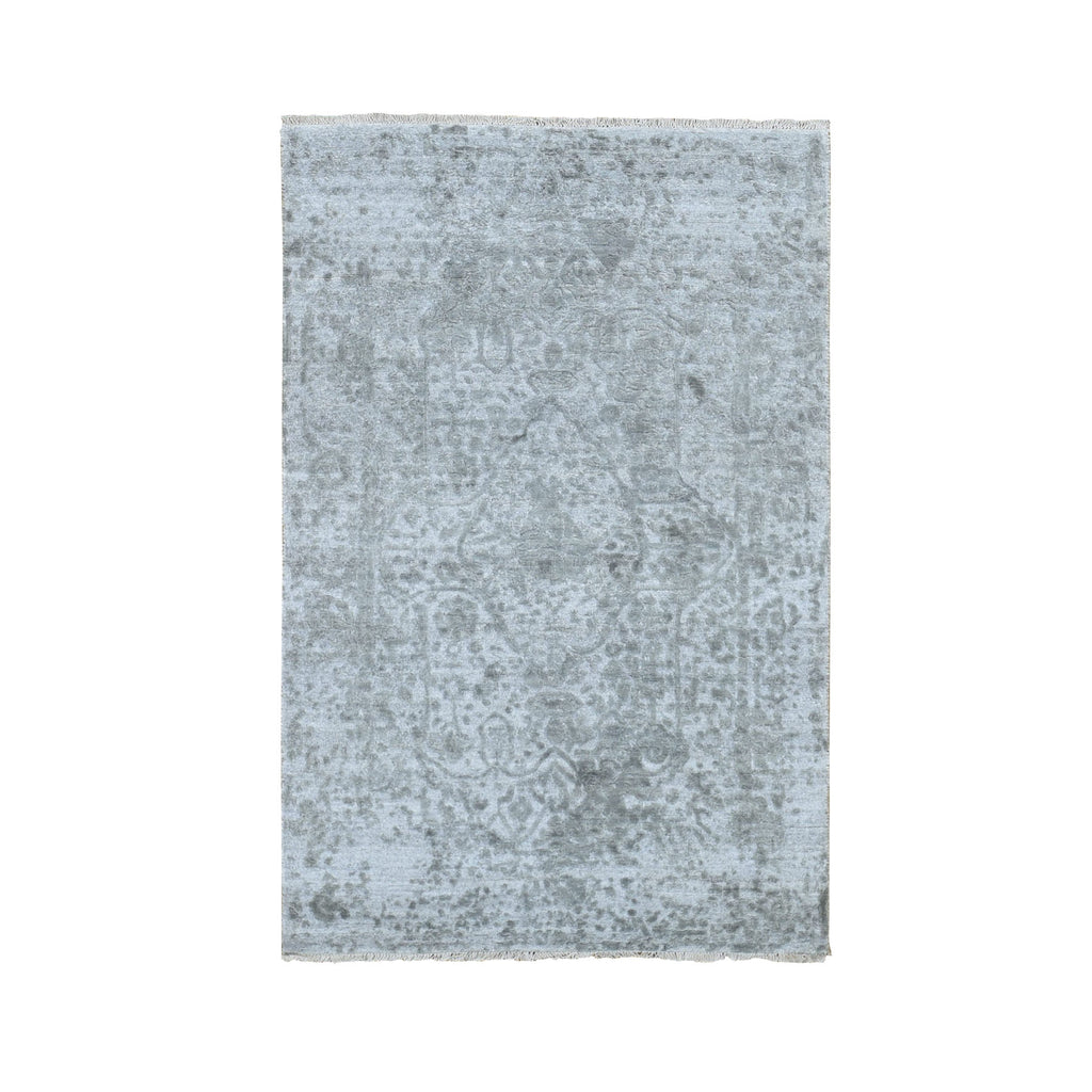 3'2"x5'1" Cloud Gray, Broken Persian Design, Hand Knotted, Wool And Pure Silk, Oriental Rug FWR469608