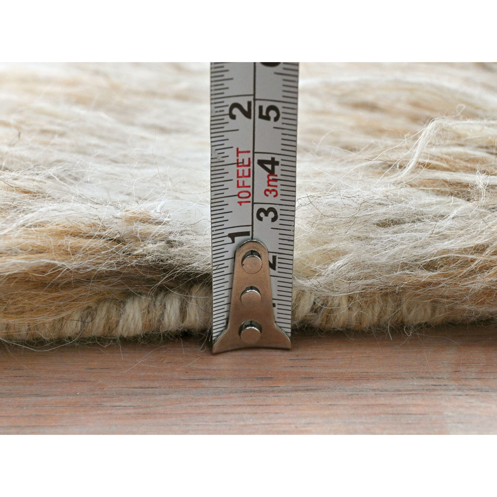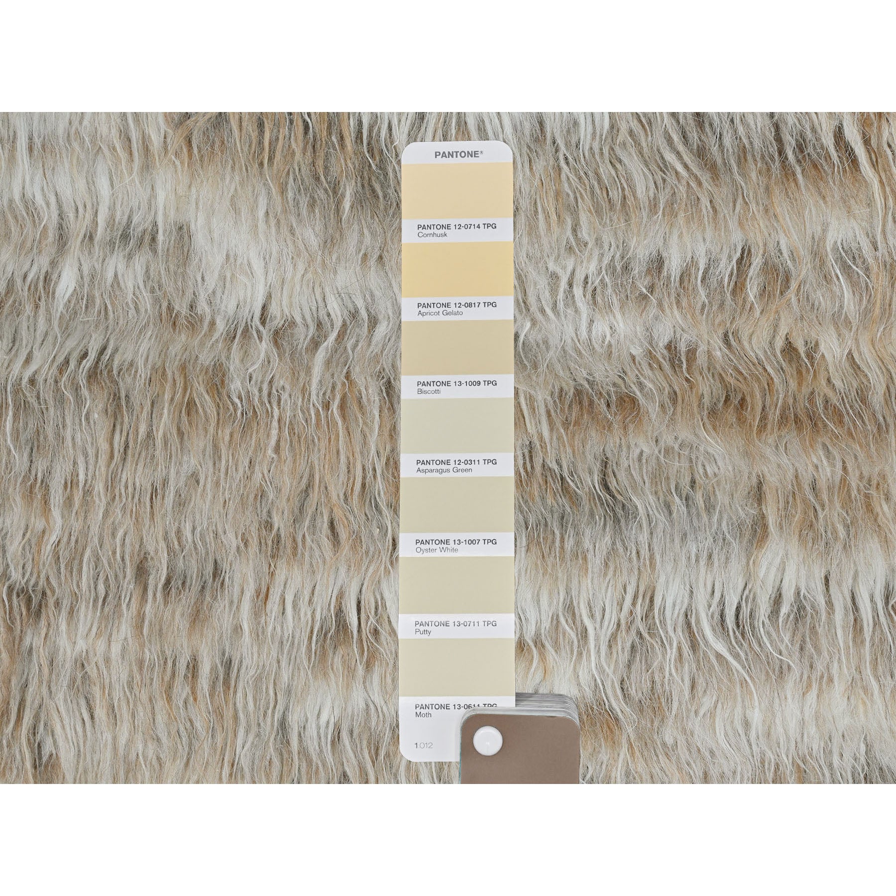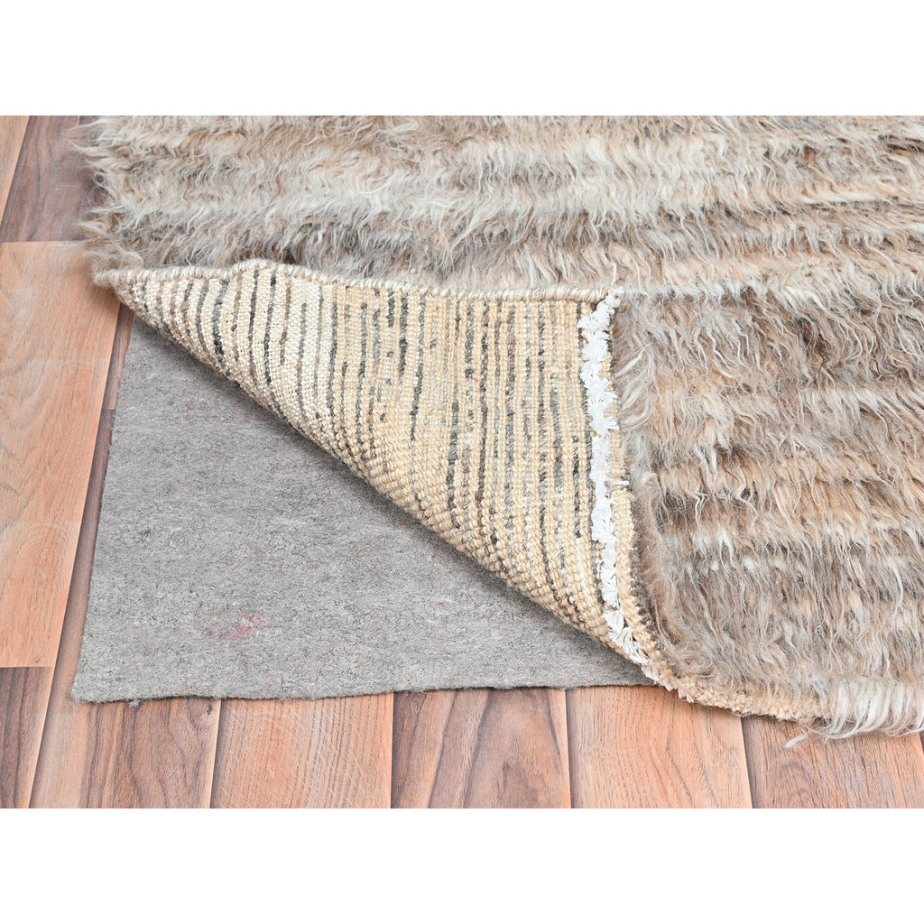 3'2"x5'6" Beige, Hand Knotted Shag Flokati Greek Style Undyed Natural Wool, Oriental Rug FWR492150