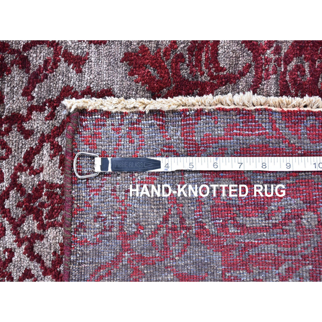 3'2"x5'6" Wine Red Wool And Silk Modern Damask Design Mat Hand Knotted Oriental Rug FWR396738