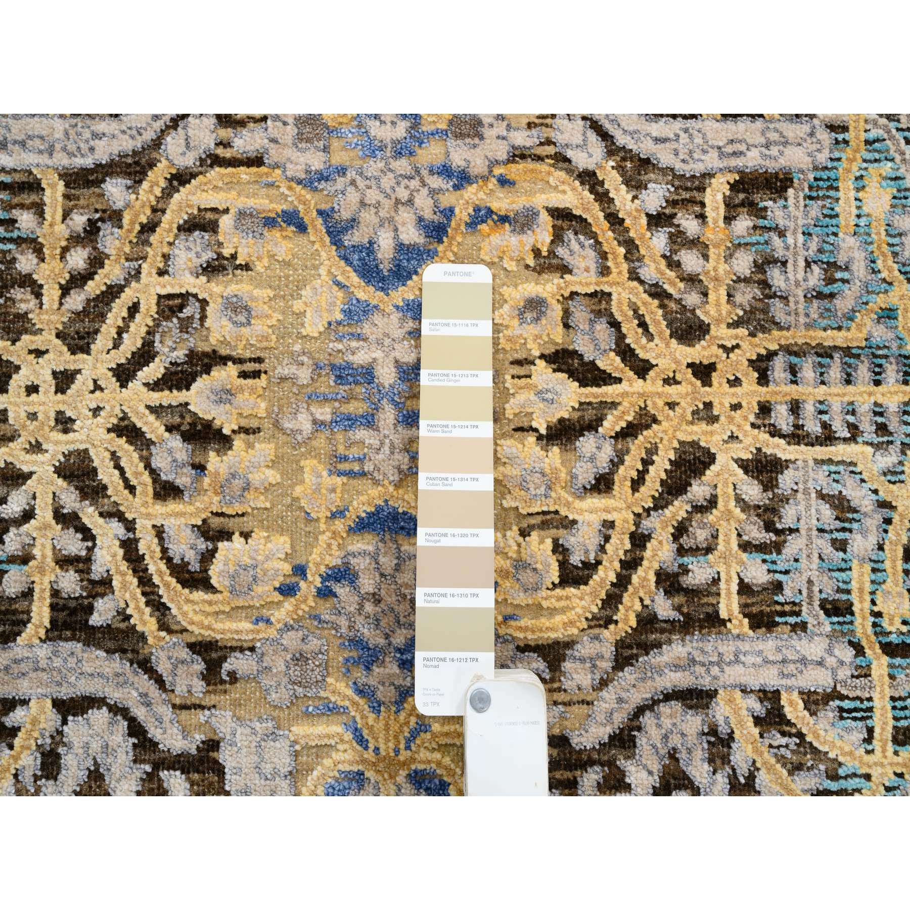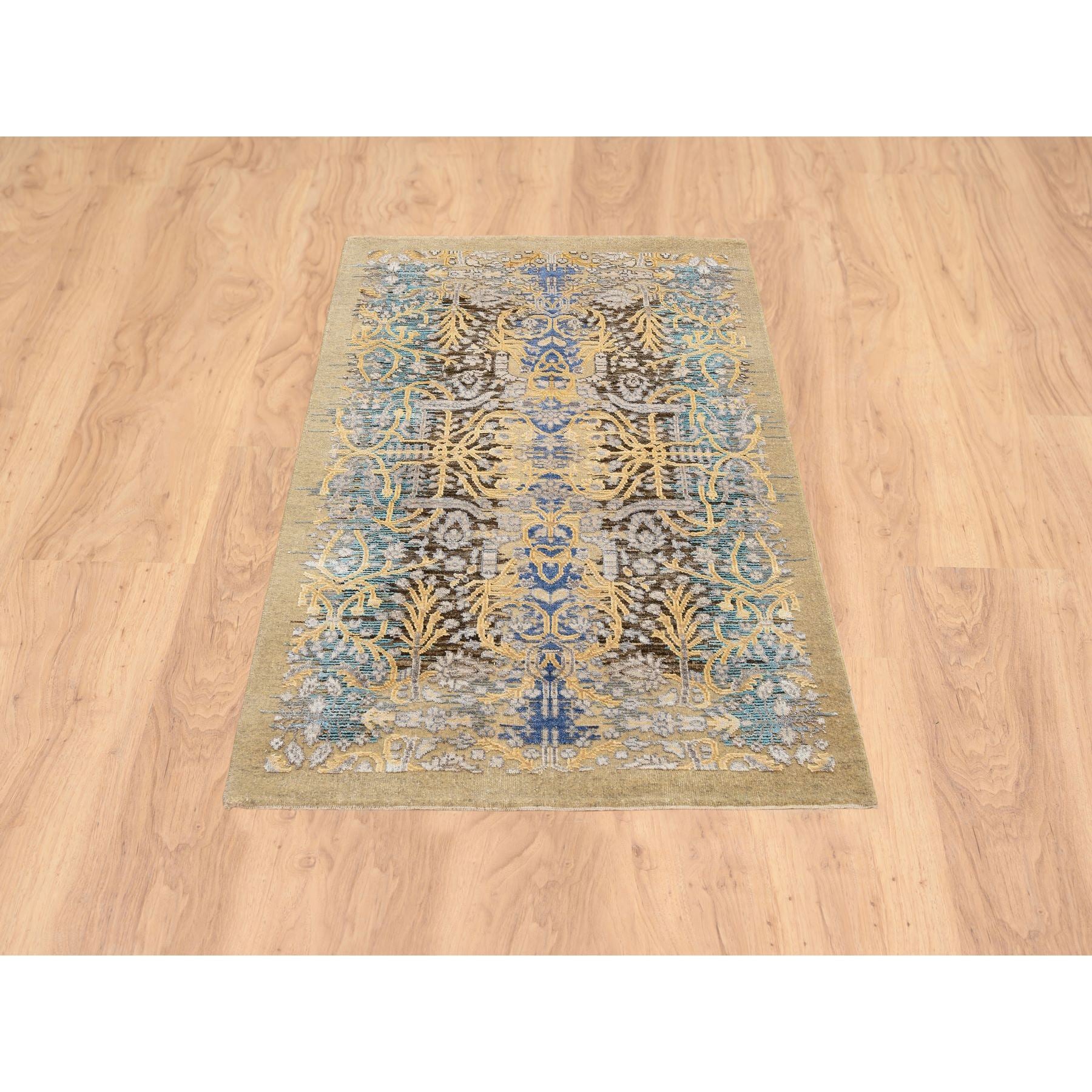 3'2"x5' Gold Brown, Transitional Sarouk, Silk With Textured Wool Hand Knotted, Oriental Rug FWR386754