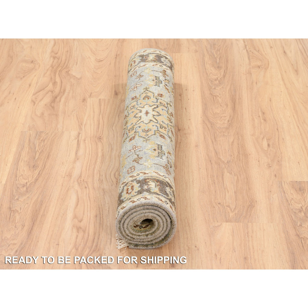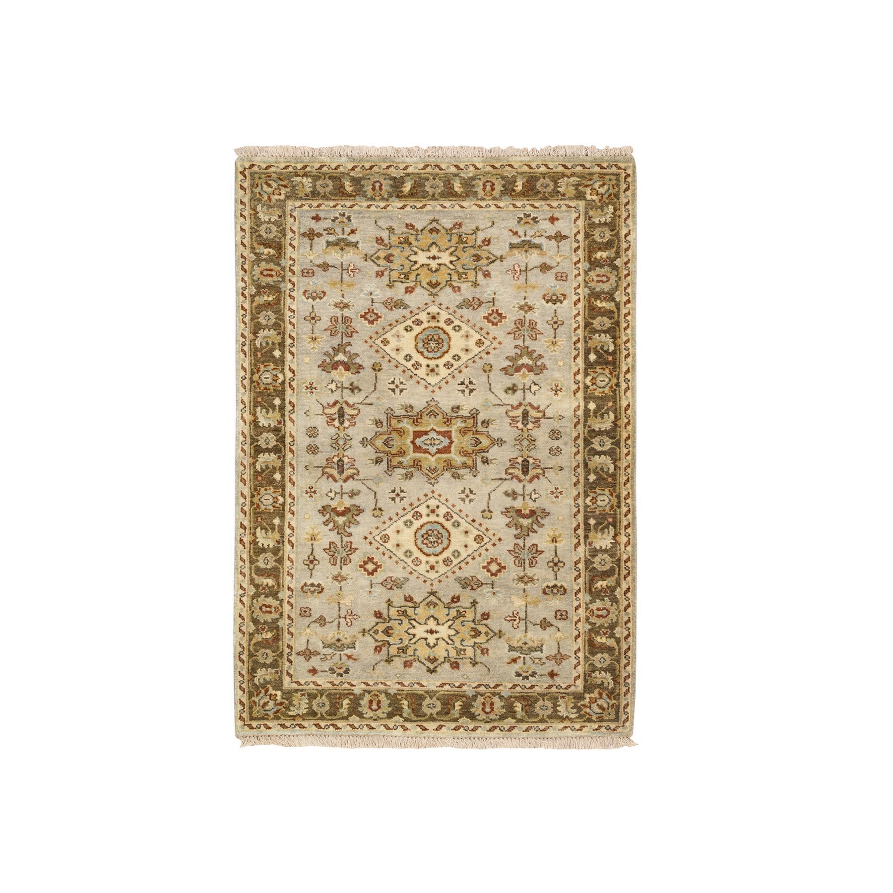 3'2"x5' Light Gray Karajeh Design With Tribal Medallions Hand Knotted Pure Wool Oriental Rug FWR380664