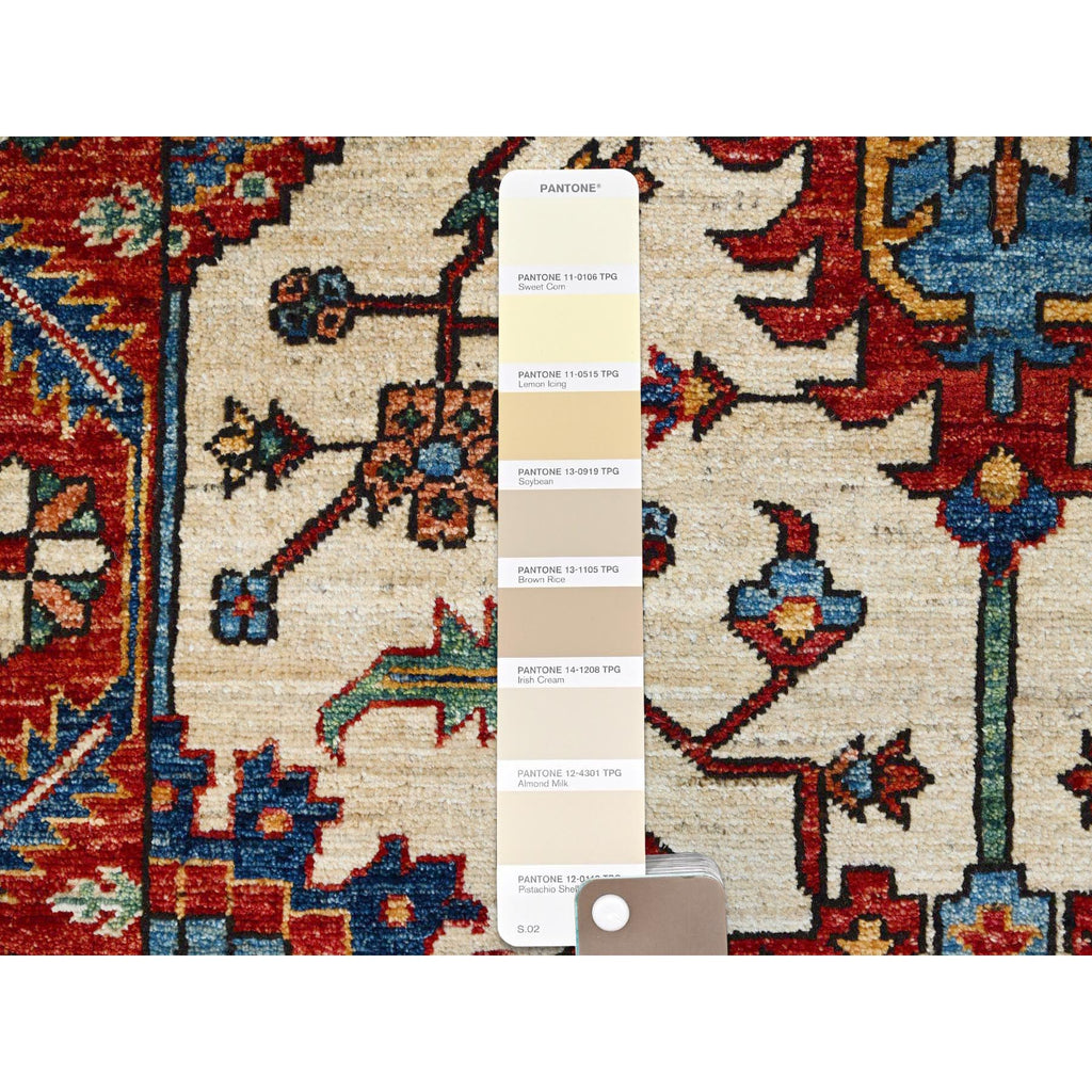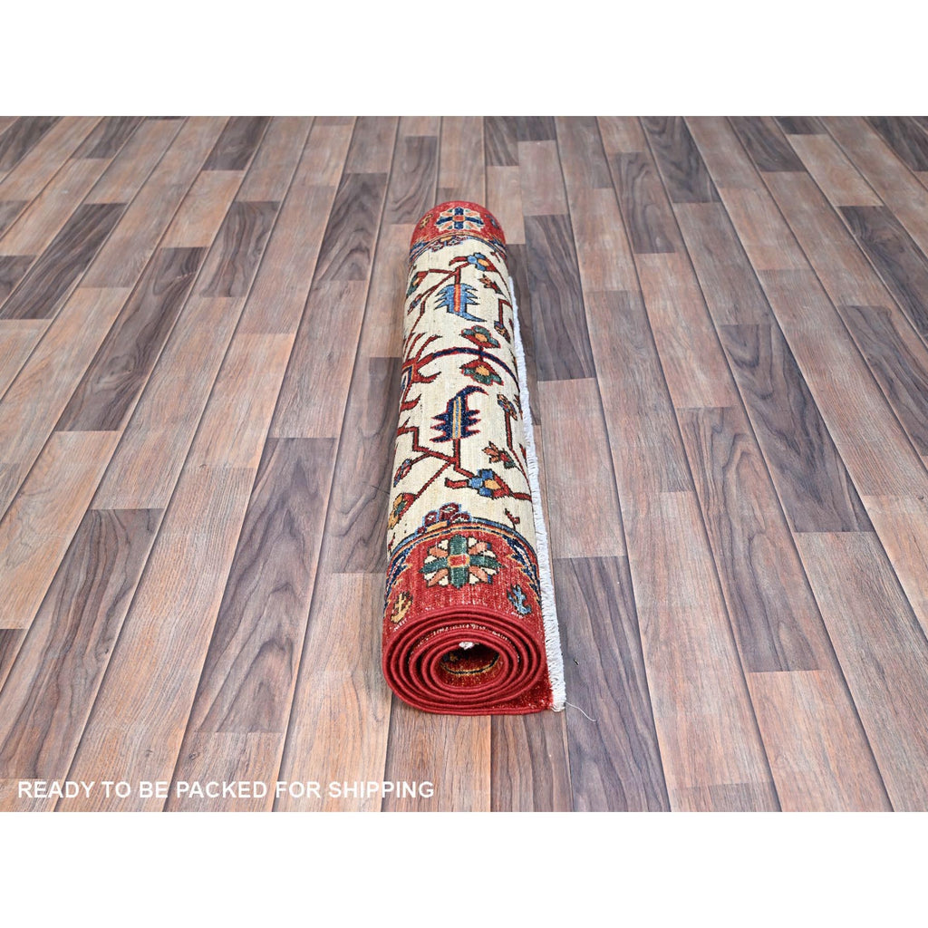 3'2"x6'1" Tuscan Beige With Carmine Red Border, Luxurious Wool, Hand Knotted, Natural Dyes, Aryana Collection, Oriental Rug FWR519642
