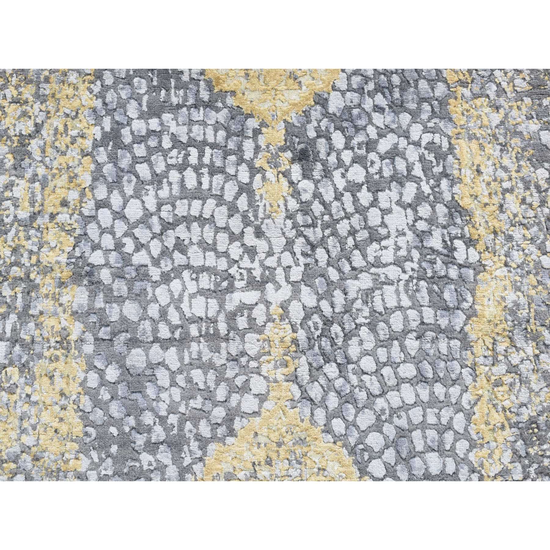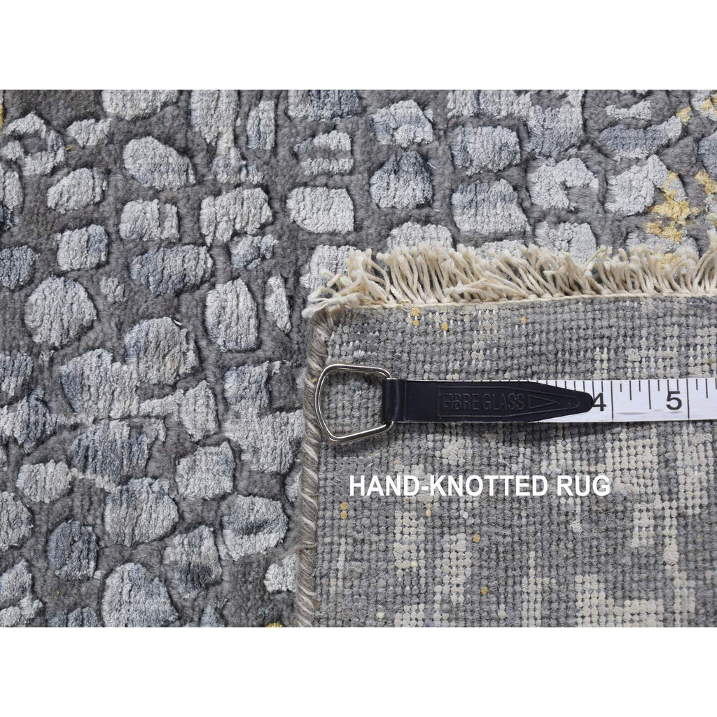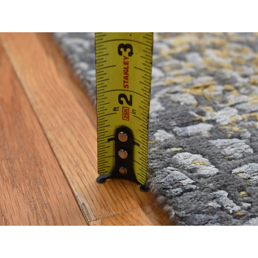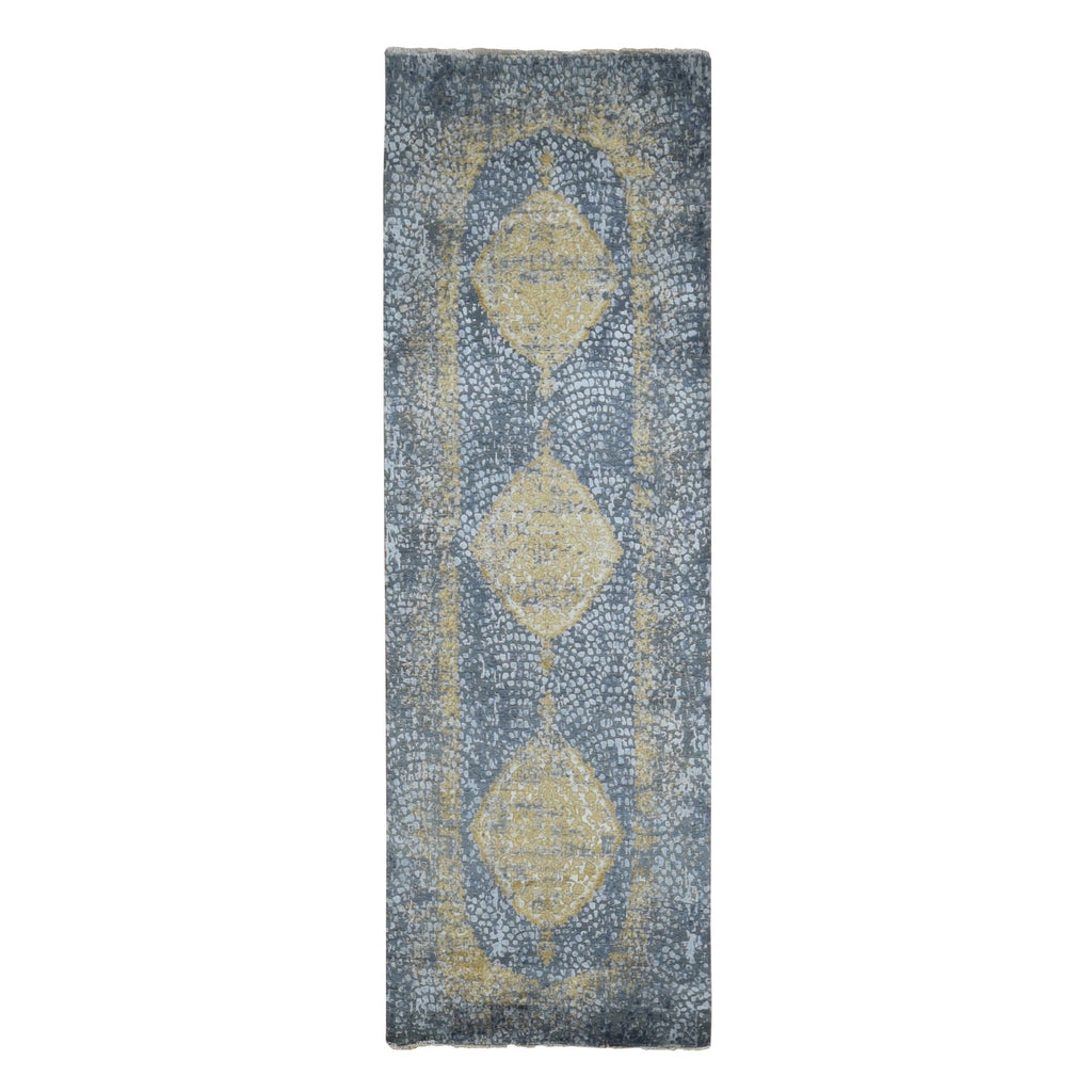 3'2"x9'10" Nevada Gray With Gold, Persian Medallion Design, Wool And Pure Silk, Wide Runner, Hand Knotted, Oriental Rug FWR526140