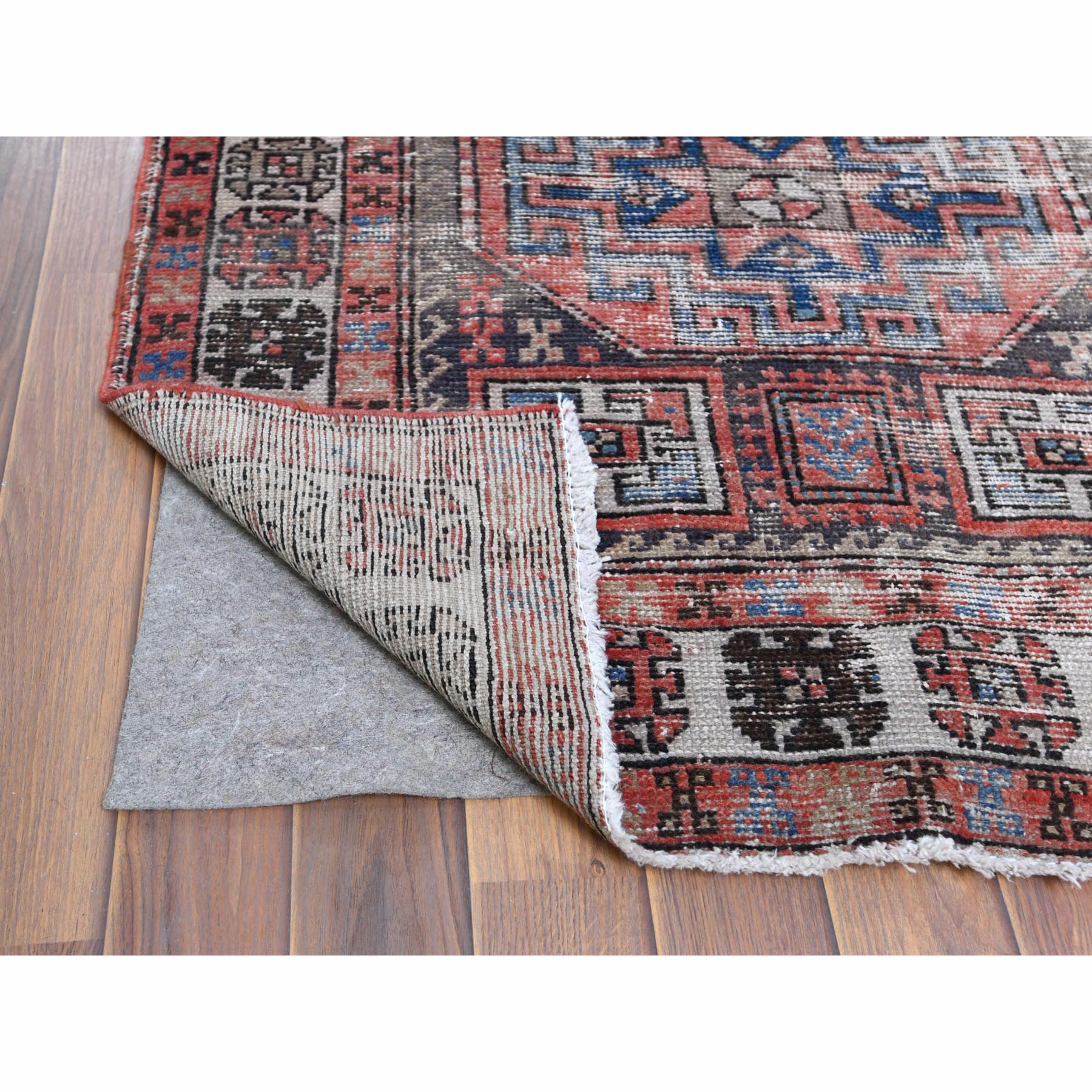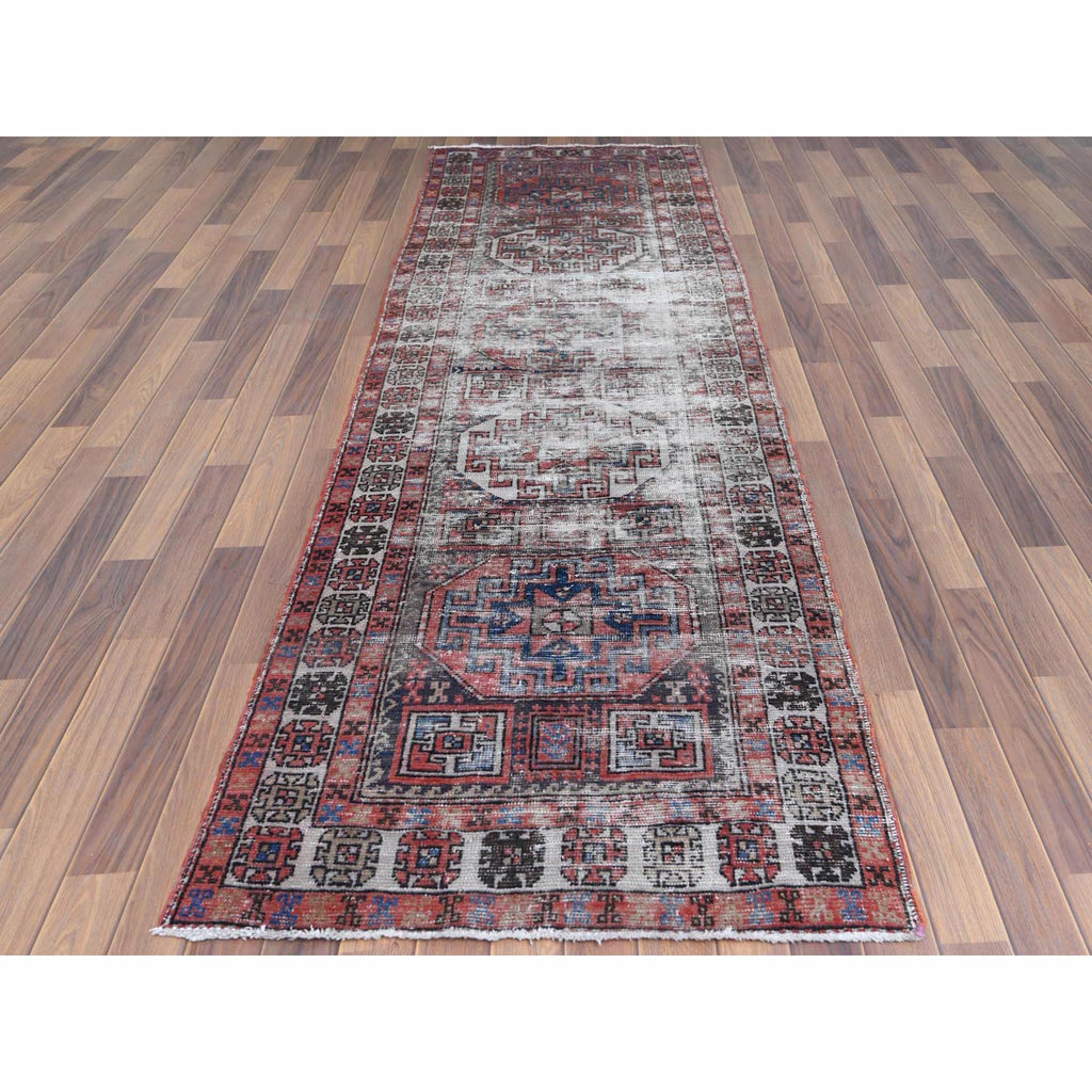 3'2"x9'5" Vintage Red Northwest Persian Distressed Pure Wool Hand Knotted Clean Oriental Runner Rug FWR365676