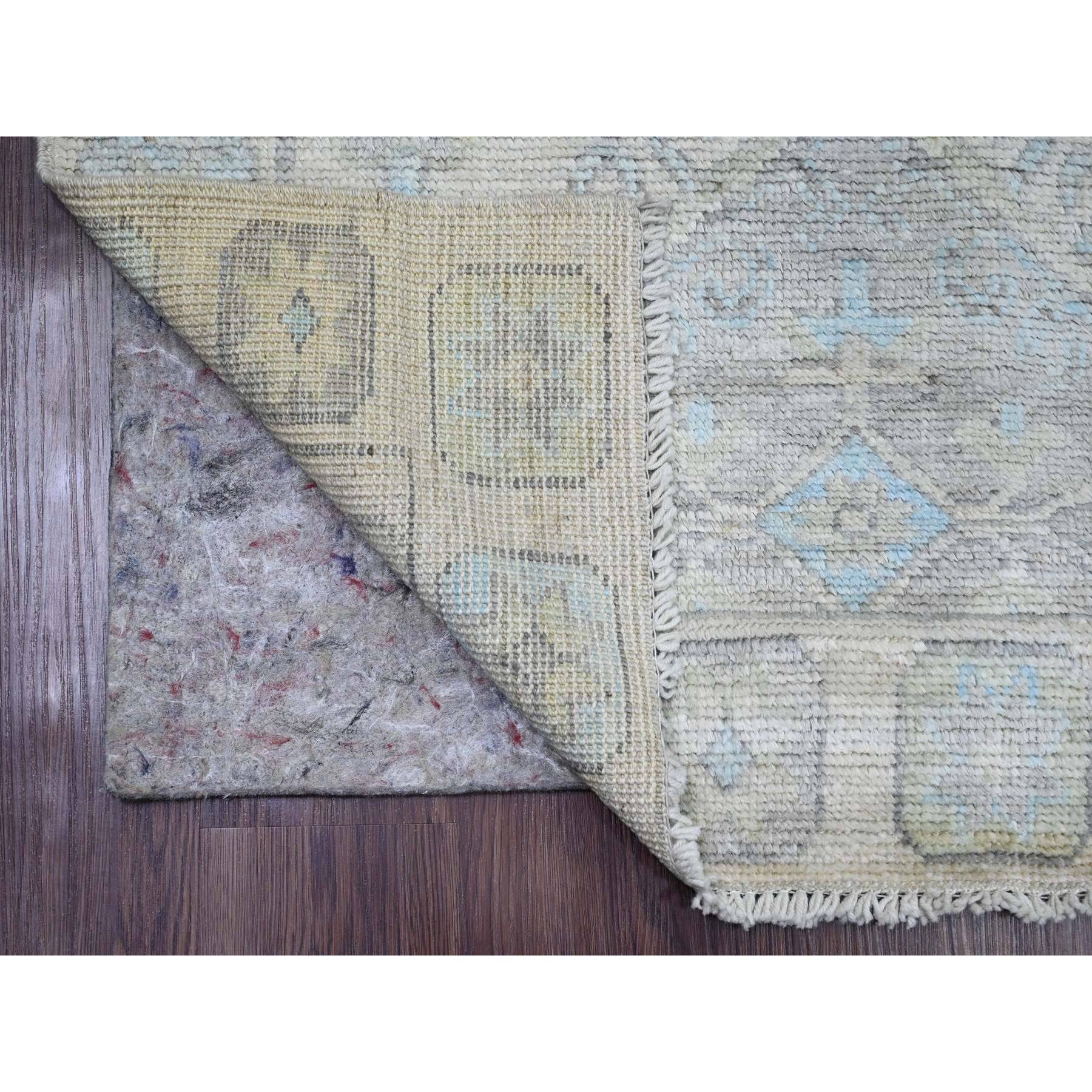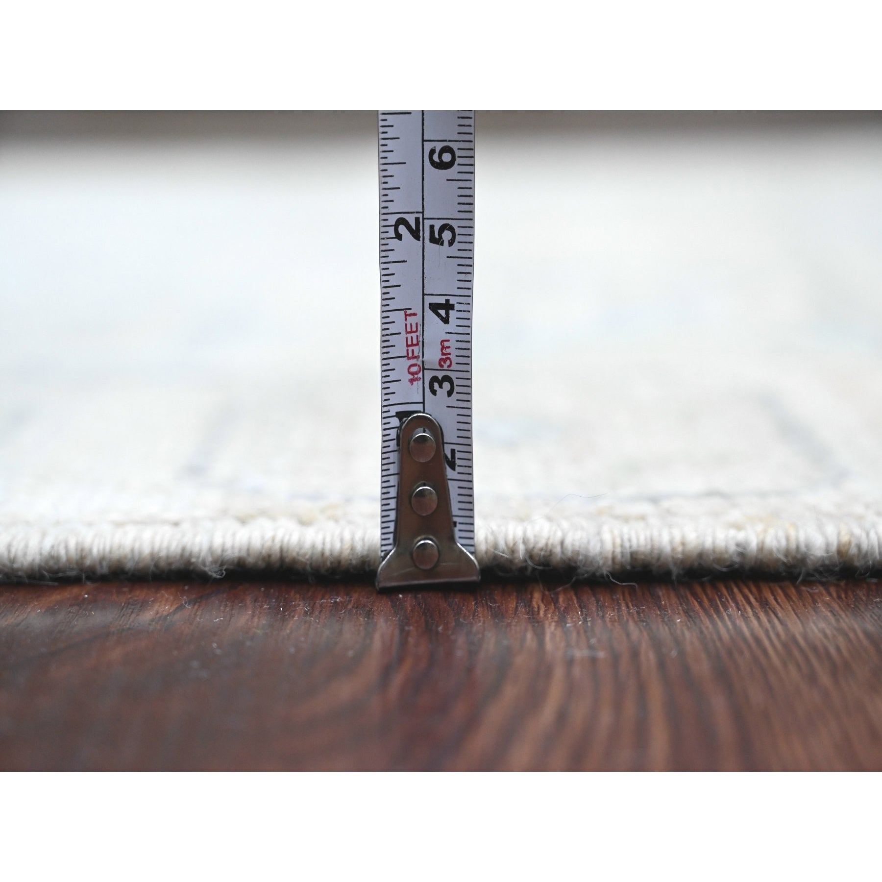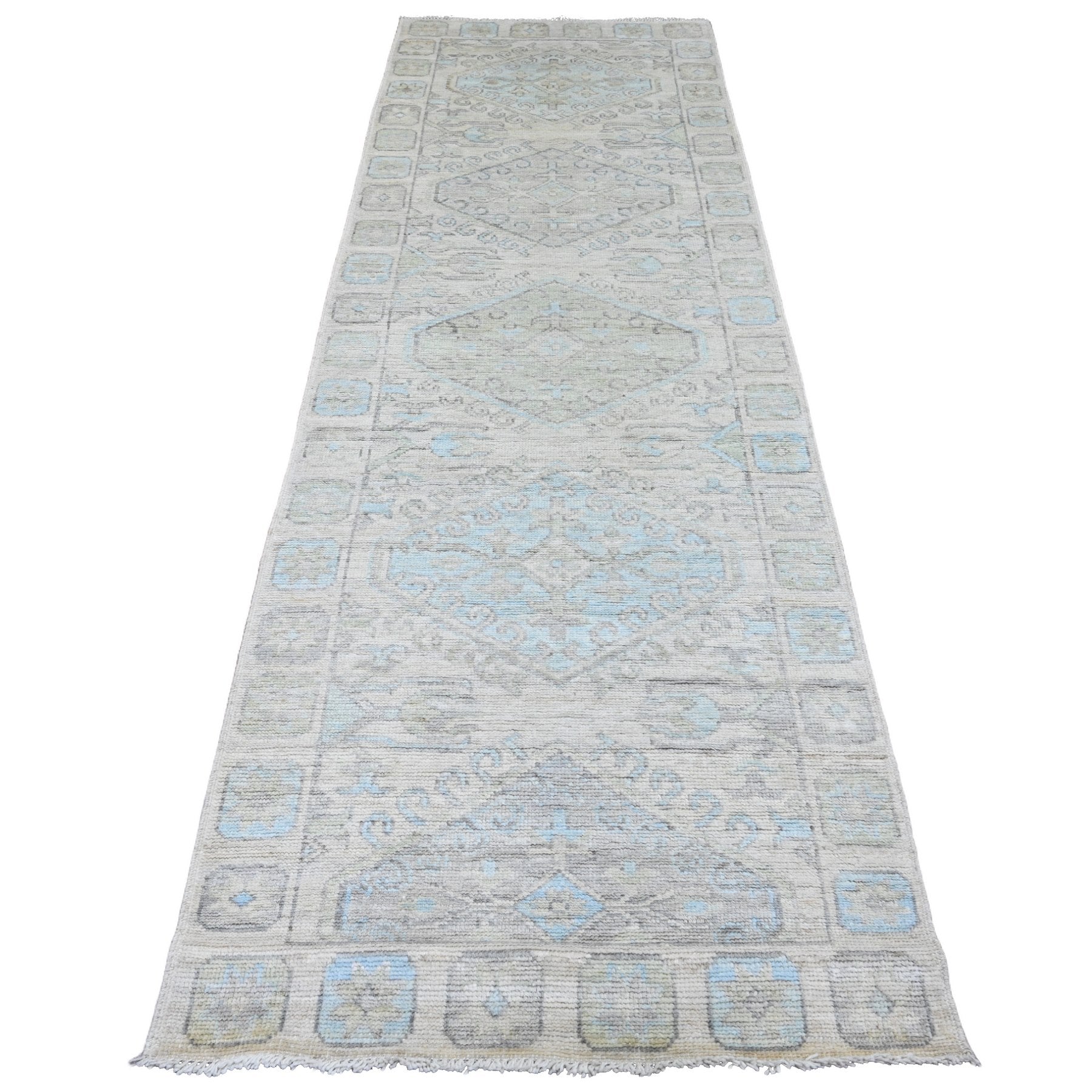 3'3"x10' Chiffon White, Washed Out Anatolian Village Inspired With Geometric Medallion Design, High Mountain Wool, Hand Knotted, Runner, Oriental Rug FWR125160