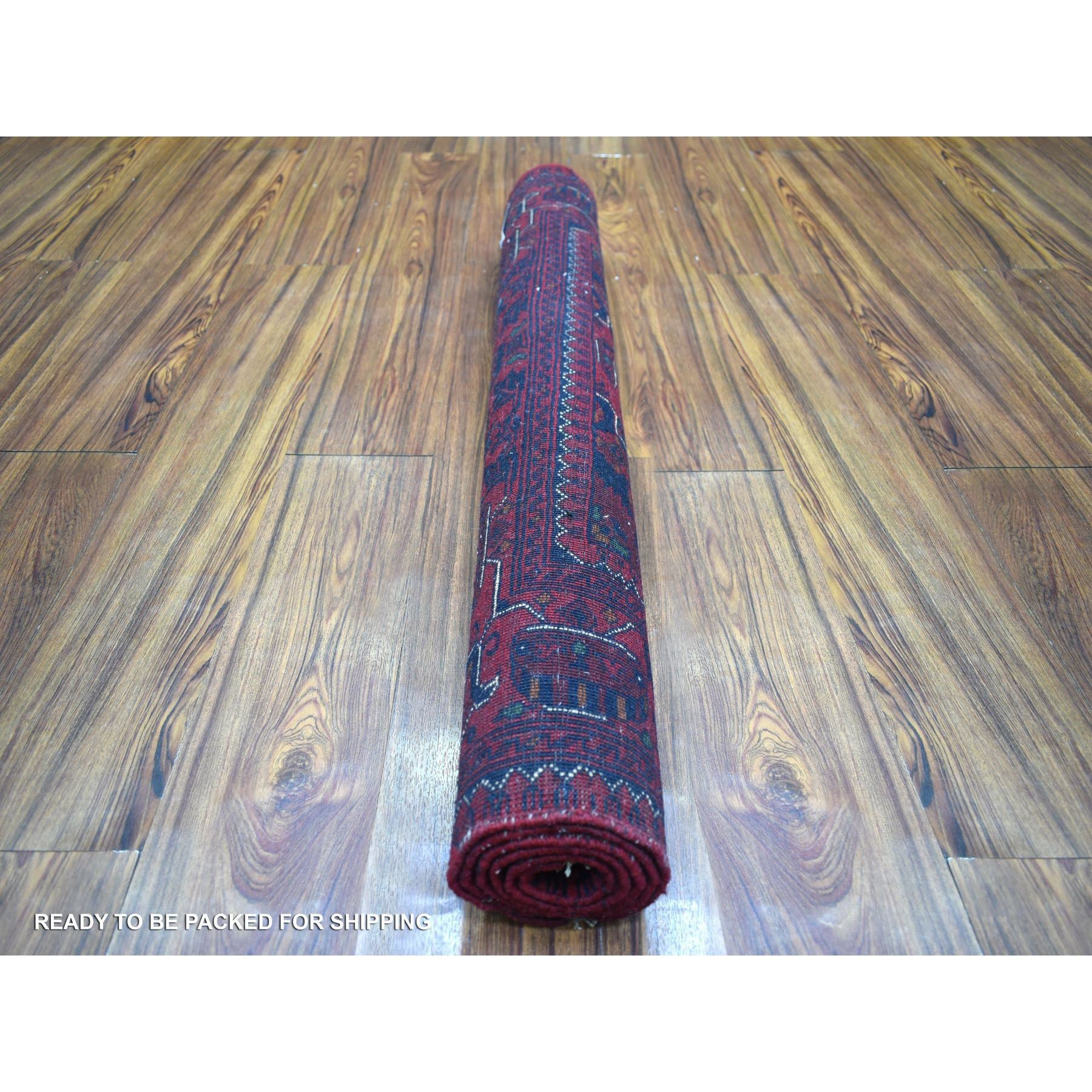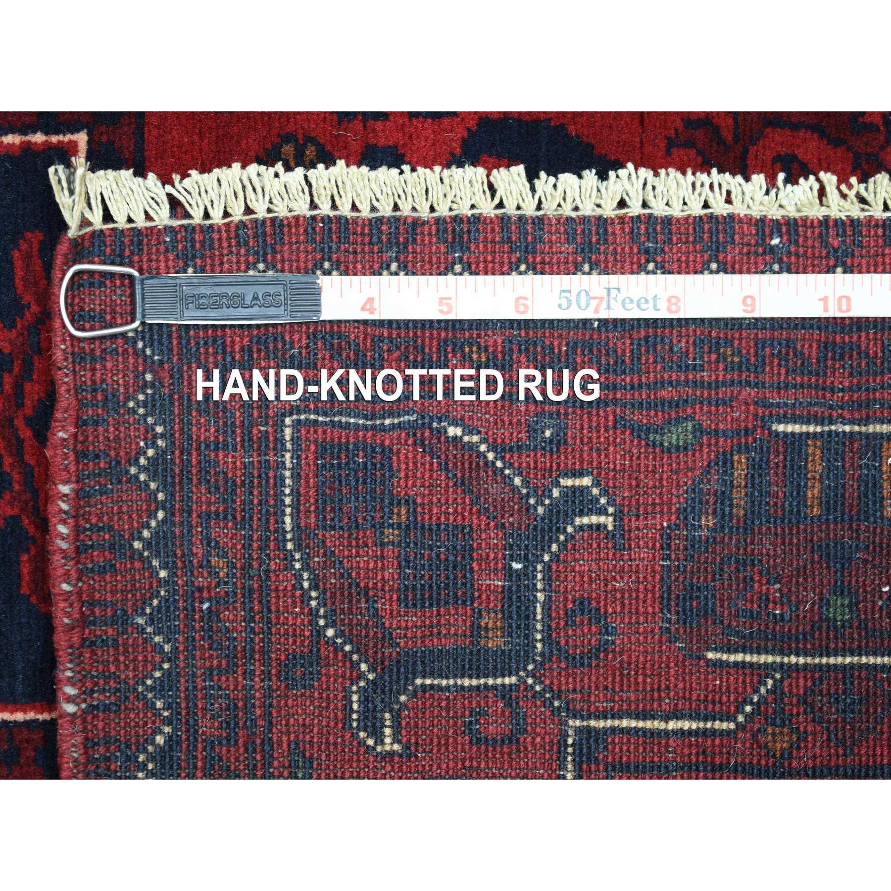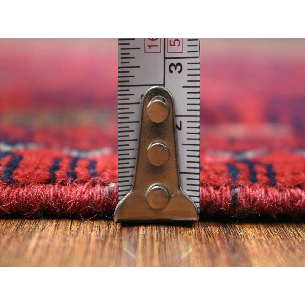 3'3"x4'10" Deep And Saturated Red With Heriz Design Hand Knotted Afghan Khamyab, Velvety Wool Oriental Rug FWR432228