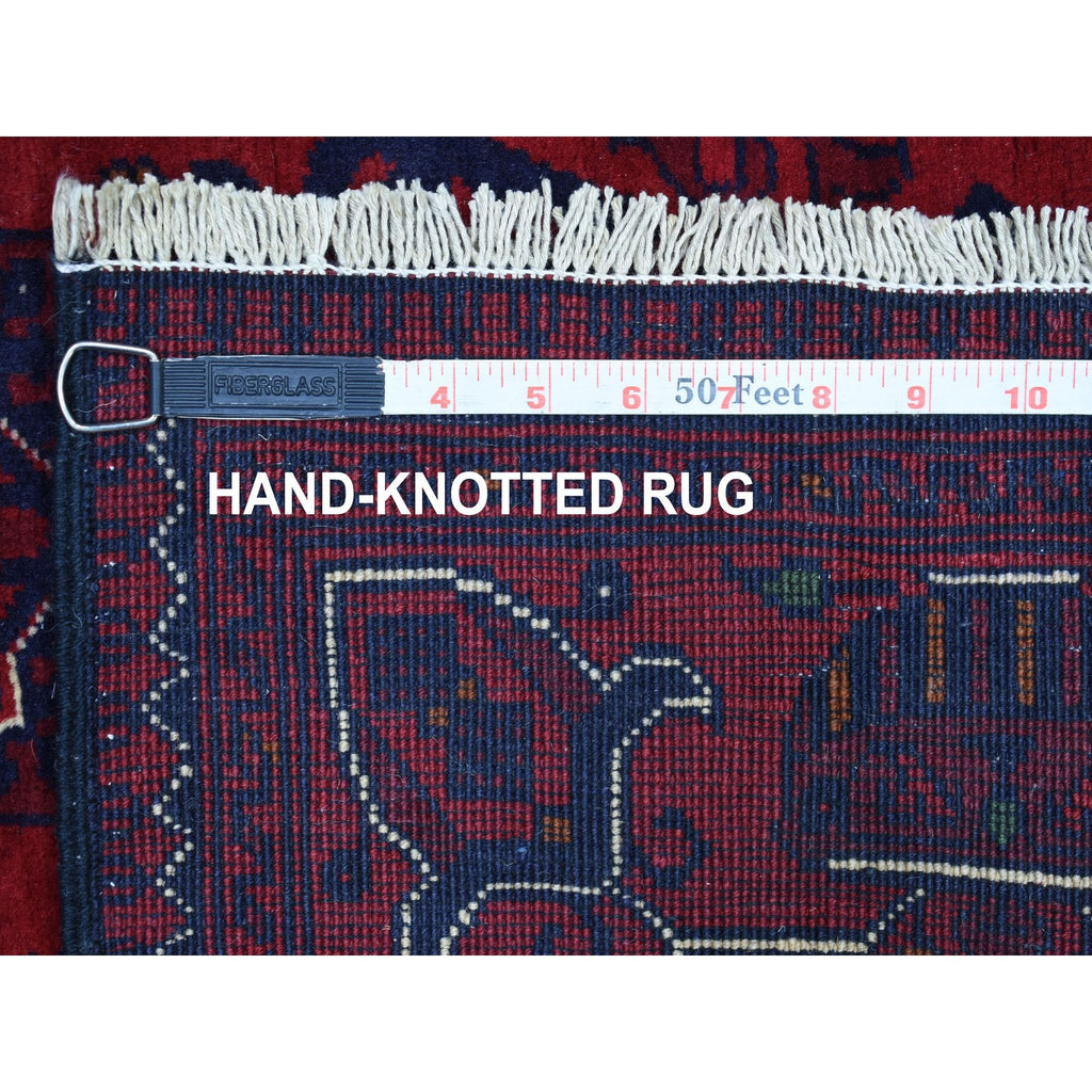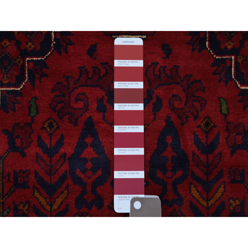 3'3"x4'10" Hand Knotted Afghan Khamyab Geometric Medallion Design Denser Weave With Shiny Wool Deep And Saturated Red Oriental Rug FWR406902
