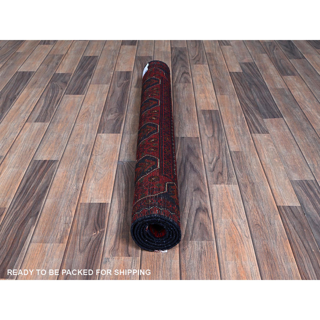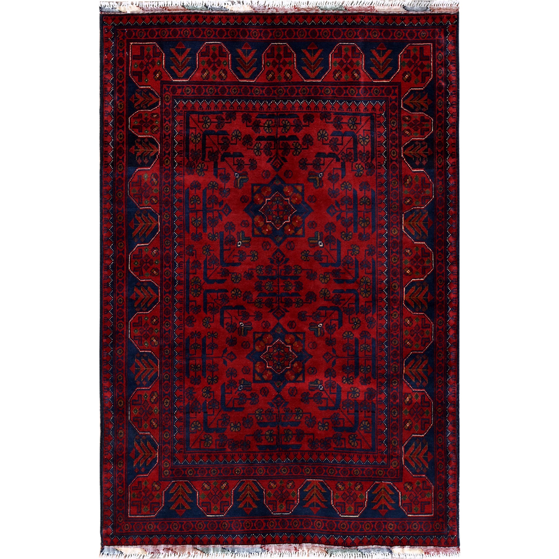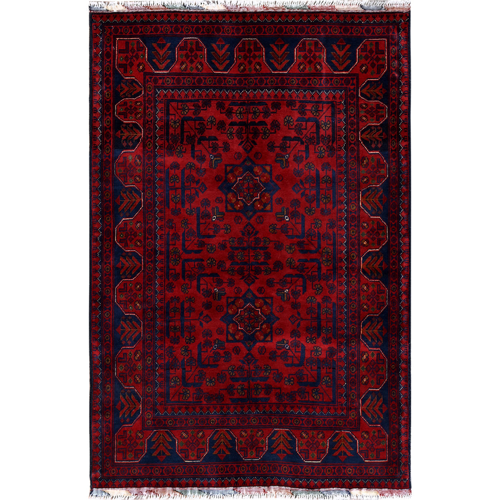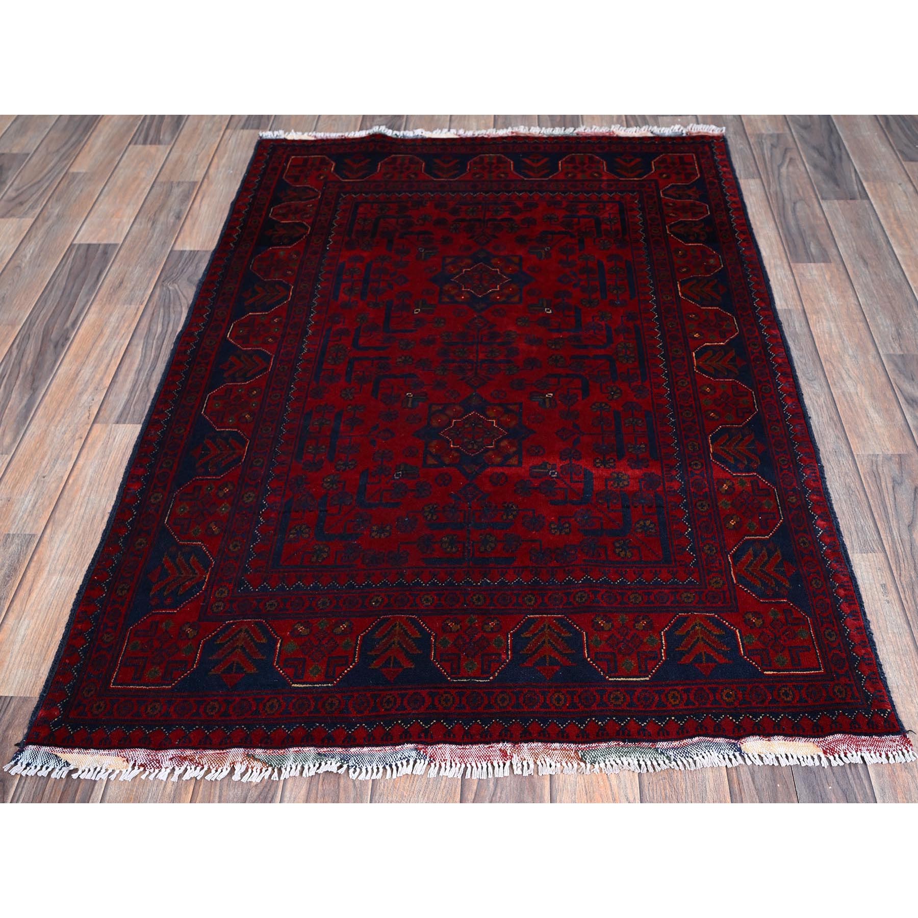 3'3"x4'10" Ruby Red, Afghan Khamyab With Geometric Pattern, Hand Knotted, Soft And Velvety Wool, Vegetable Dyes, Oriental Rug FWR4392