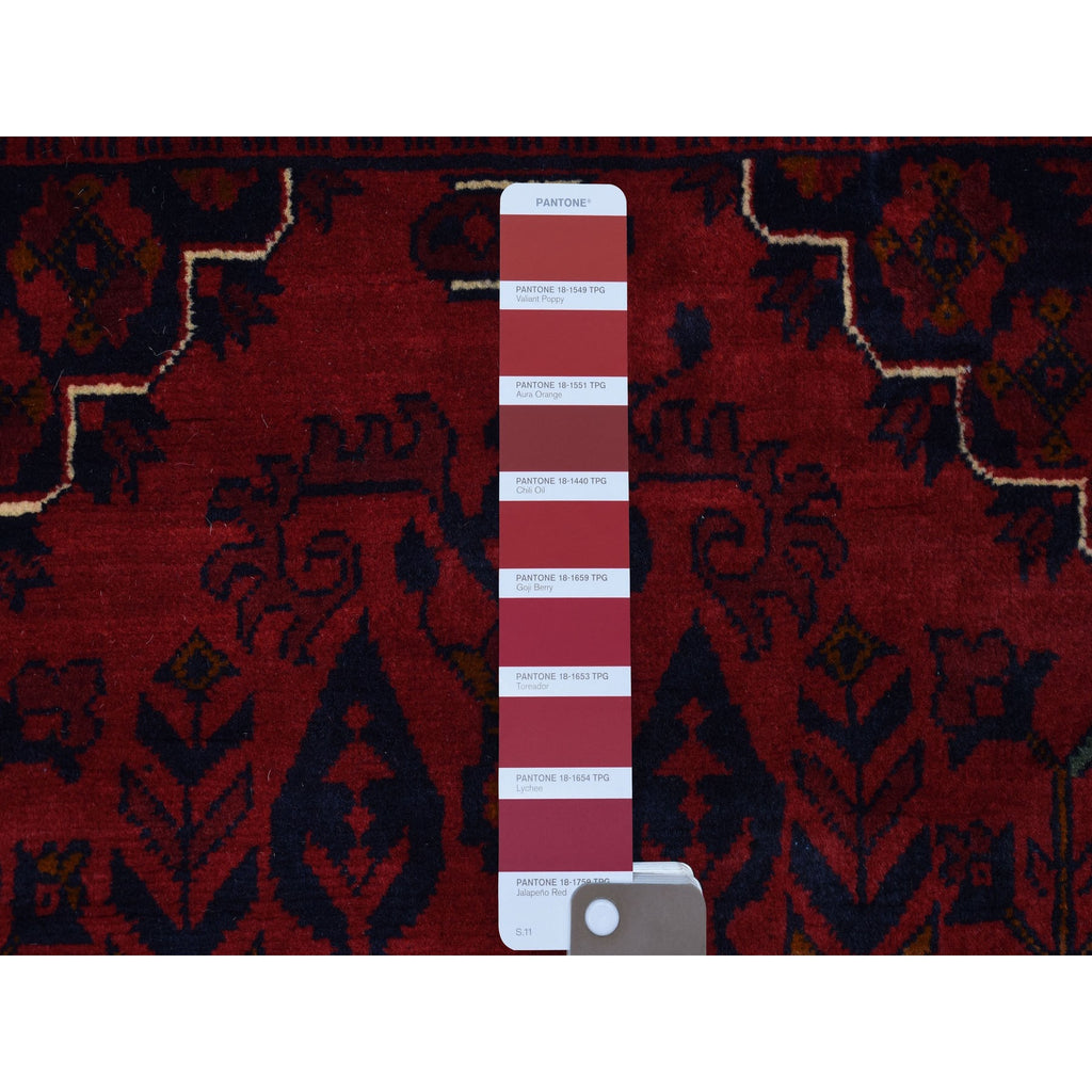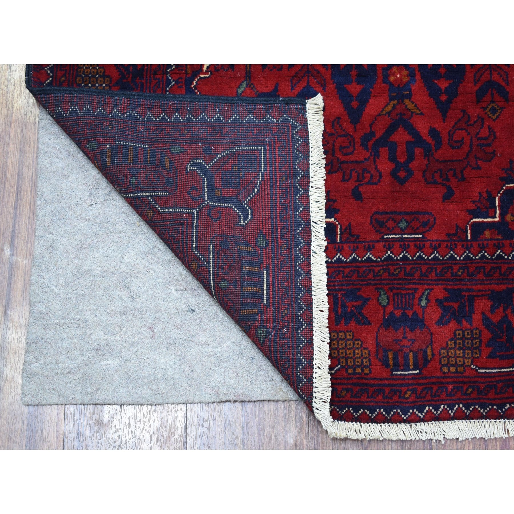 3'3"x4'8" Afghan Khamyab Denser Weave With Shiny Wool Hand Knotted Deep And Saturated Red Geometric Medallion Design Oriental Rug FWR406896