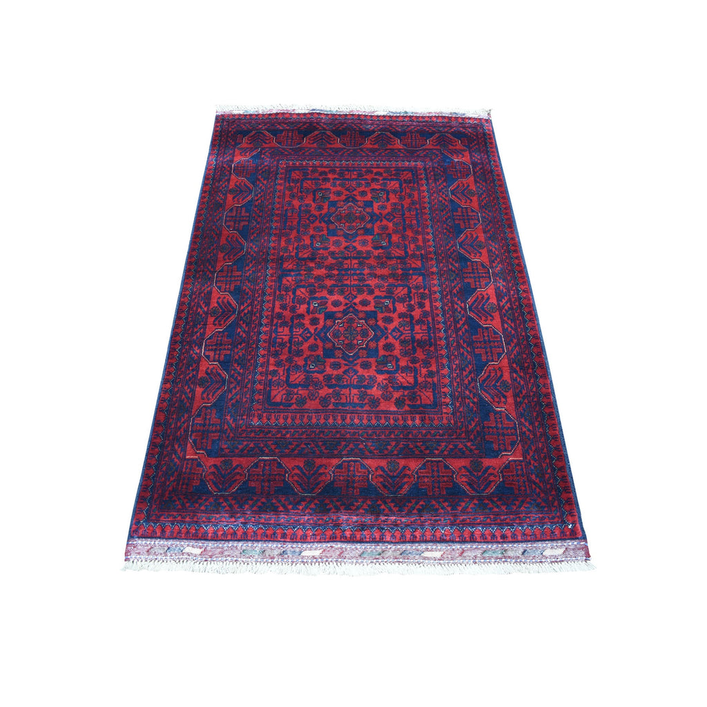 3'3"x5' Red Afghan Khamyab Natural Dyes Denser Weave With Shiny Wool Hand Knotted Oriental Rug FWR332190