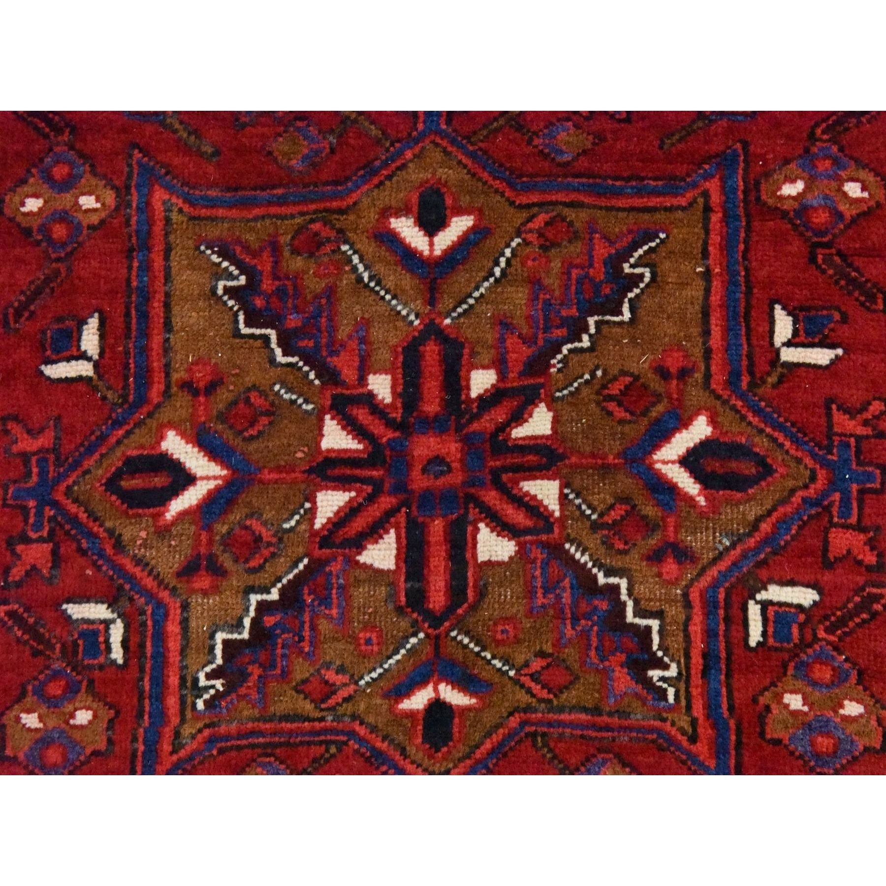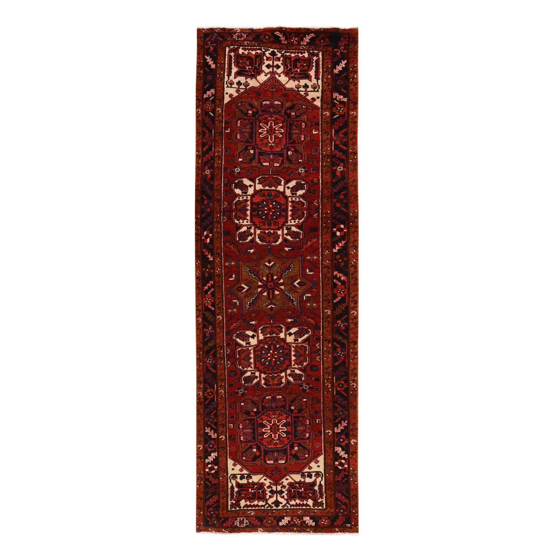3'4"x10'9" Savvy Red, Semi Antique Persian Heriz, Geometric Medallion Design, Clean, Full And Soft Even Pile, 100% Wool, Hand Knotted, Oriental, Wide Runner Rug FWR470730