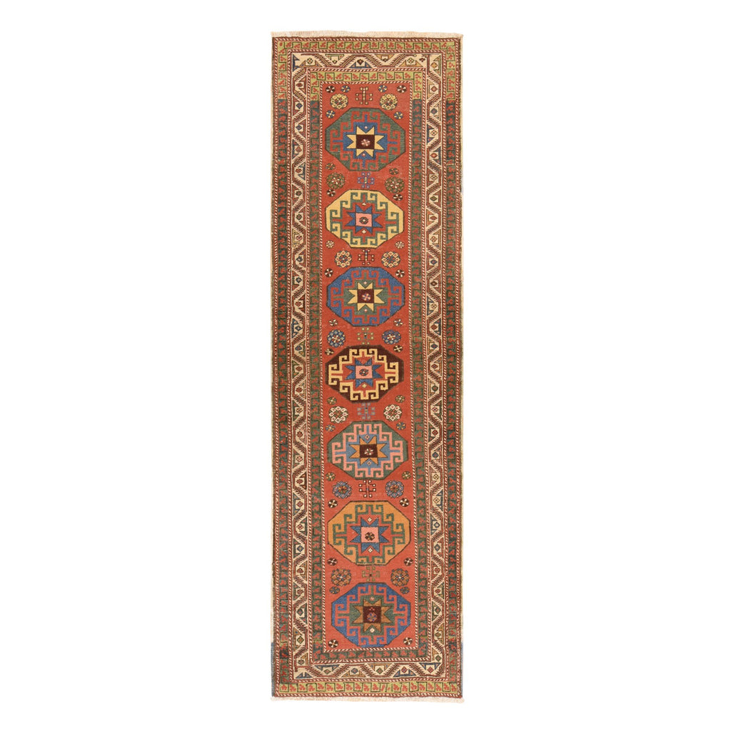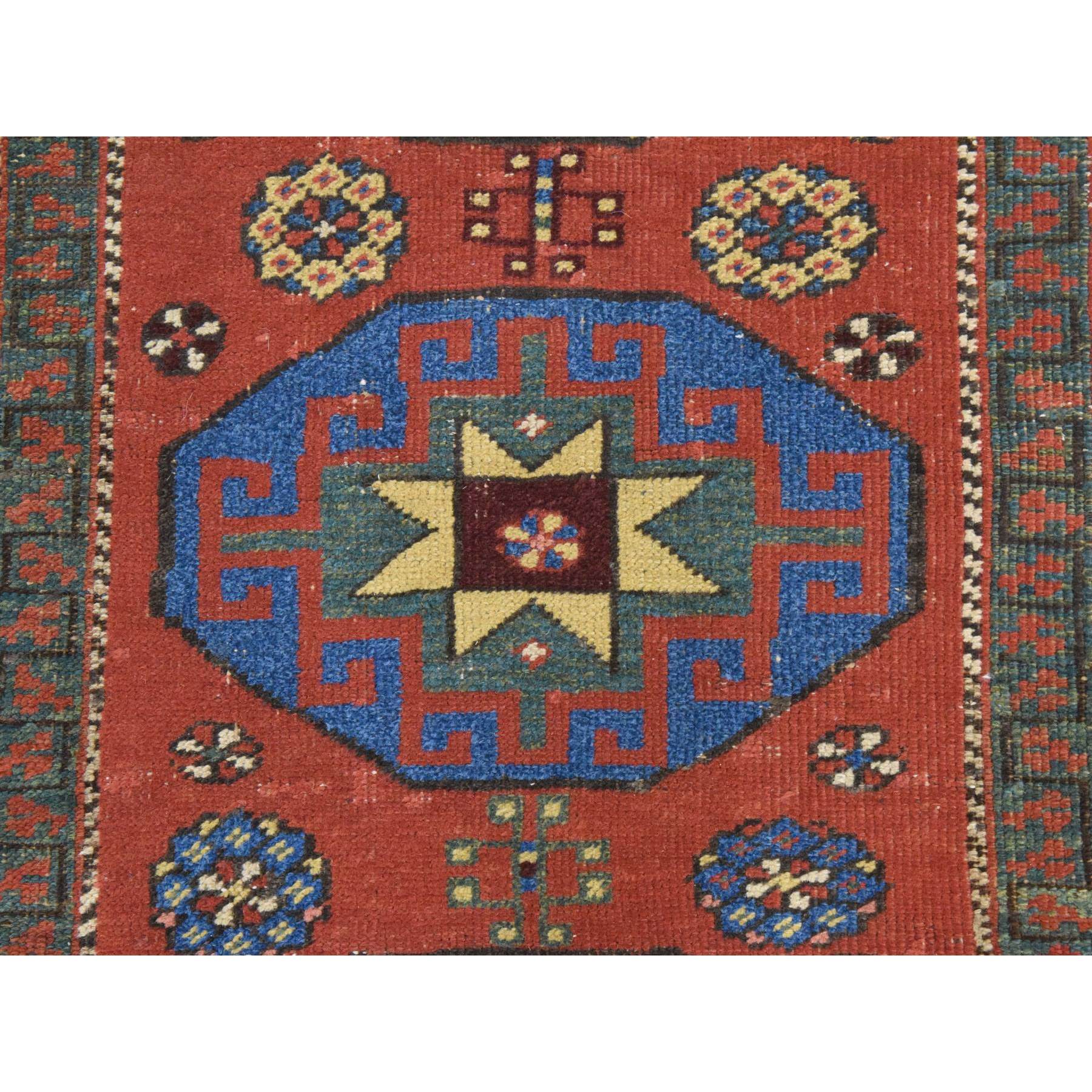 3'4"x11'2" Prismatic Red, Antique Caucasian Kazak, Even Wear, Clean, Pliable And Soft Low Pile, 100% Wool, Hand Knotted, Runner, Oriental Rug FWR471012
