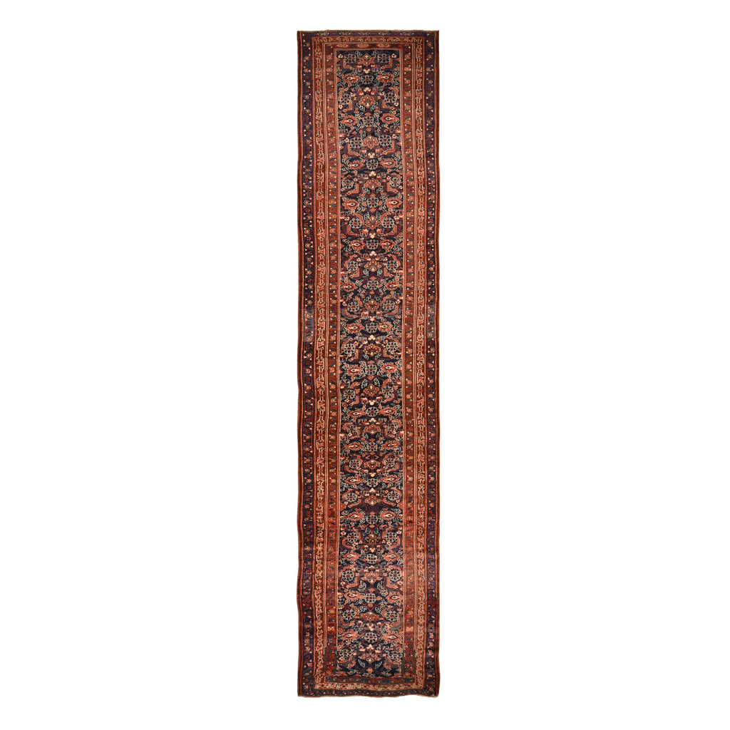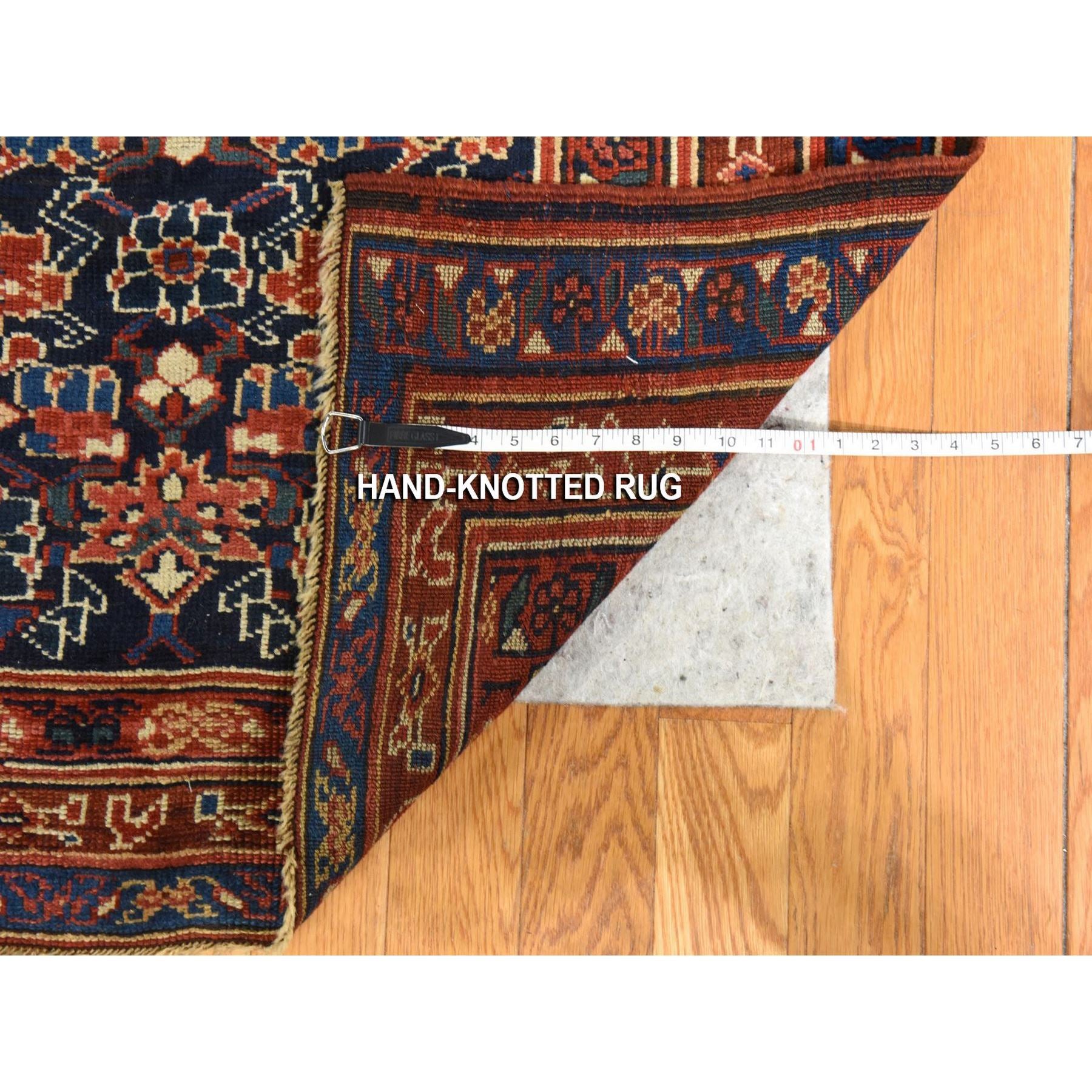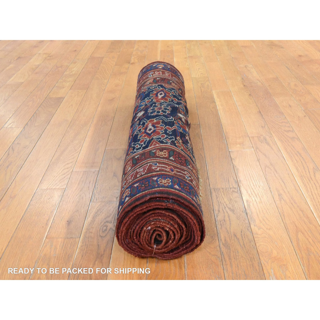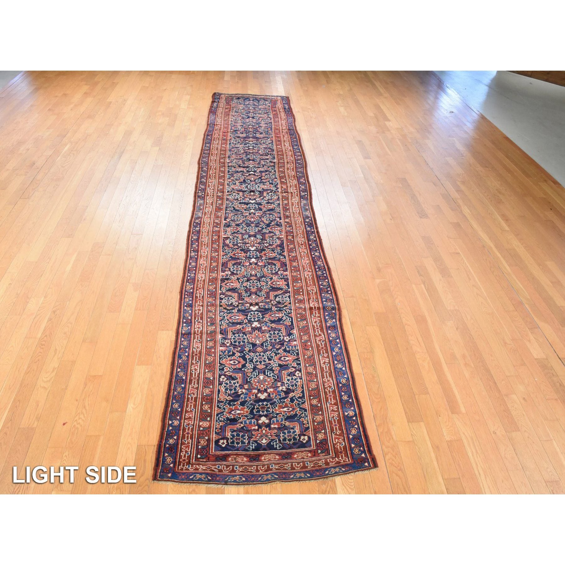 3'4"x16'3" Midnight Blue, Antique Kurdish Bijar Persian Rug, Good Condition, Clean And Soft, Geometric Fish Mahi Herat Design, 100% Wool, Hand Knotted, Full Pile, Wide Runner, Oriental FWR470976