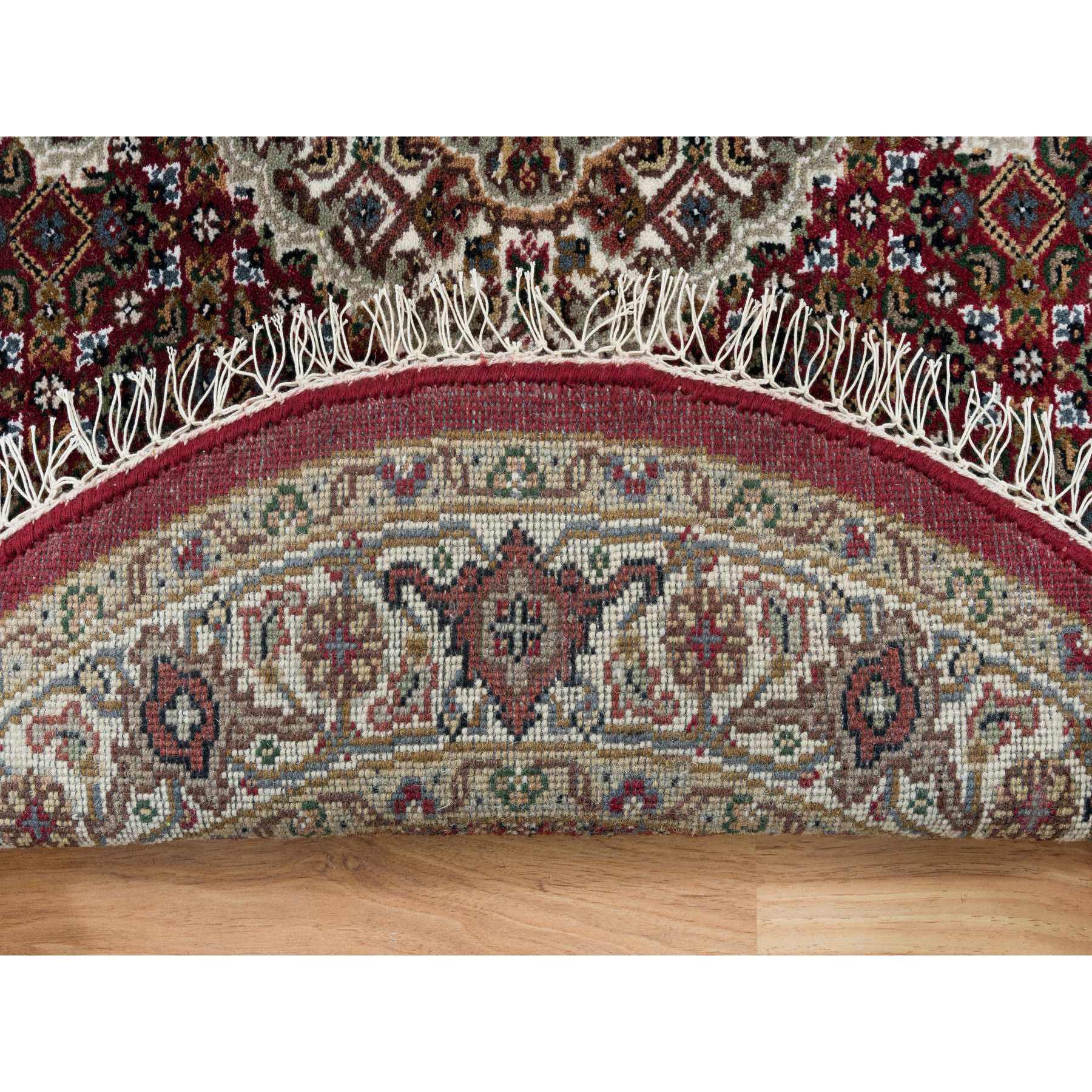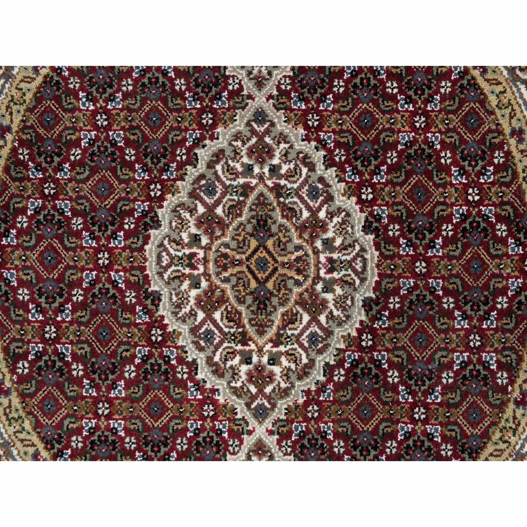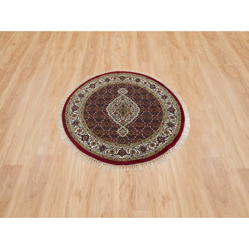 3'4"x3'4" Mahogany Red, Tabriz Mahi With Fish Medallion Design, Pure Wool, 175 Kpsi, Hand Knotted, Round, Oriental Rug FWR390558