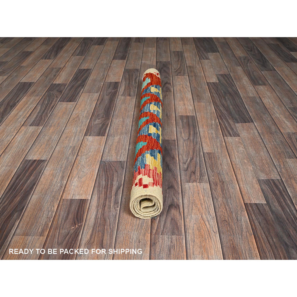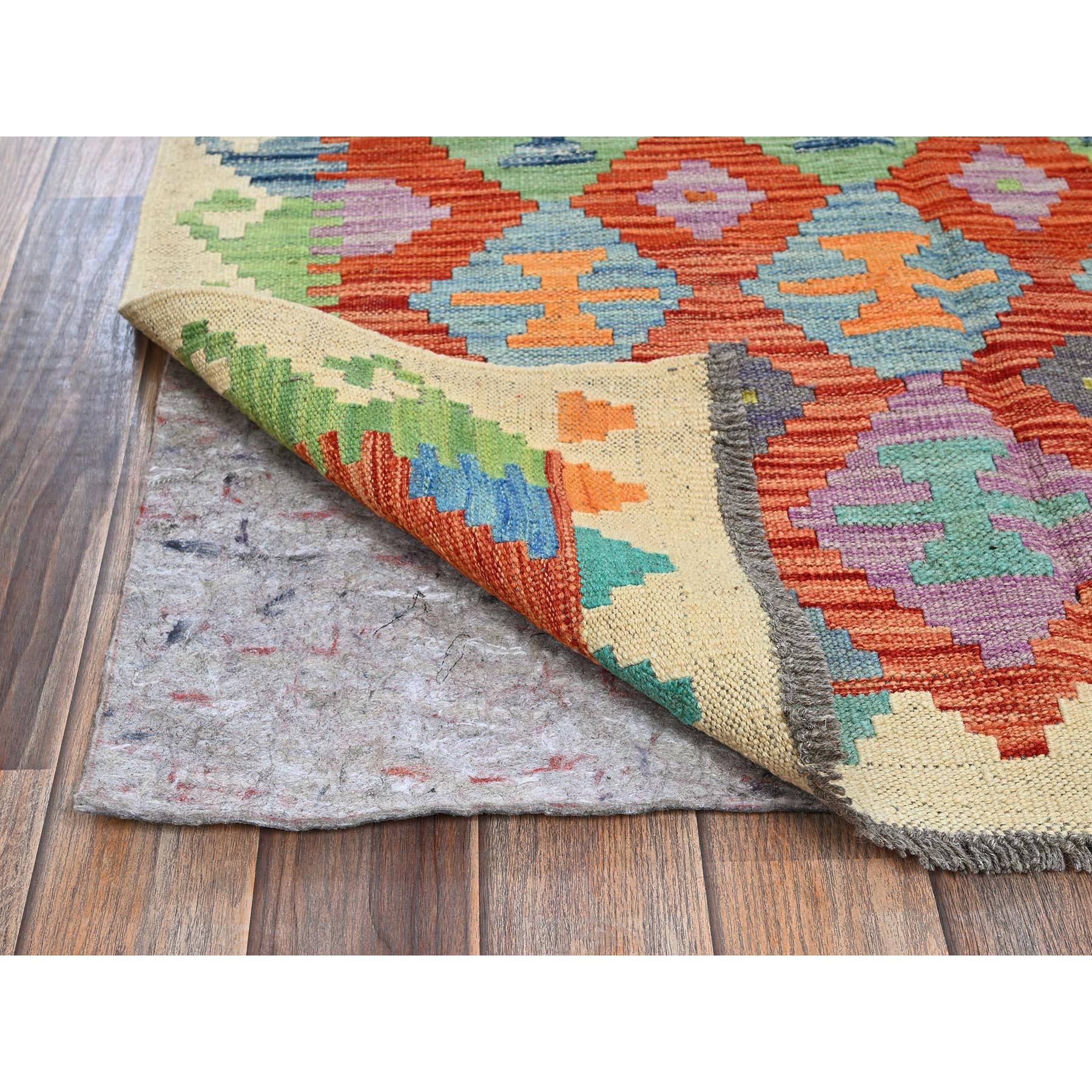 3'4"x4'9" Flame Orange, Afghan Kilim With Colorful Geometric Pattern, Vegetable Dyes, Pure Wool, Hand Woven, Flat Weave, Reversible, Oriental Rug FWR7134