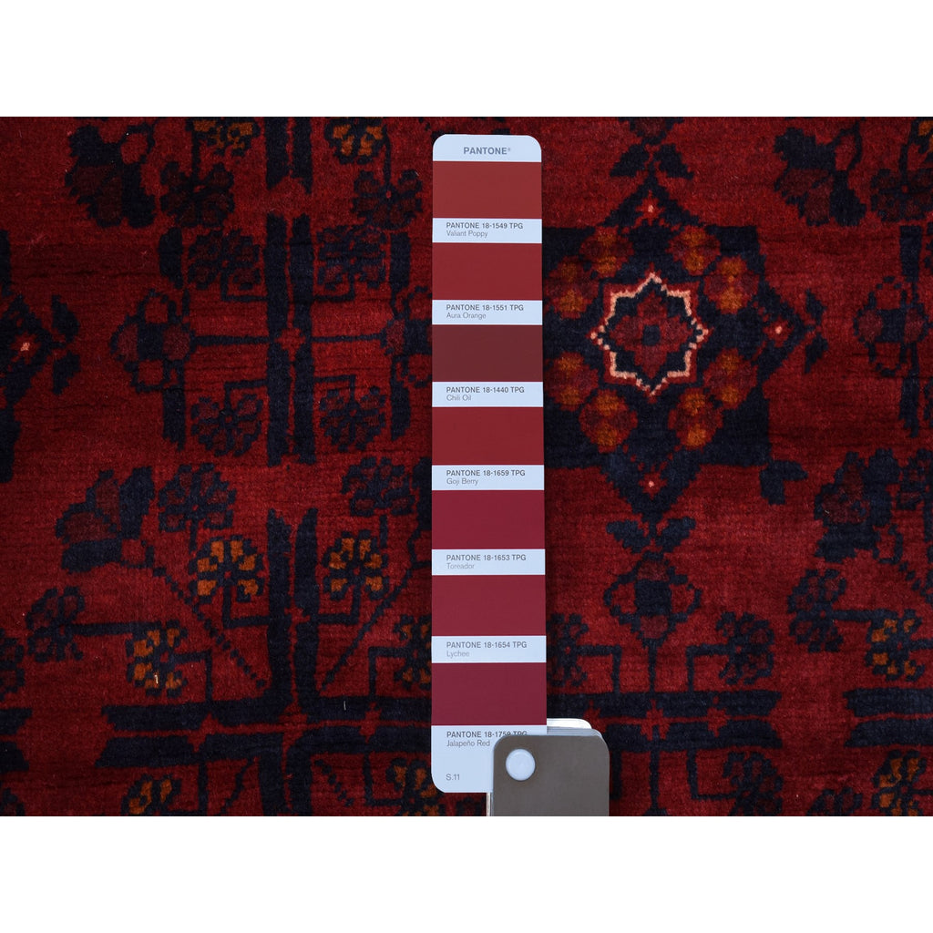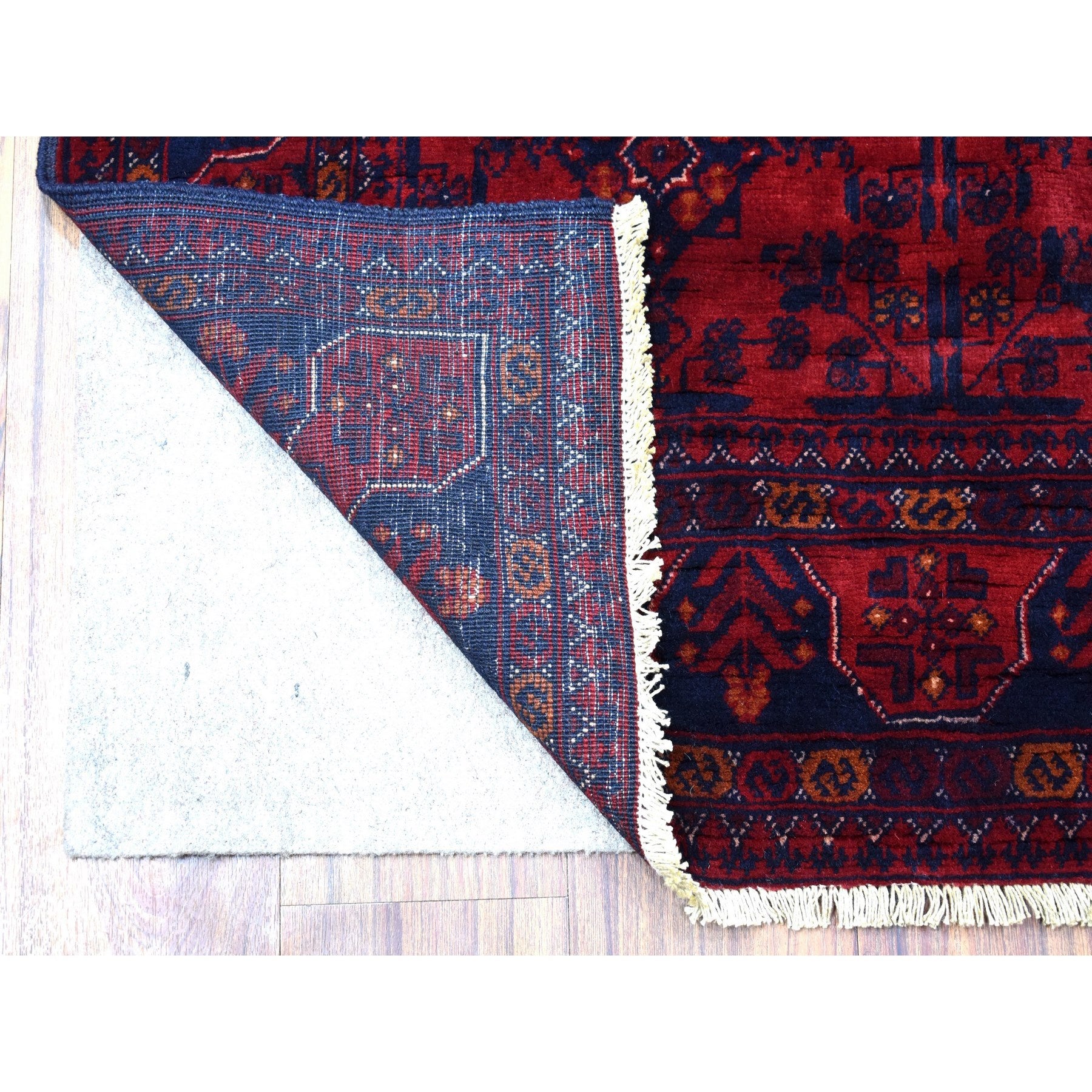 3'4"x5' Afghan Khamyab With Geometric Medallions Design Hand Knotted Deep And Saturated Red Denser Weave With Shiny Wool Oriental Rug FWR408534