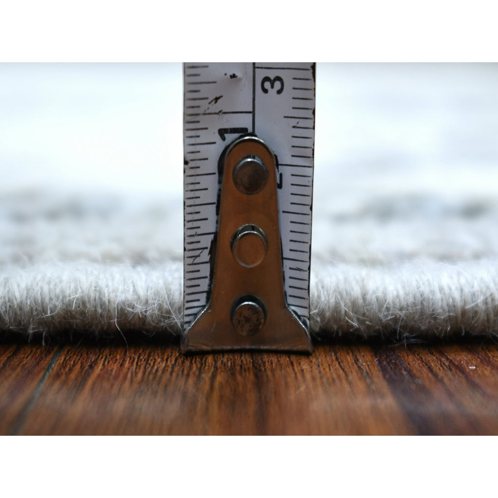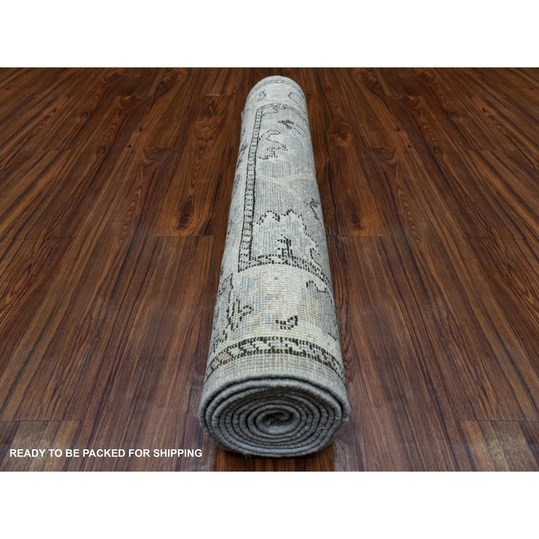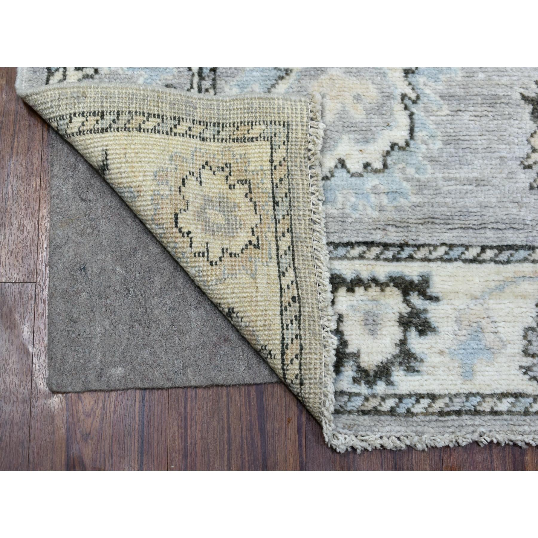 3'5"x10'2" Afghan Angora Oushak With Floral Motifs Extra Soft Wool Hand Knotted Gunmetal Gray Oriental Wide Runner Rug FWR413802