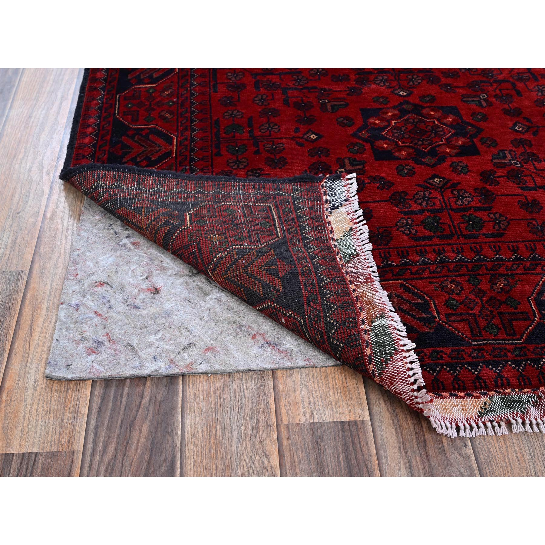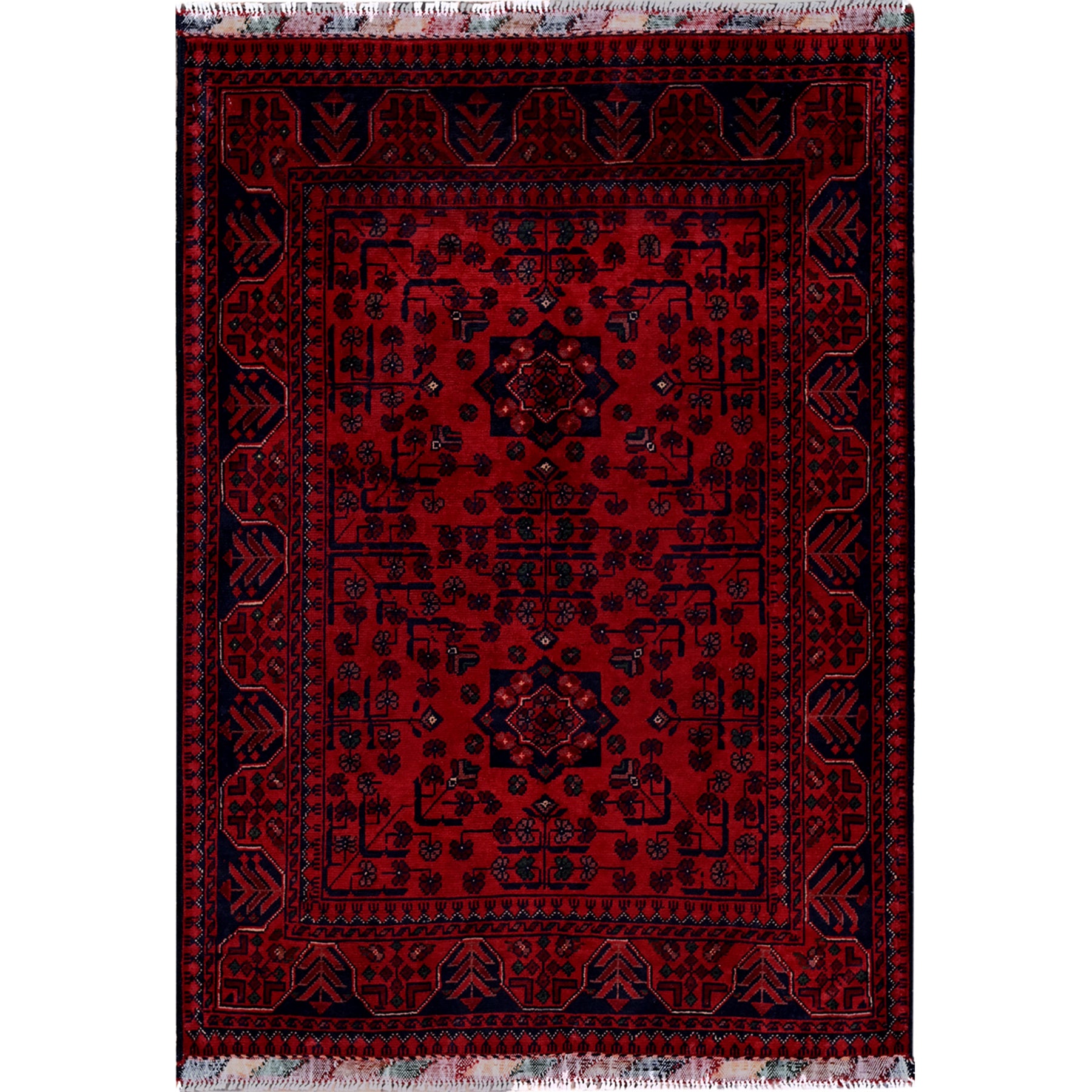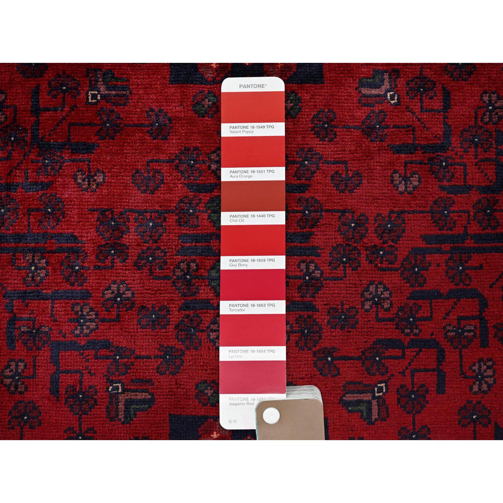3'5"x4'9" Berry Red, Afghan Khamyab With Geometric Pattern, Soft And Velvety Wool, Hand Knotted, Vegetable Dyes, Oriental Rug FWR4386