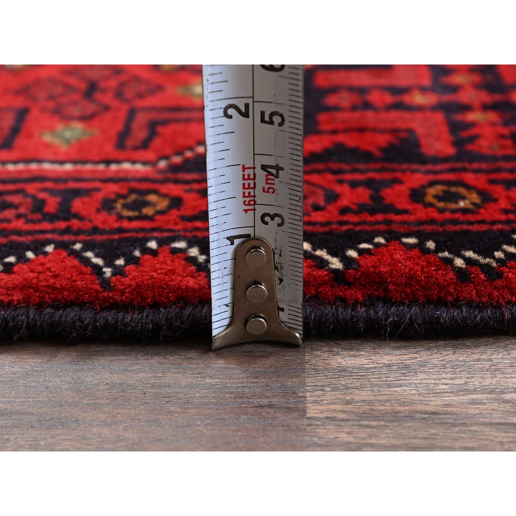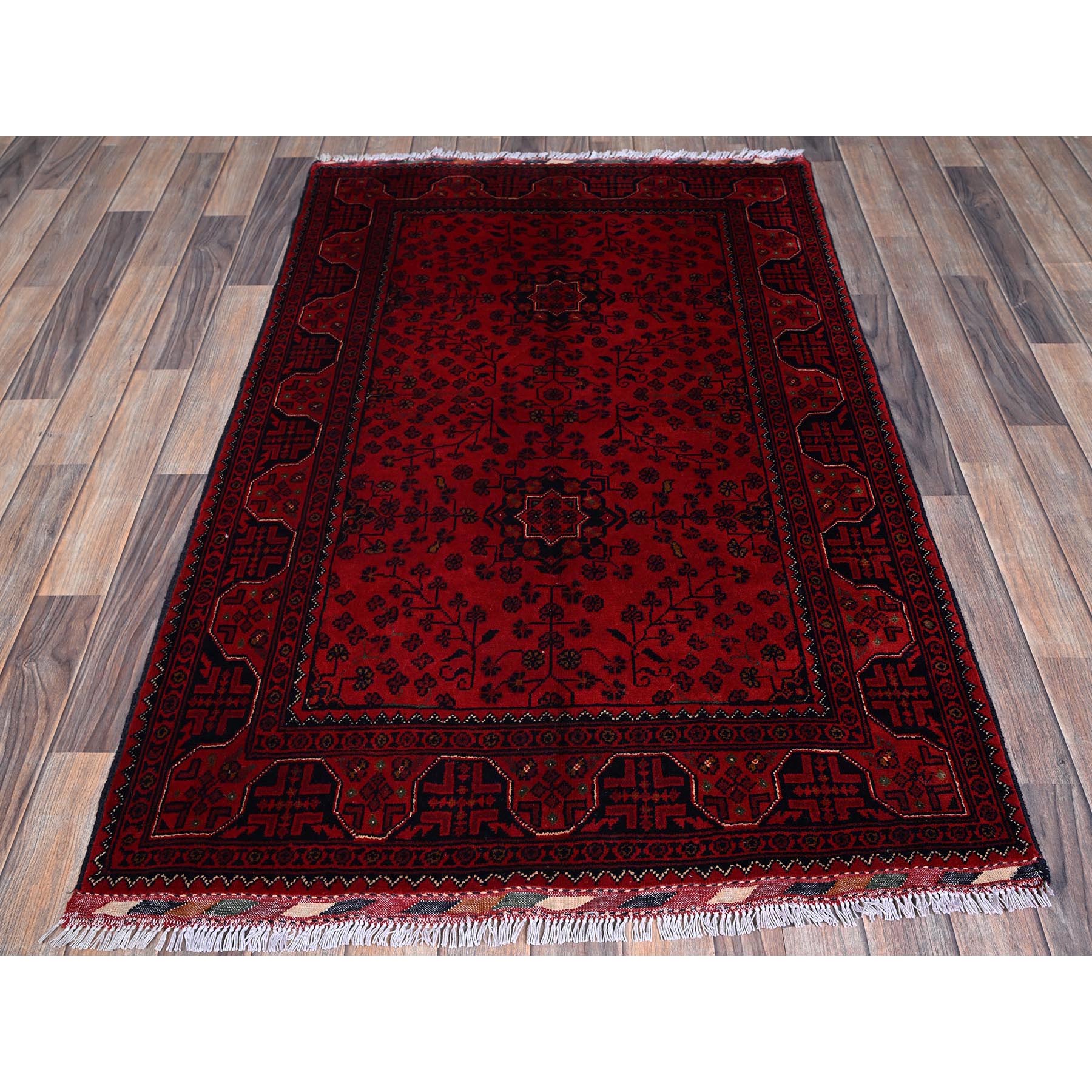 3'5"x5'2" Scarlet Red, Hand Knotted, Afghan Khamyab With Tribal Design, Vegetable Dyes, Soft And Shiny Wool, Oriental Rug FWR4050