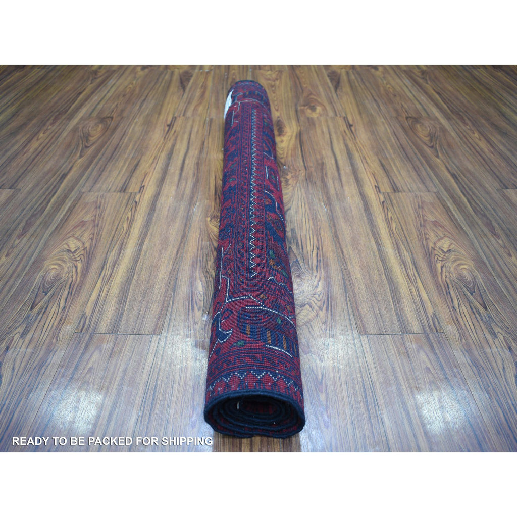 3'5"x5' Deep And Saturated Red Hand Knotted, Afghan Khamyab, Pure Wool Geometric Medallions Design Oriental Rug FWR432204