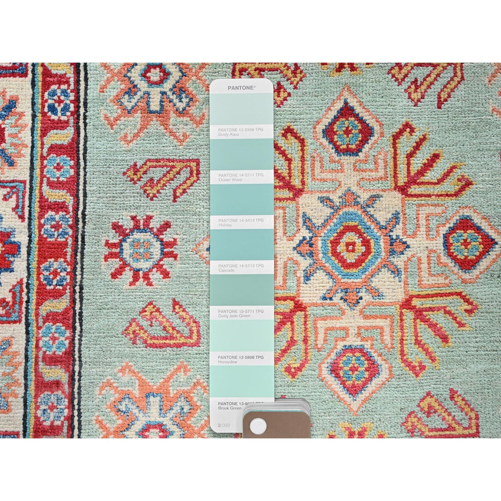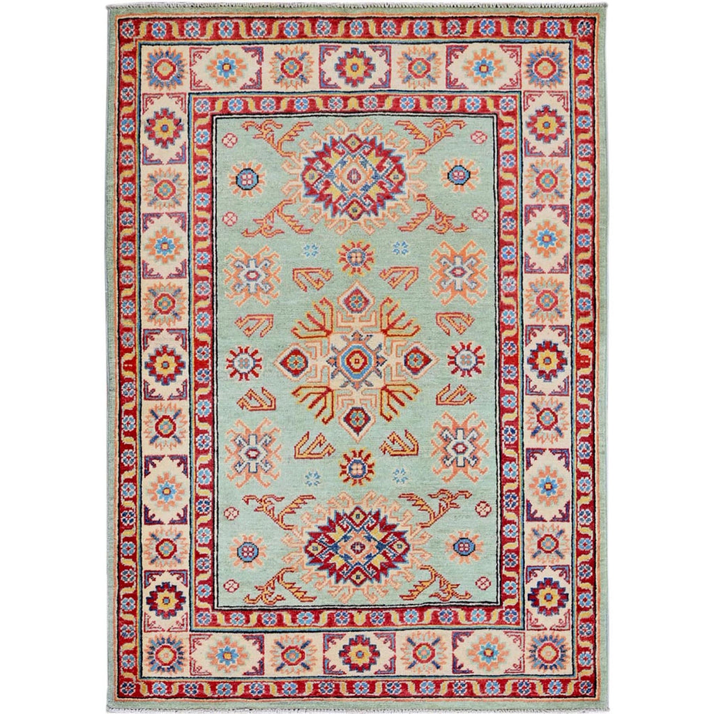 3'5"x5' Honeydew Green, Kazak With Tribal Design, Natural Dyes, Soft And Velvety Wool, Hand Knotted, Denser Weave, Oriental Rug FWR2478