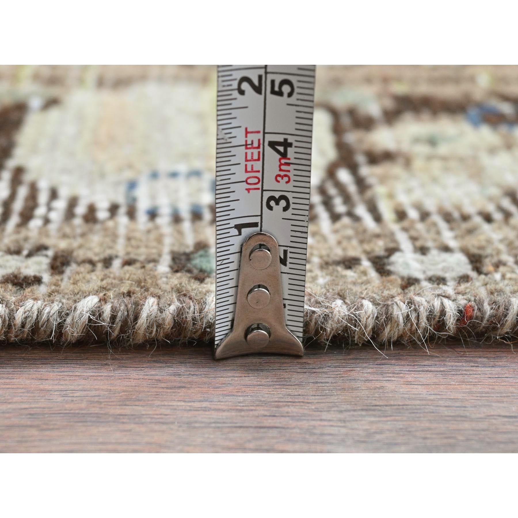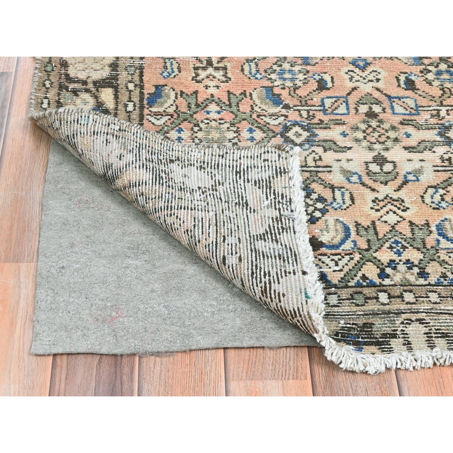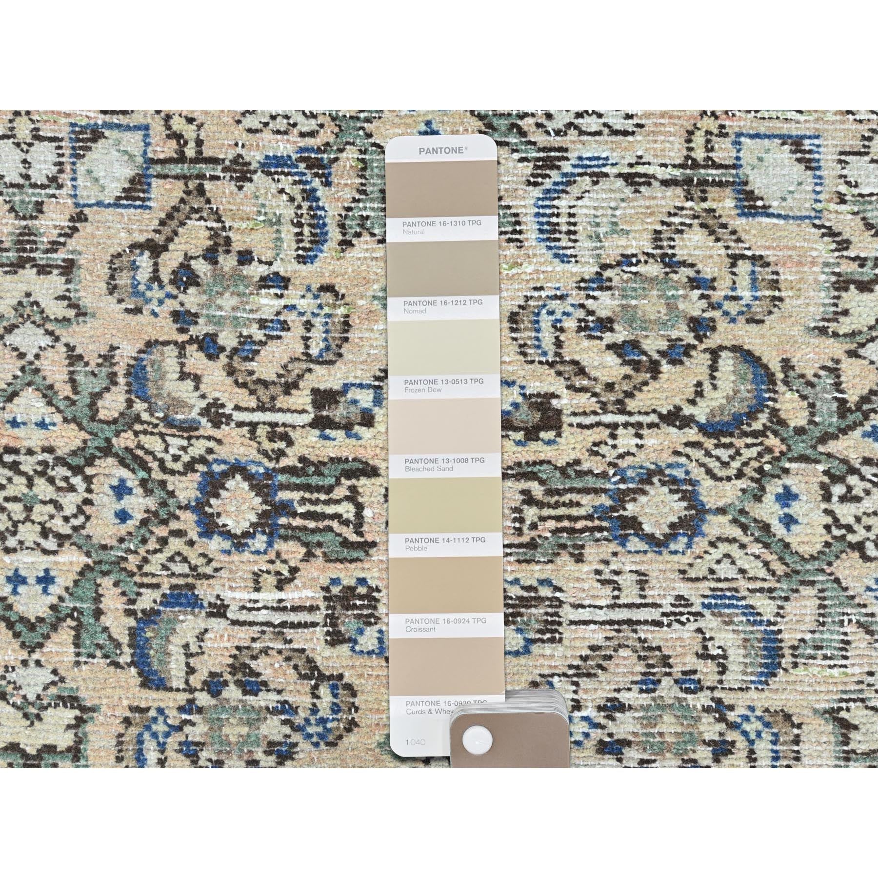 3'5"x9'2" Beige, Hand Knotted, Vintage Persian Hamadan With Fish Mahi Herat All Over Design, Clean, Distinct Abrash, Worn Down, Pure Wool Wide Runner Oriental Rug FWR491298