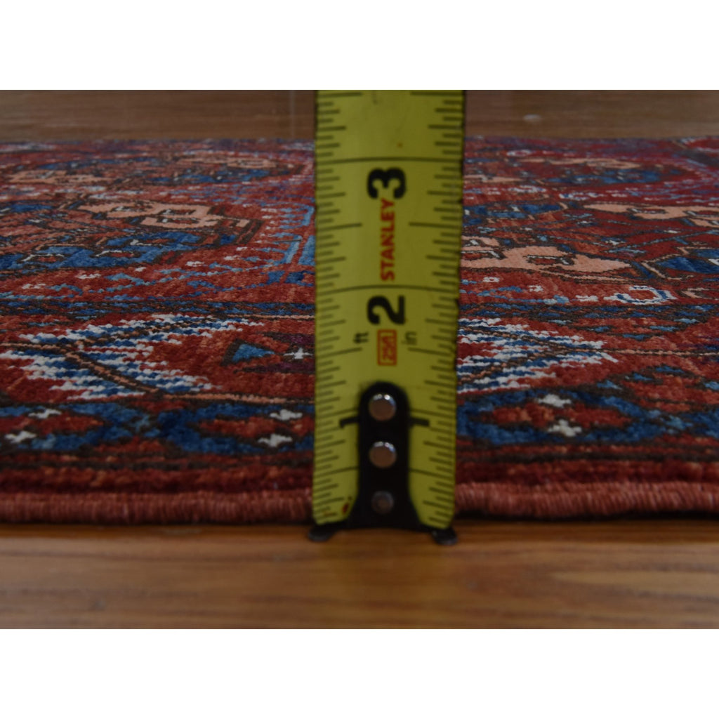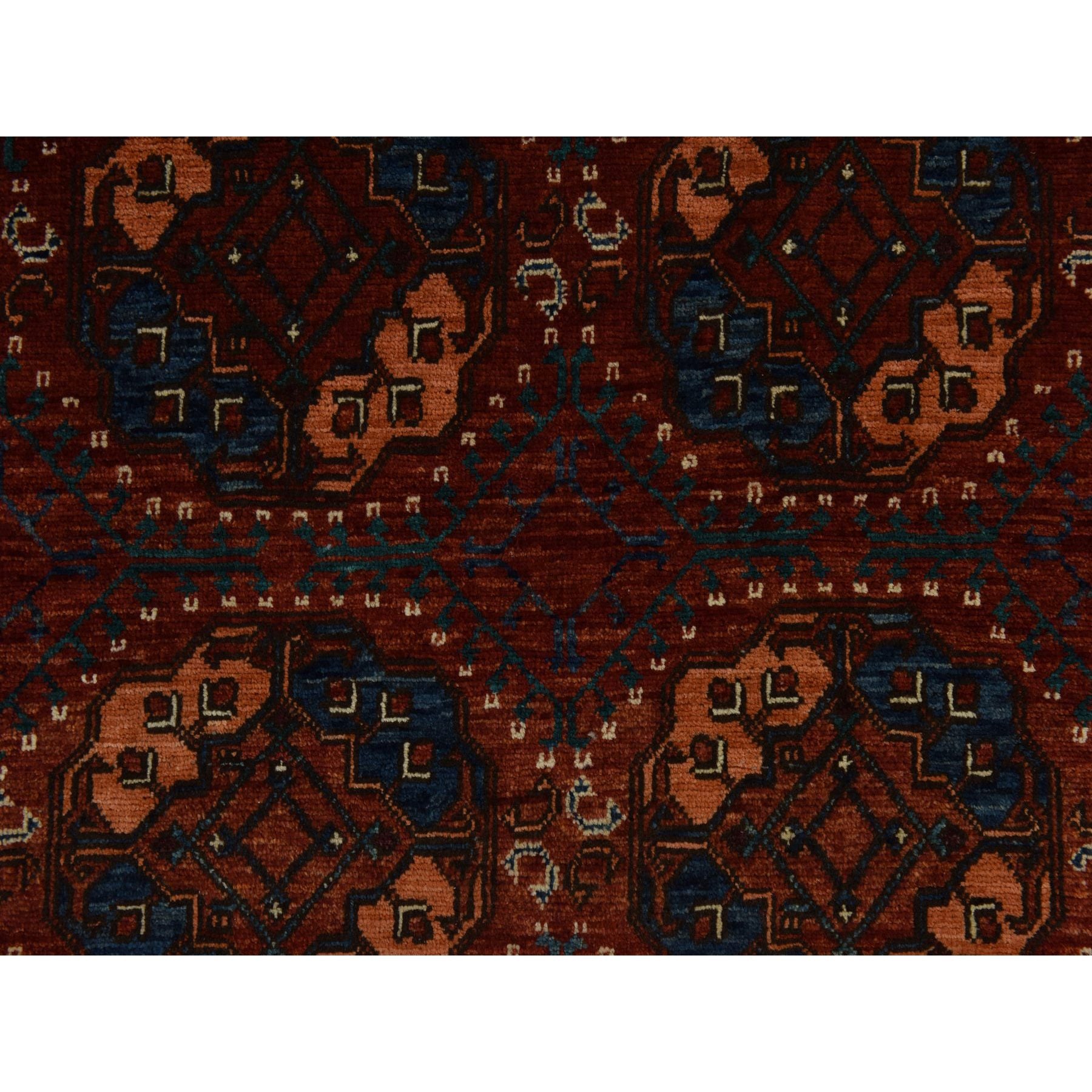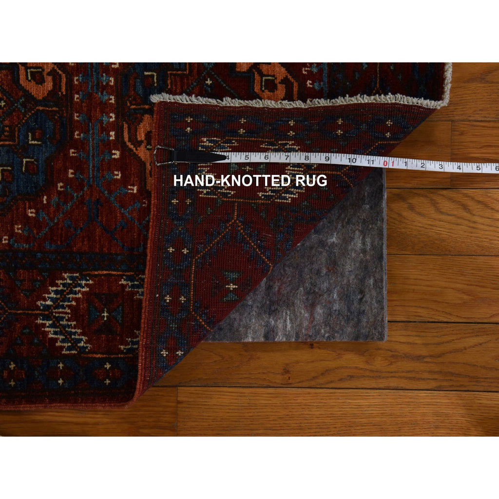 3'6"x5'1" Scarlet Red, Afghan Ersari With Elephant Feet Design, 100% Wool, Hand Knotted, Oriental Rug FWR470376