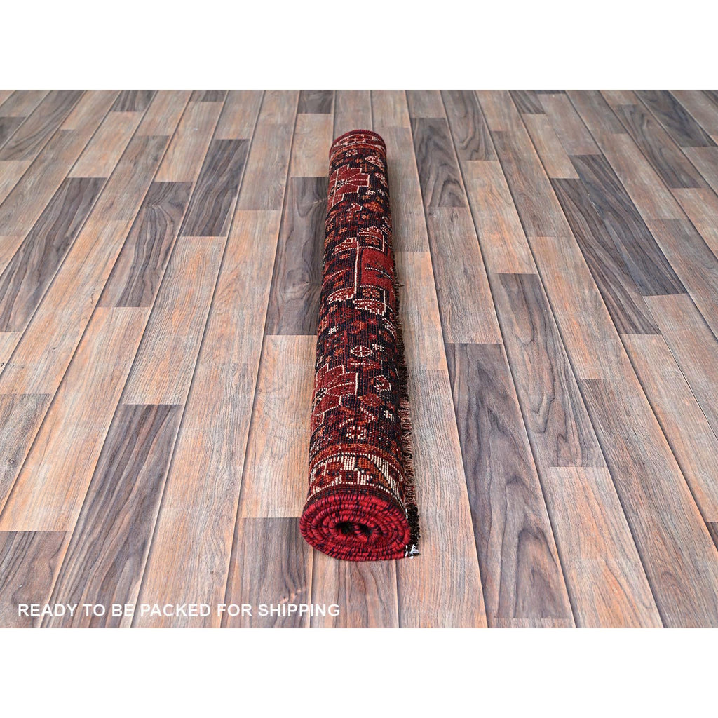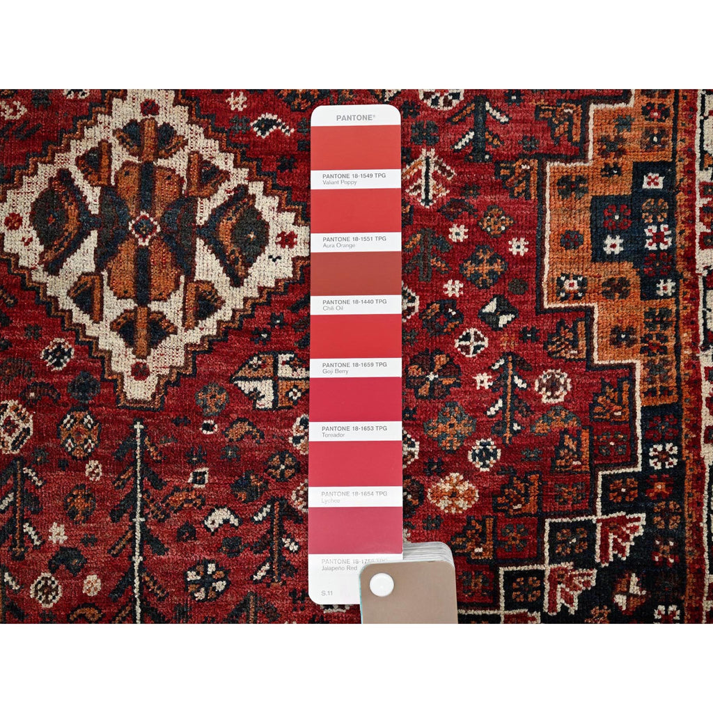 3'6"x5'1" Scarlet Red, Vintage Persian Shiraz With Geometric Medallion Design, Shaved Low, Zero Pile, Sides And Ends Professionally Secured, Clean, Hand Knotted, 100% Wool, Oriental Rug FWR5214