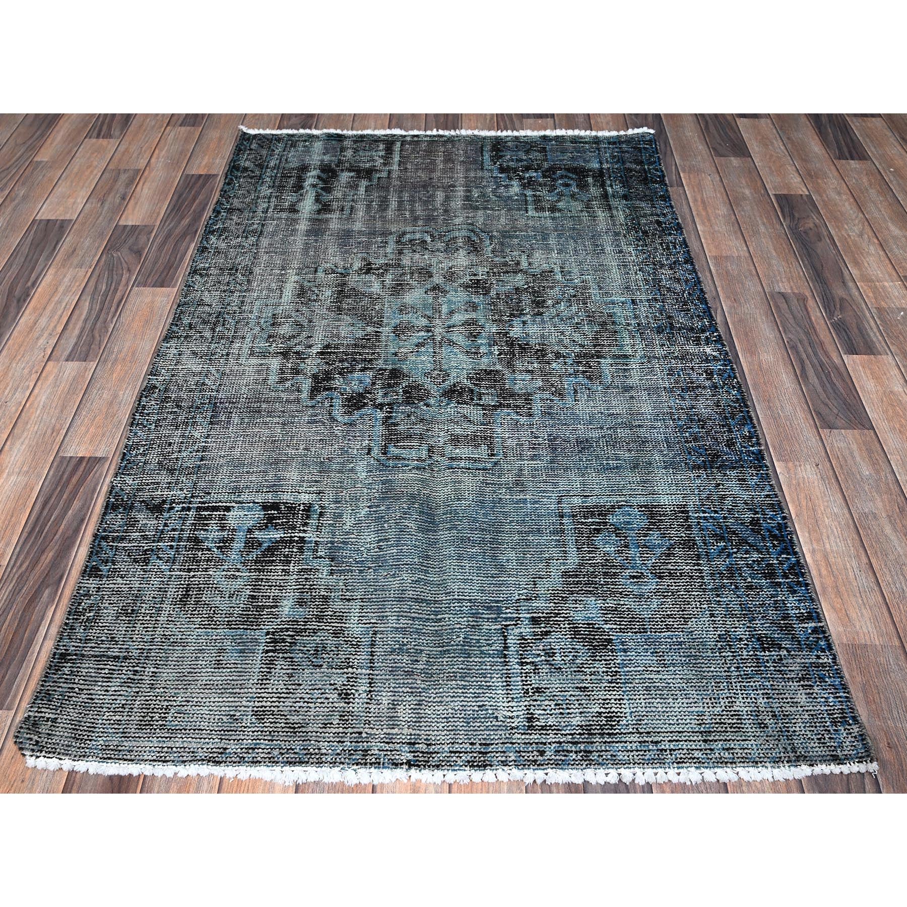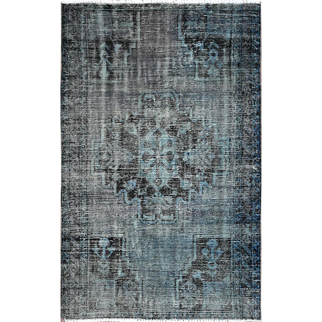 3'6"x5'9" Misty Gray, Ovedyed Vintage Persian Bakhtiar With Large Medallion, Worn And Distressed, Sheared Low, Zero Pile, Sides And Ends Professionally Secured, Hand Knotted, 100% Wool, Oriental Rug FWR6114