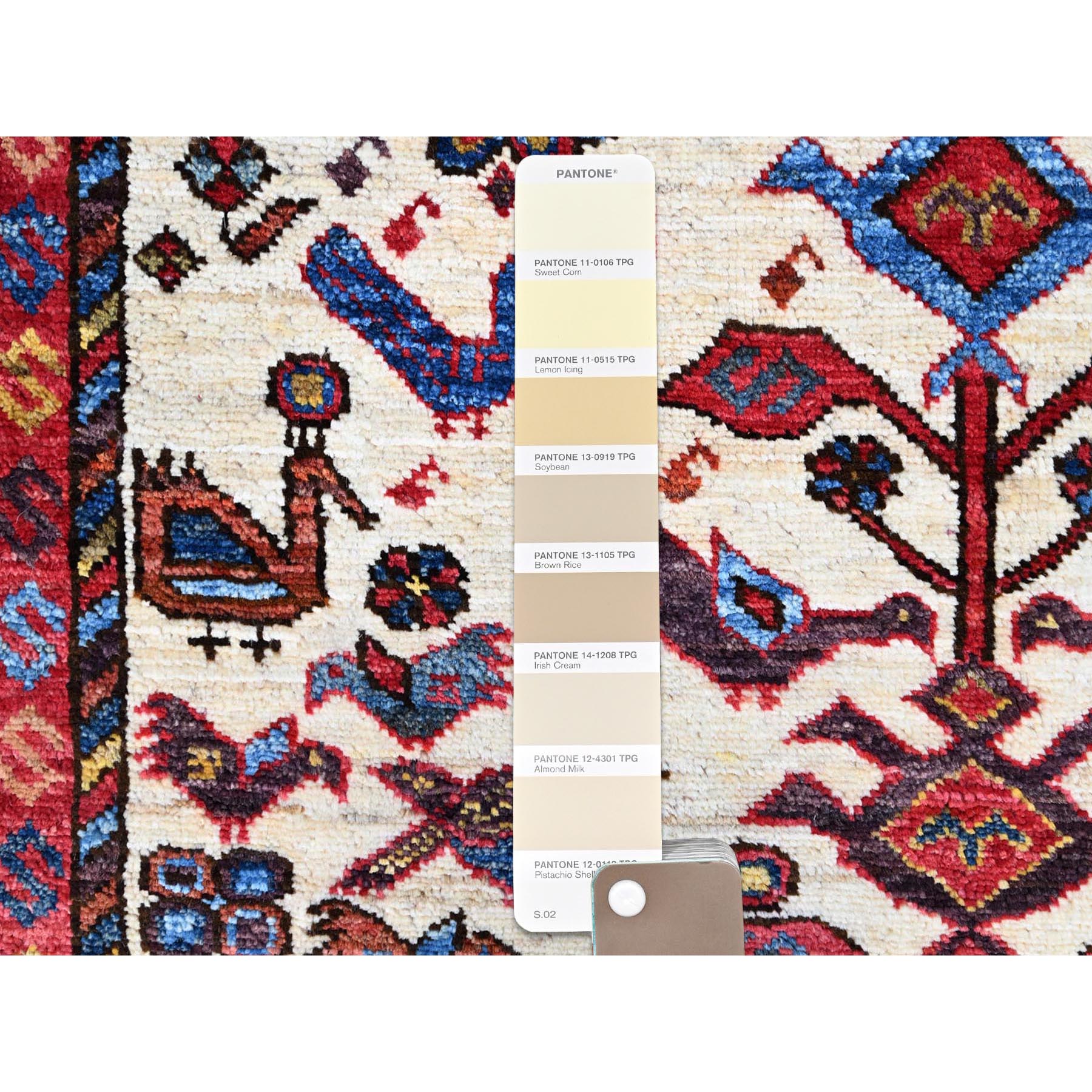3'7"x5'3" Decorators White, Hand Knotted Denser Weave Turkish Knot Small Birds Figurines, Natural Dyes, Shiny Wool, Oriental Rug FWR521940